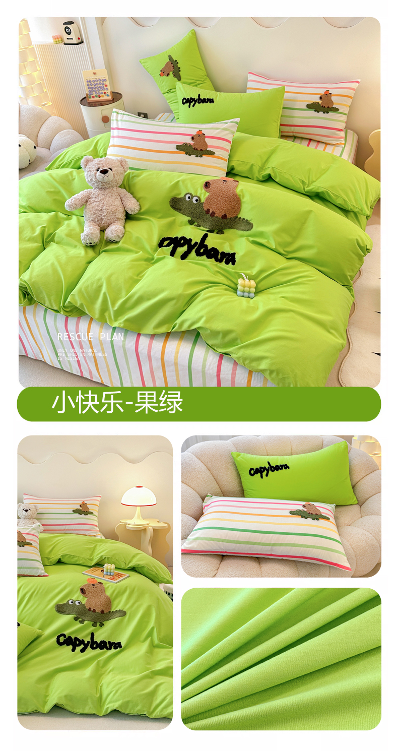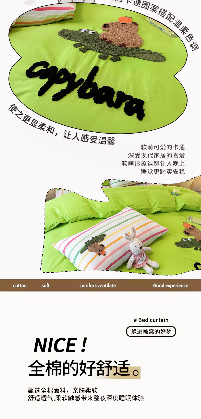 (总)其奥家纺 2026新款专版色织全棉水洗棉刺绣四件套小清新纯棉四件套,篮球小熊-格子咖,篮球小熊-格子蓝,篮球小熊-条纹粉,篮球小熊-条纹绿,篮球小熊-细条灰