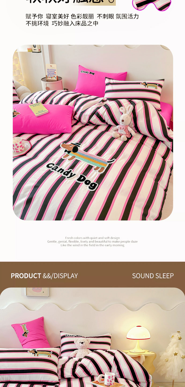商品名称:其奥家纺 2025新款毛巾绣全棉四件套纯棉学生三件套-款式二 炫彩DOG-彩条