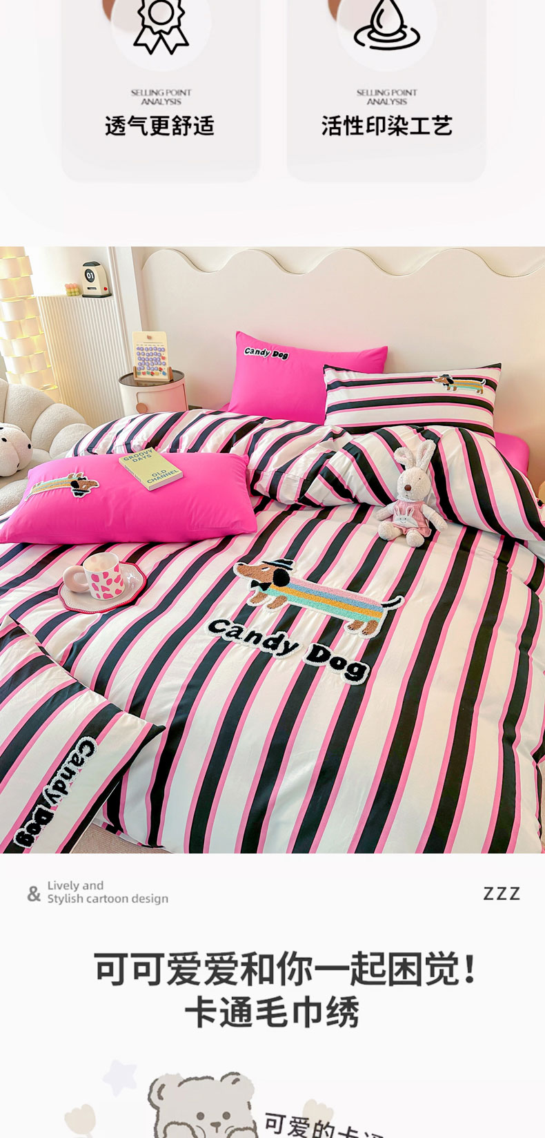 其奥家纺 2025新款毛巾绣全棉四件套纯棉学生三件套-款式二 炫彩DOG-彩条
