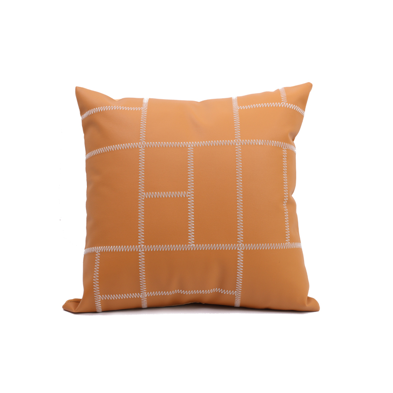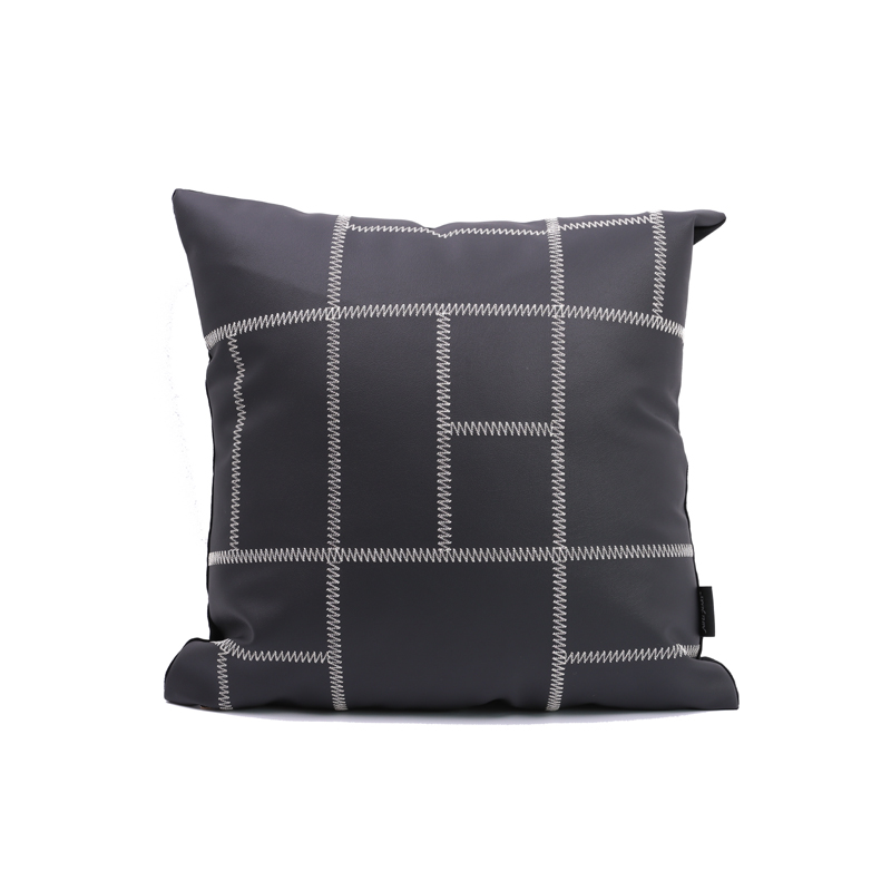 (总)澜屿 24款轻奢皮面刺绣方枕抱枕芯腰枕靠枕头