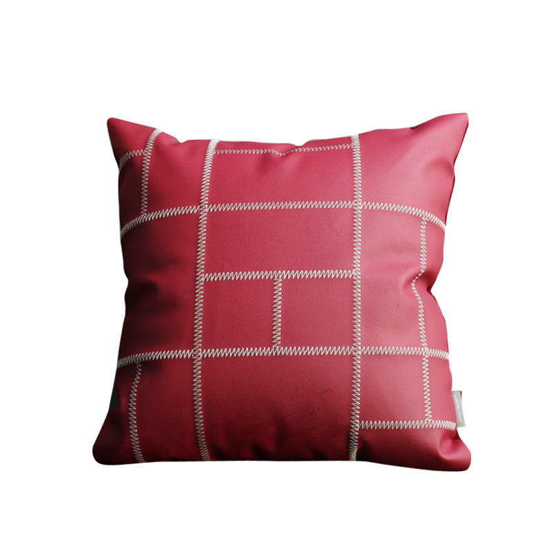 (总)澜屿 24款轻奢皮面刺绣方枕抱枕芯腰枕靠枕头,宝蓝,酒红,亮橘,曜黑