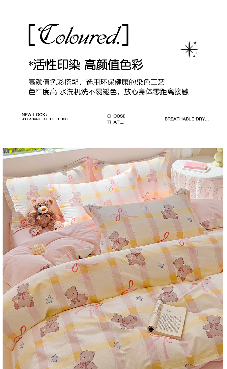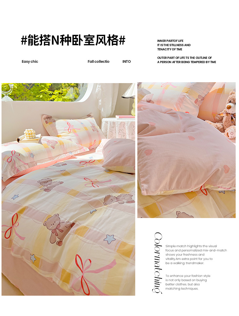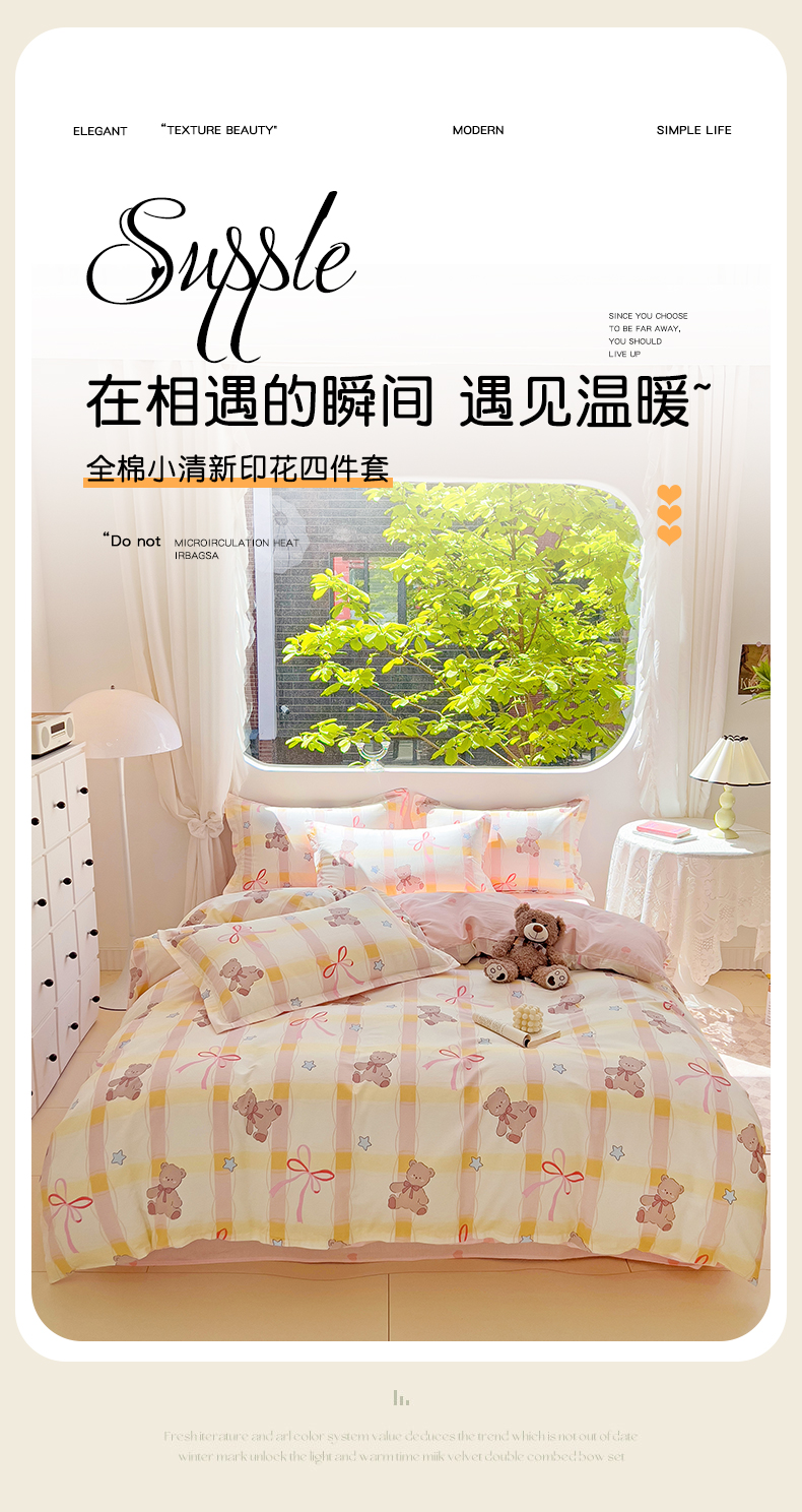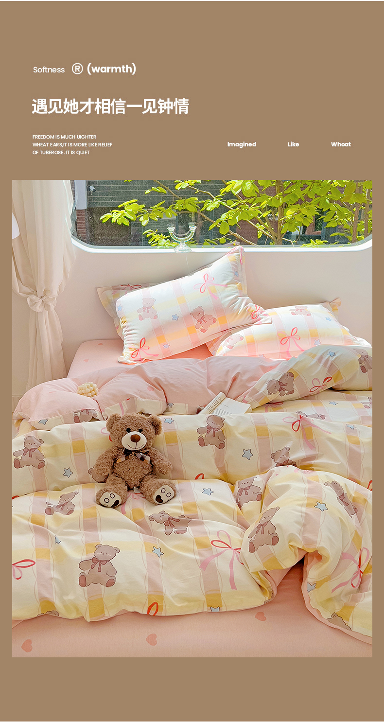 暖芯优选 204新款直播爆款全棉-ins印花系列四件套纯棉三件套床单床笠 布偶熊