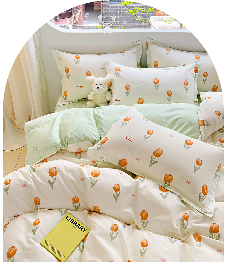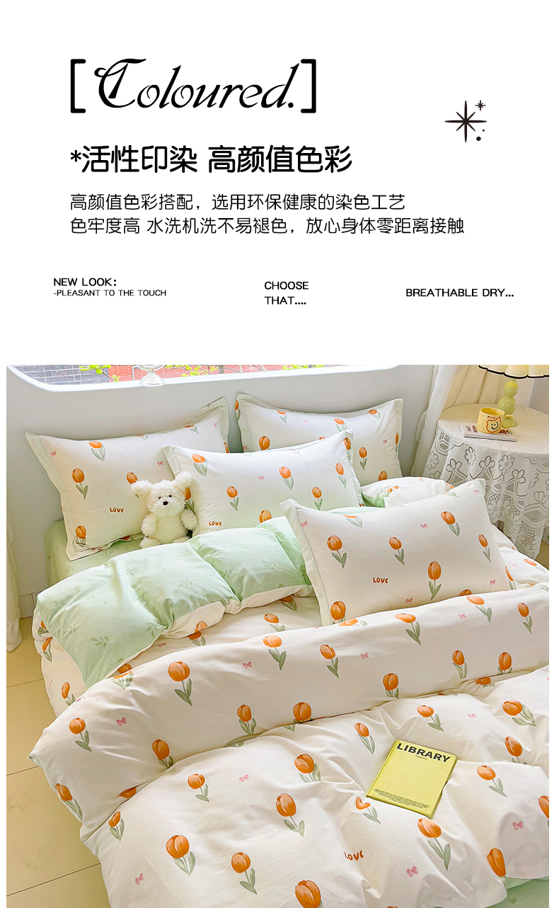暖芯优选 204新款直播爆款全棉-ins印花系列四件套纯棉三件套床单床笠 芮心