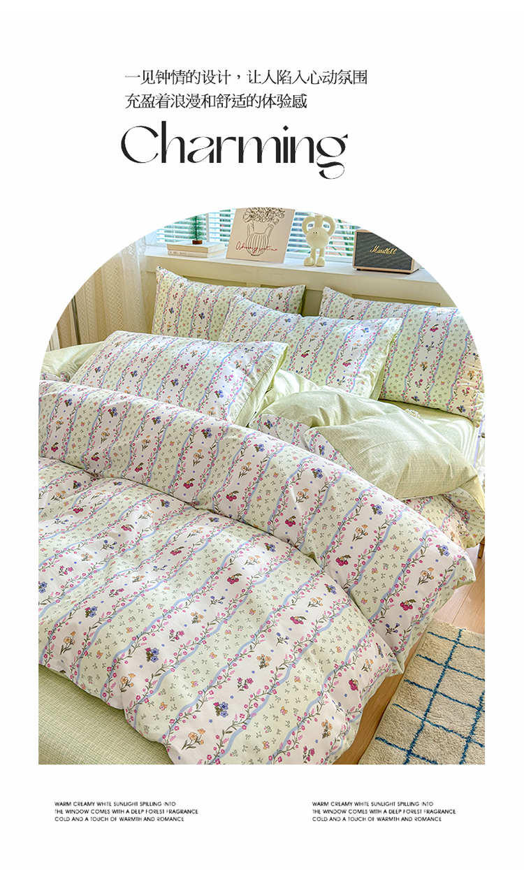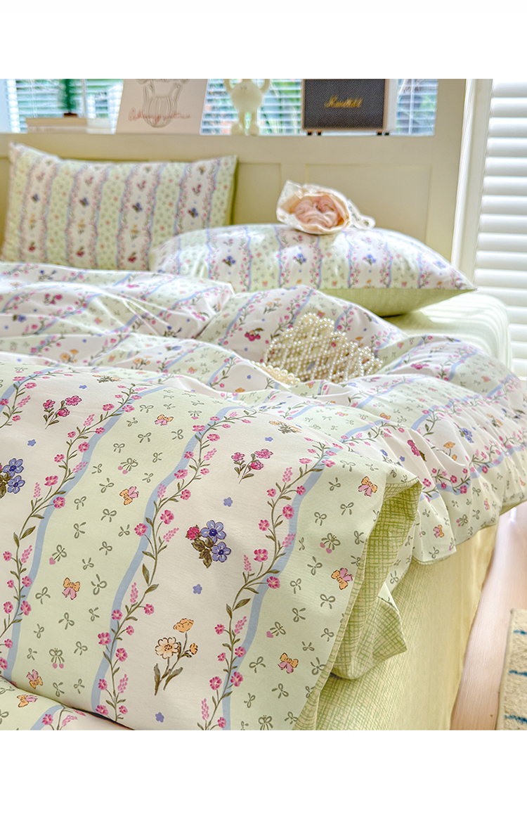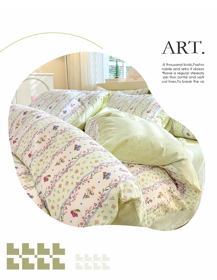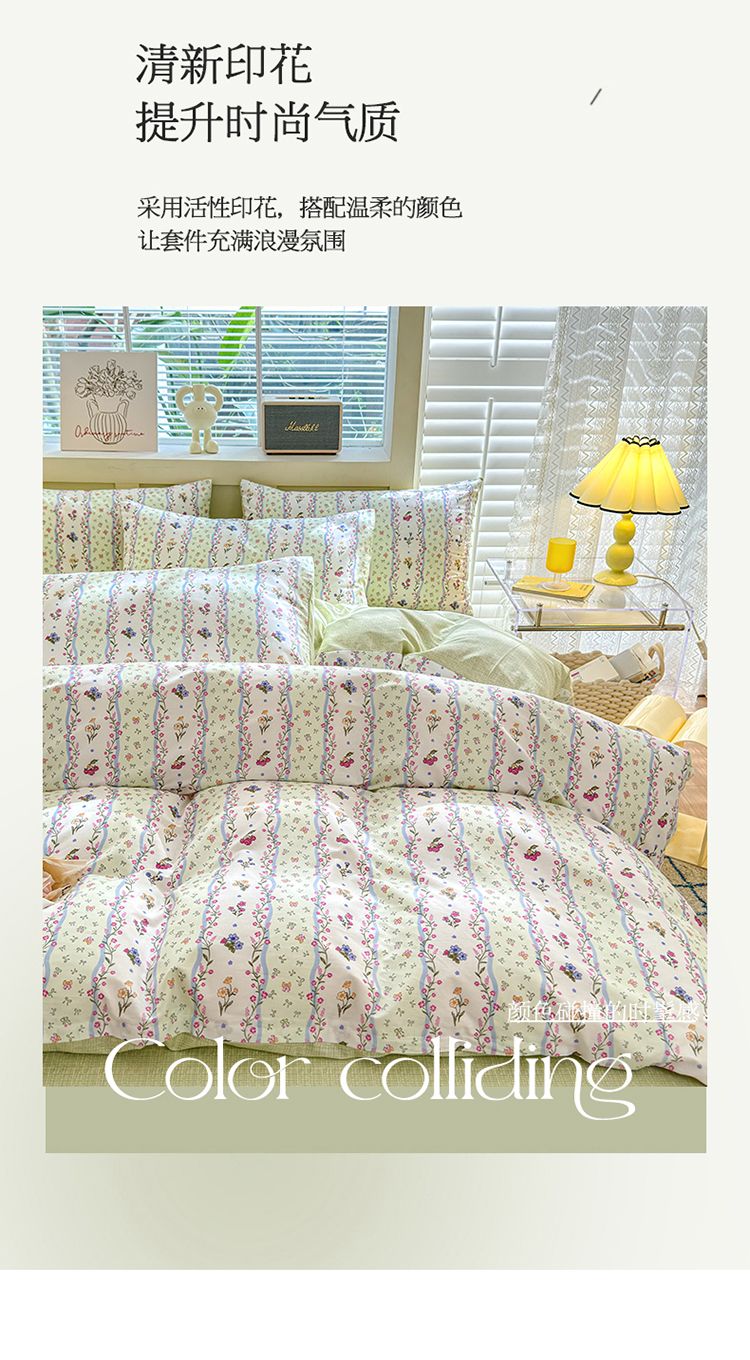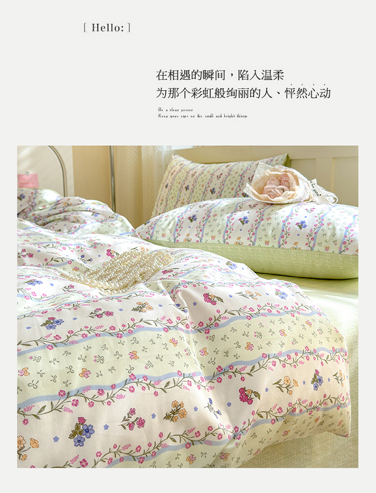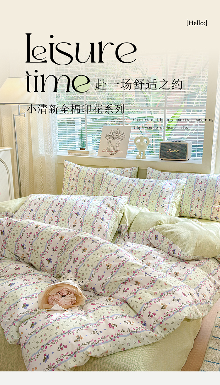 当前位置: 91家纺网 > 商品网购 > 床品套件 > 四件套 > 全棉普通四件套 > 清雅福 2024新款全棉13372小清新四件套和单品系列第四季 夏日春天