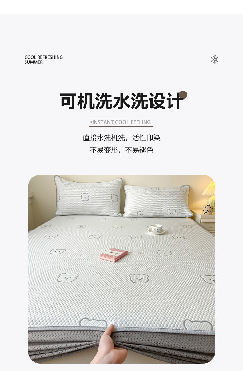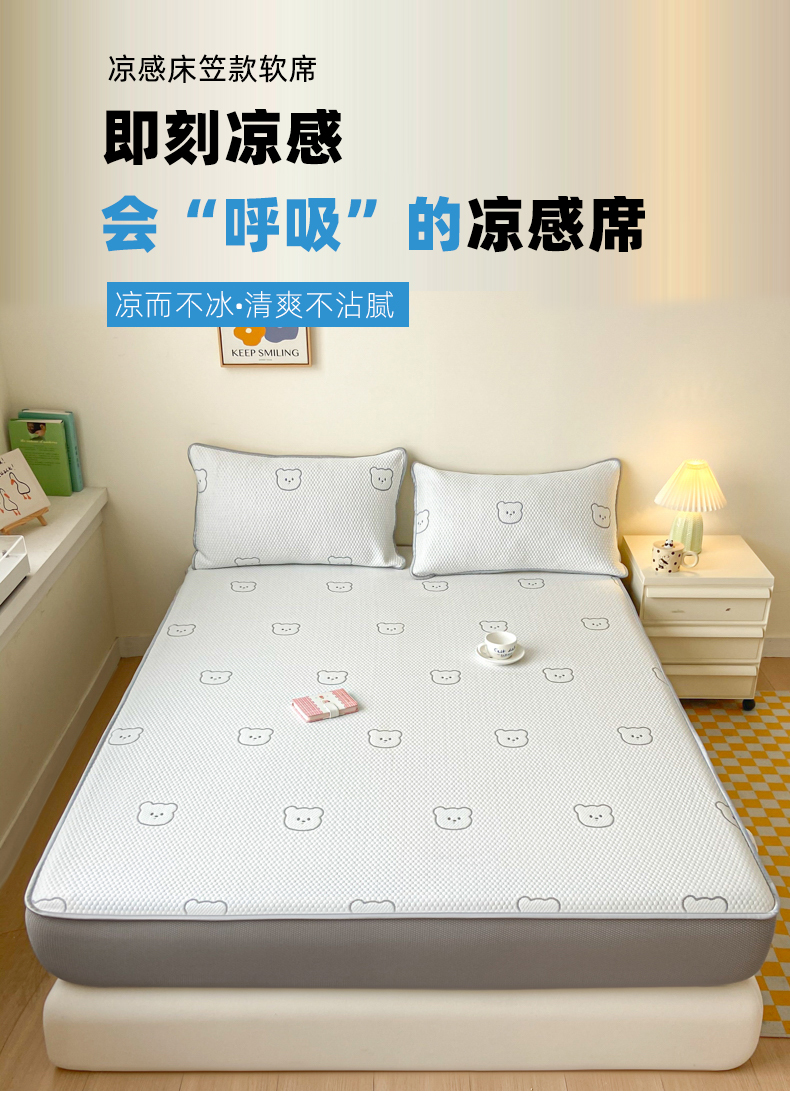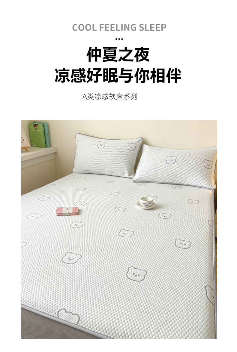 吉象家纺 2024新款凉豆豆凉感软席凉席 白底小灰熊