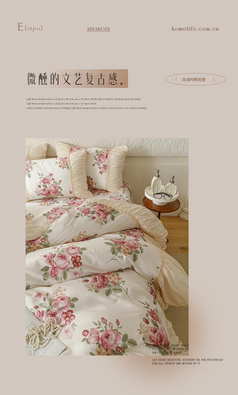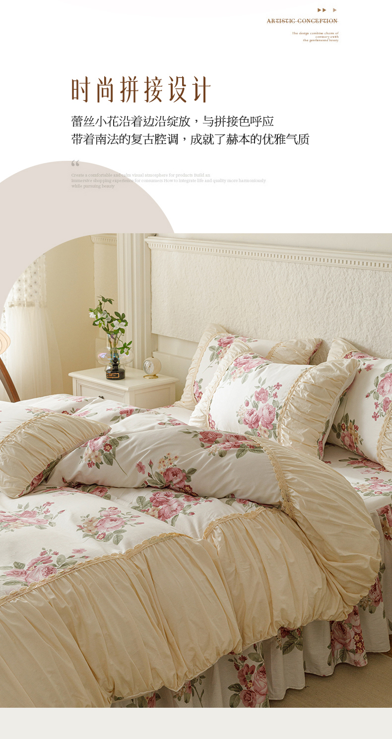 商品名称:婳庭家居 2024新款法式全棉四件套 春意
