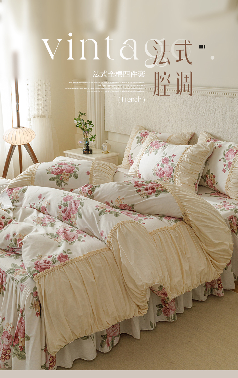 (总)婳庭家居 2024新款法式全棉四件套,安夏,春意,浅薇,幽香