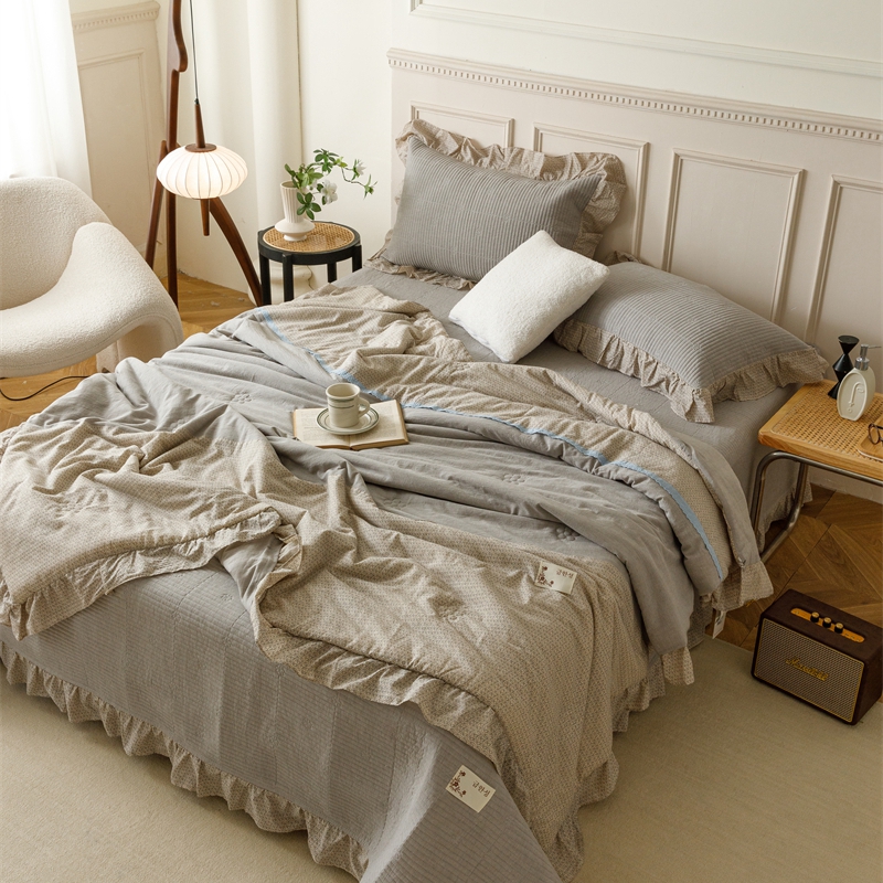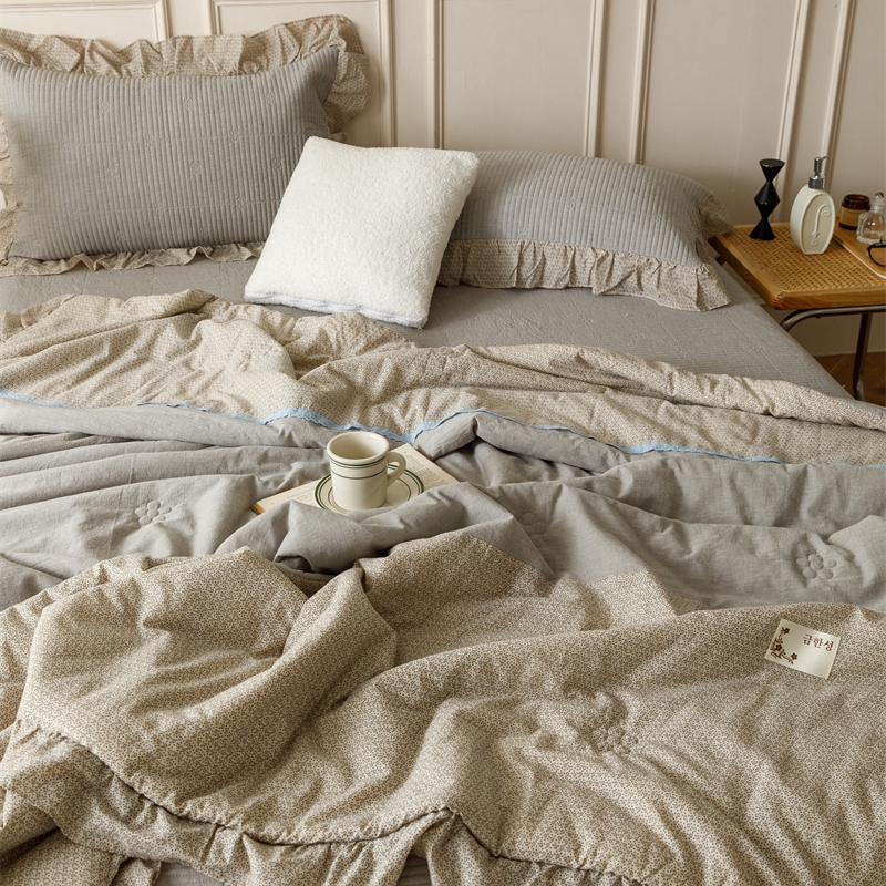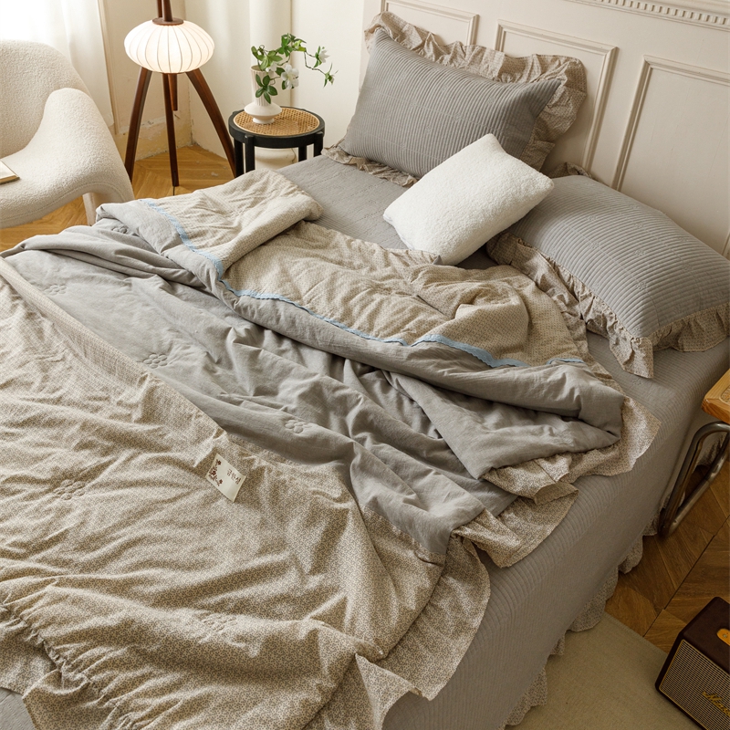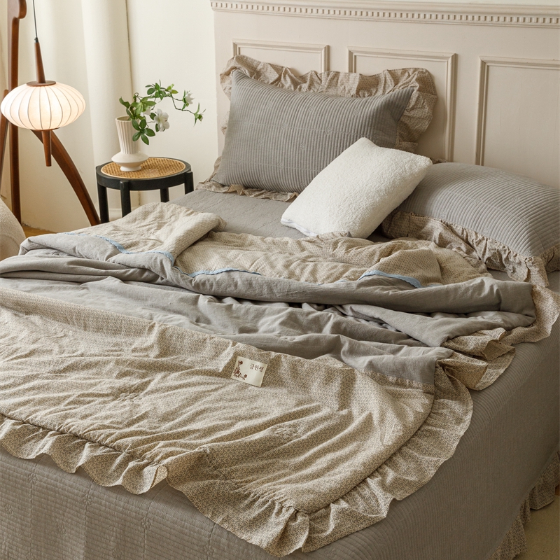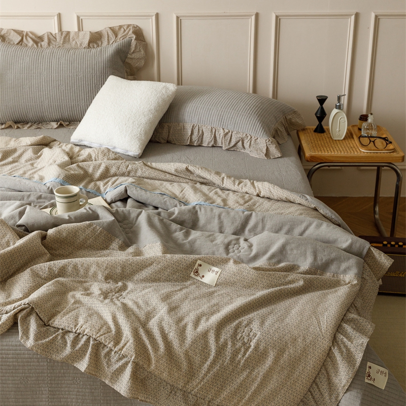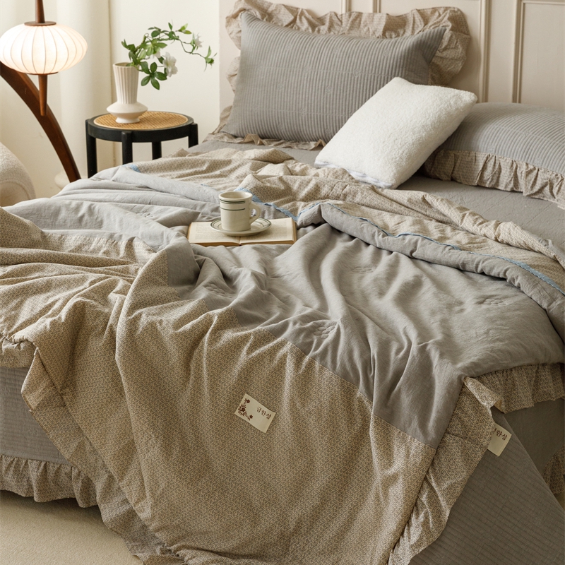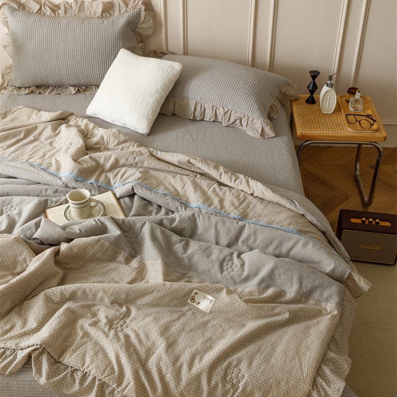 (总)有货 2023新款小清新花边韩版水洗棉麻豆豆夏被简约复古风,枫情,格格,绿野,绿意,南风,暖心,森林,盛开,太空,微笑,向阳花,小鹿,枝丫