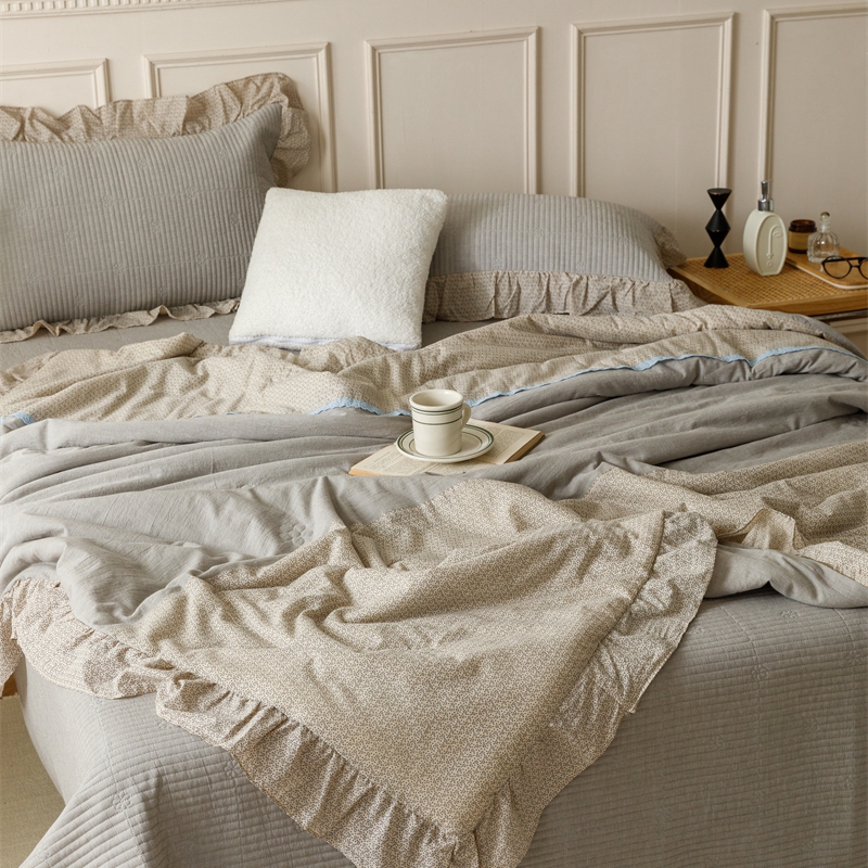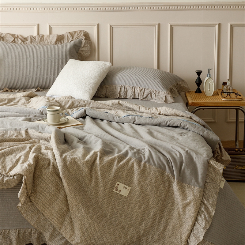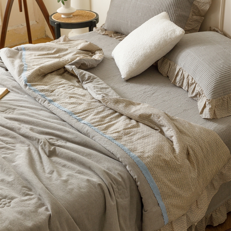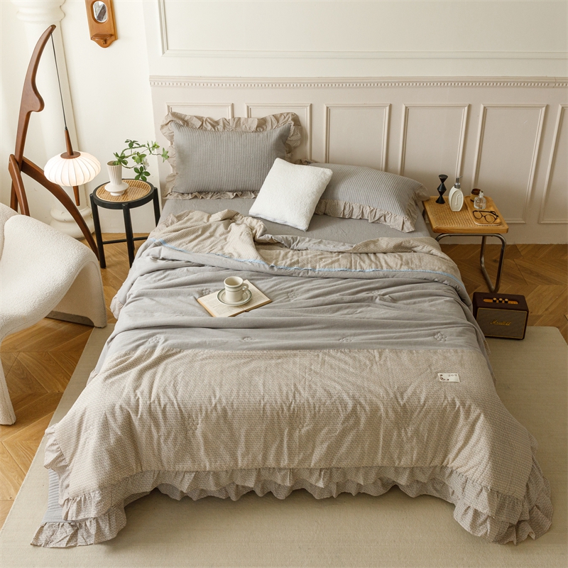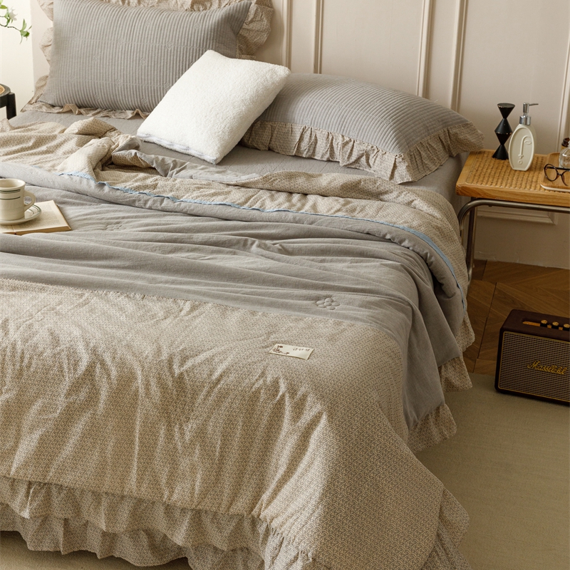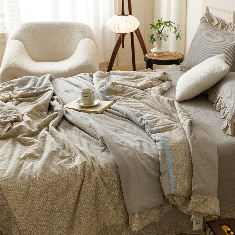 (总)有货 2023新款小清新花边韩版水洗棉麻豆豆夏被简约复古风,枫情,格格,绿野,绿意,南风,暖心,森林,盛开,太空,微笑,向阳花,小鹿,枝丫