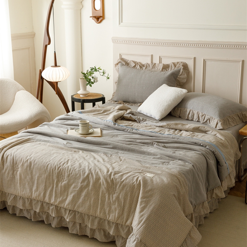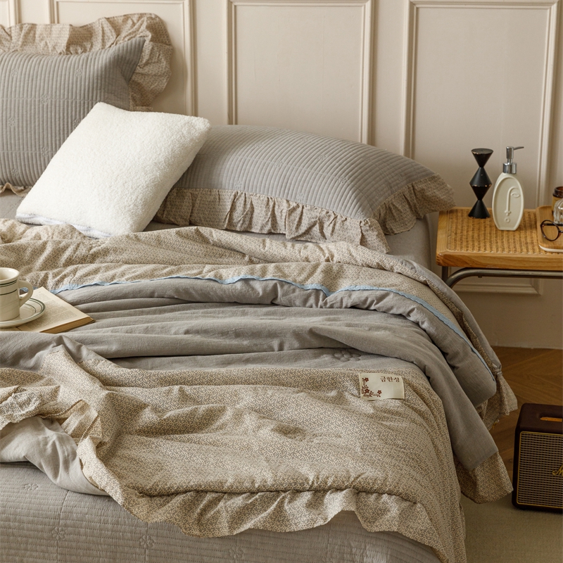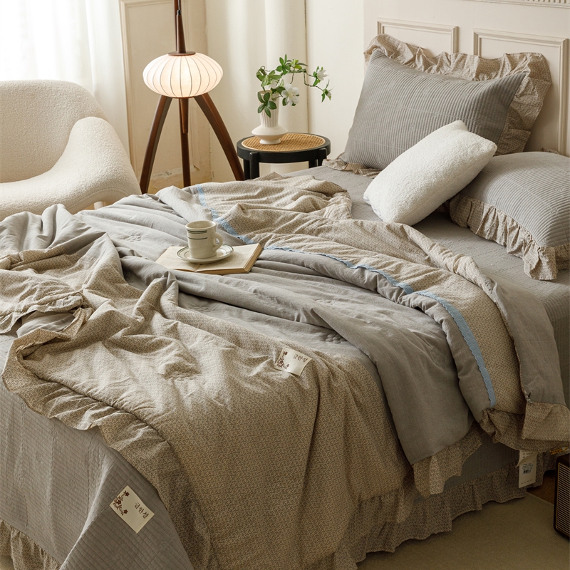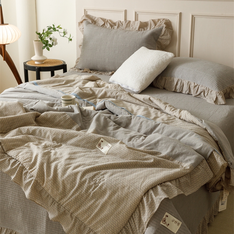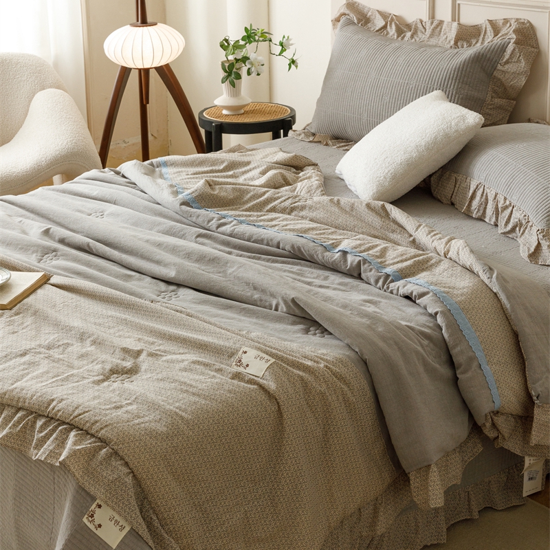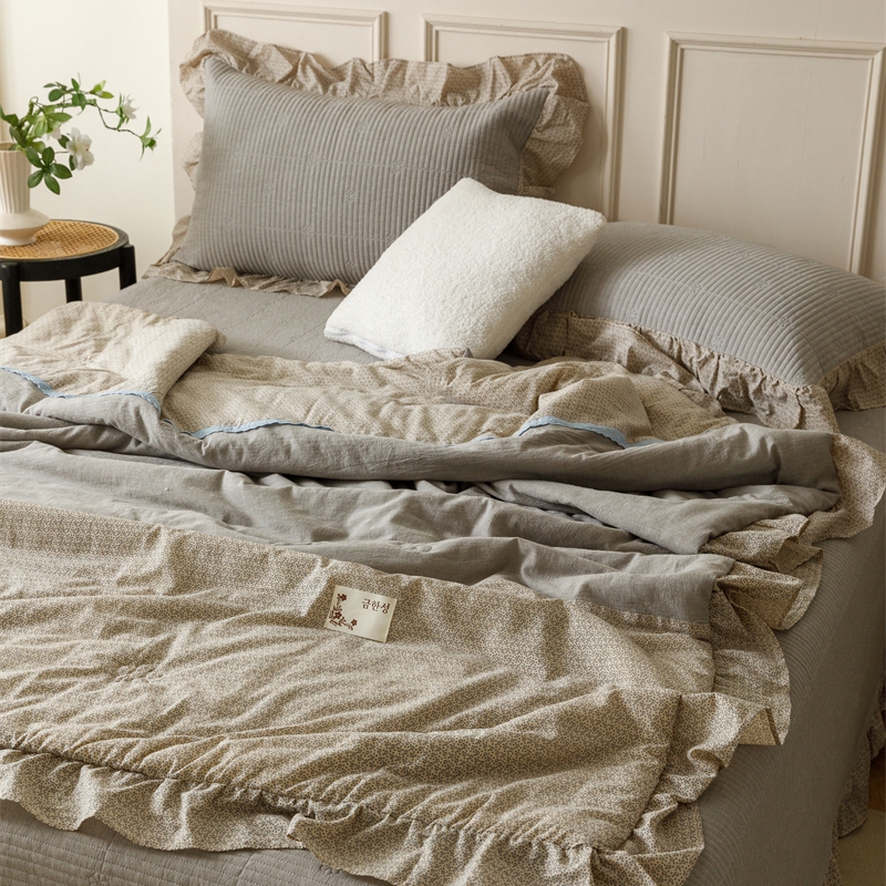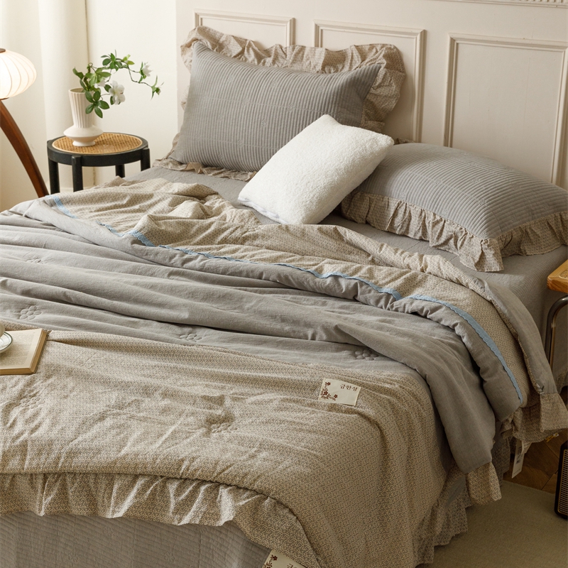 (总)有货 2023新款小清新花边韩版水洗棉麻豆豆夏被简约复古风,枫情,格格,绿野,绿意,南风,暖心,森林,盛开,太空,微笑,向阳花,小鹿,枝丫