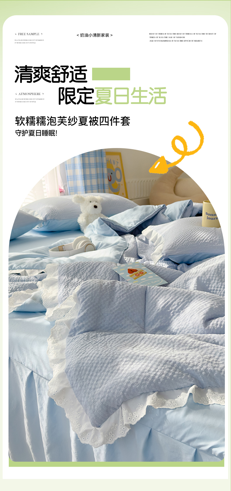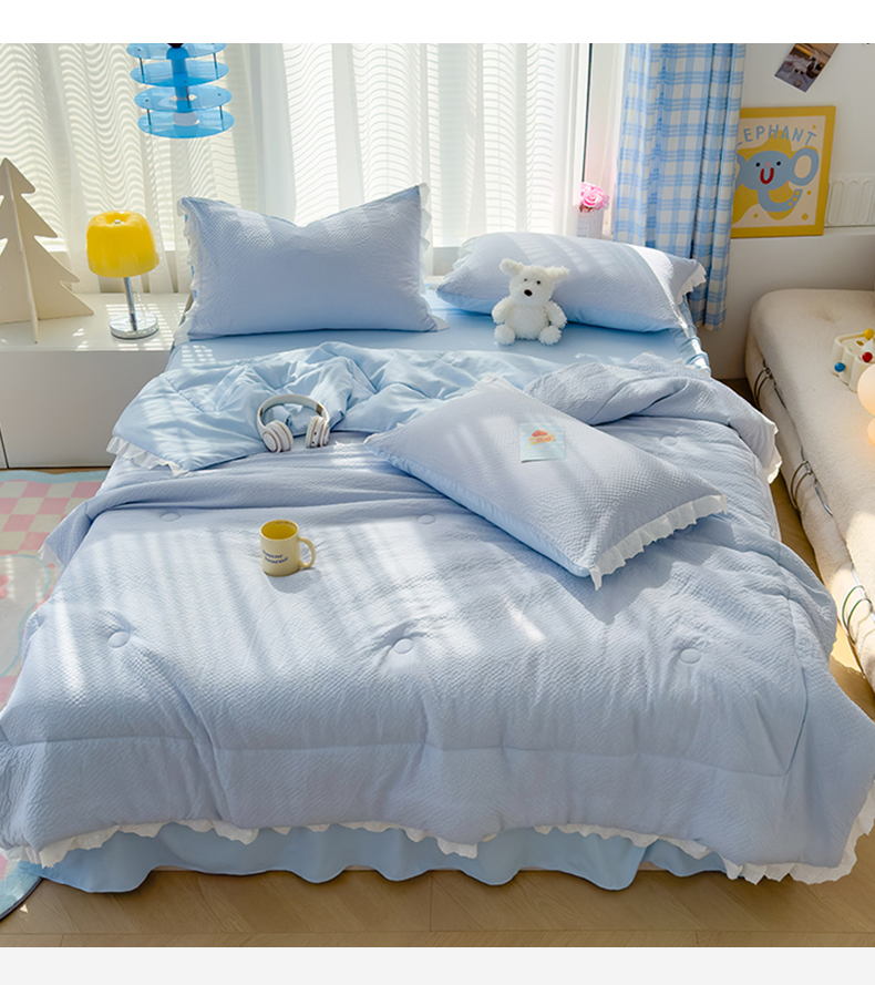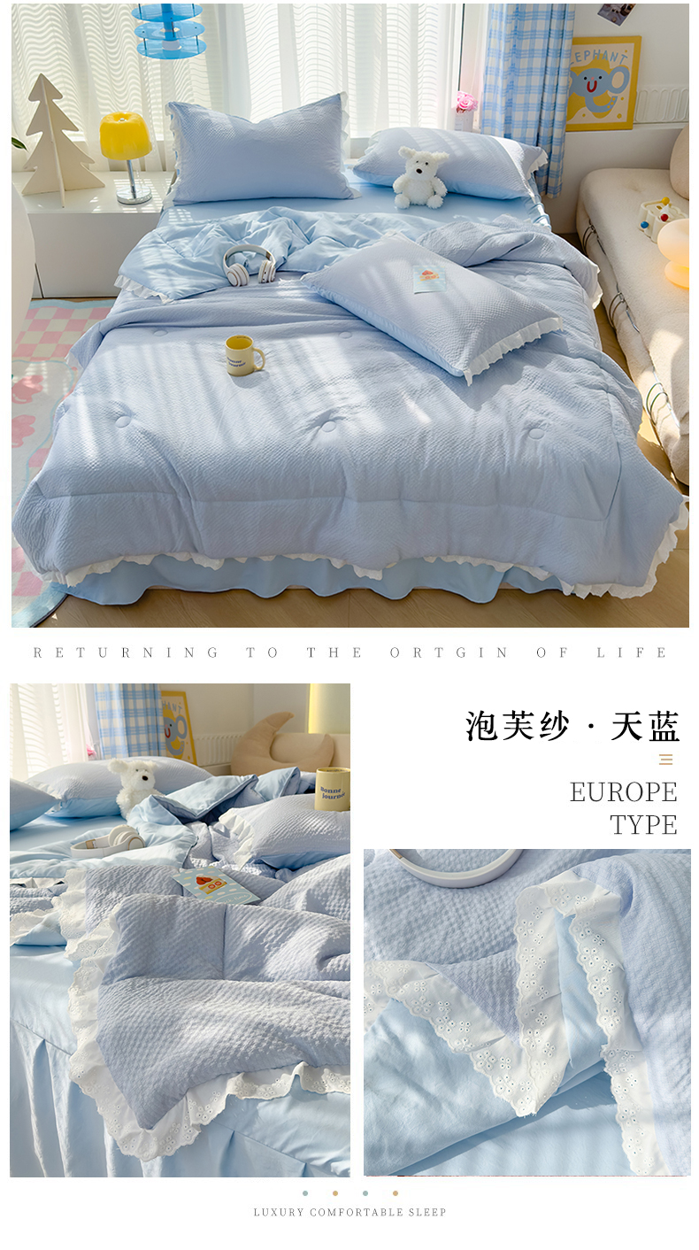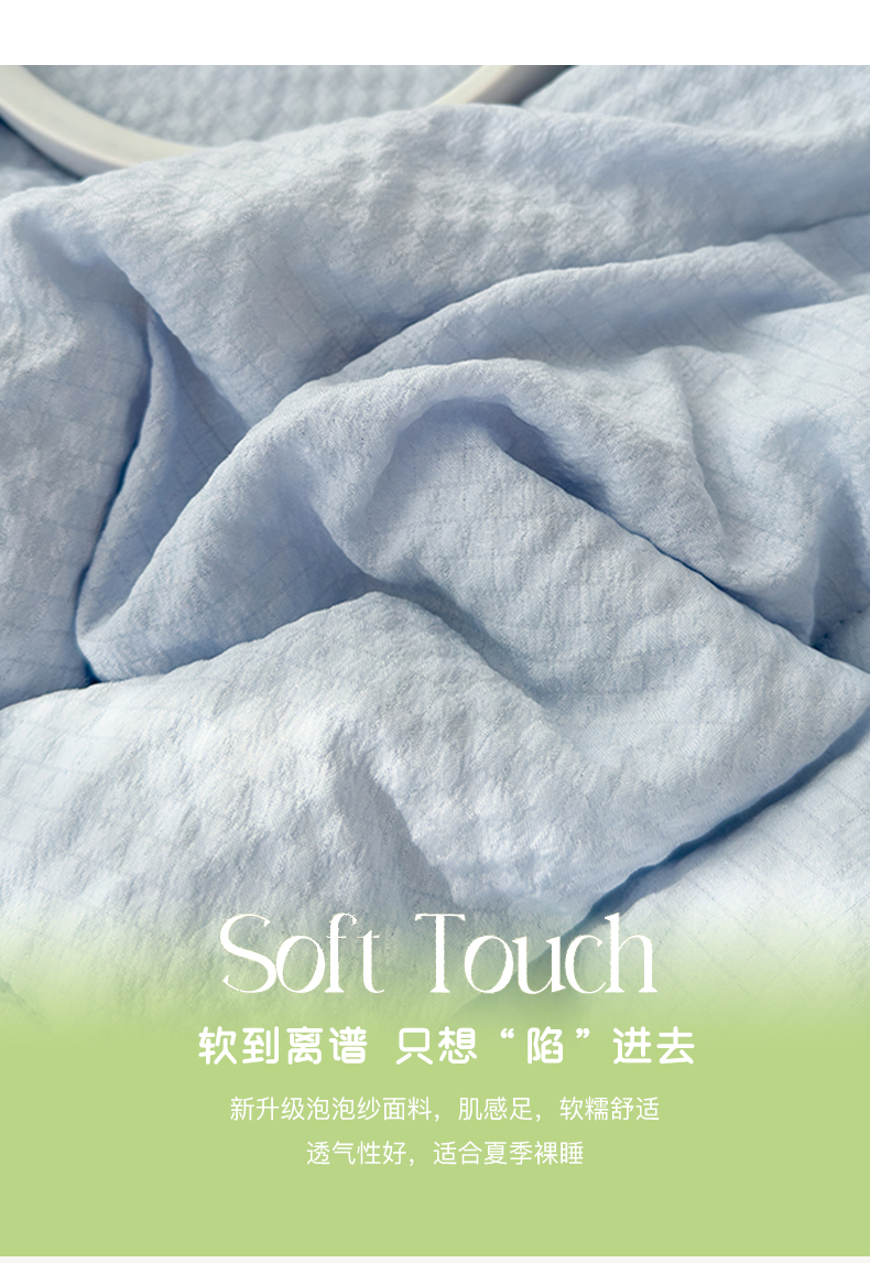 当前位置: 91家纺网 > 商品网购 > 床品套件 > 四件套 > 夏被四件套 > 颜选 2024新款泡芙棉夏被单品夏被四件套 泡芙纱天蓝