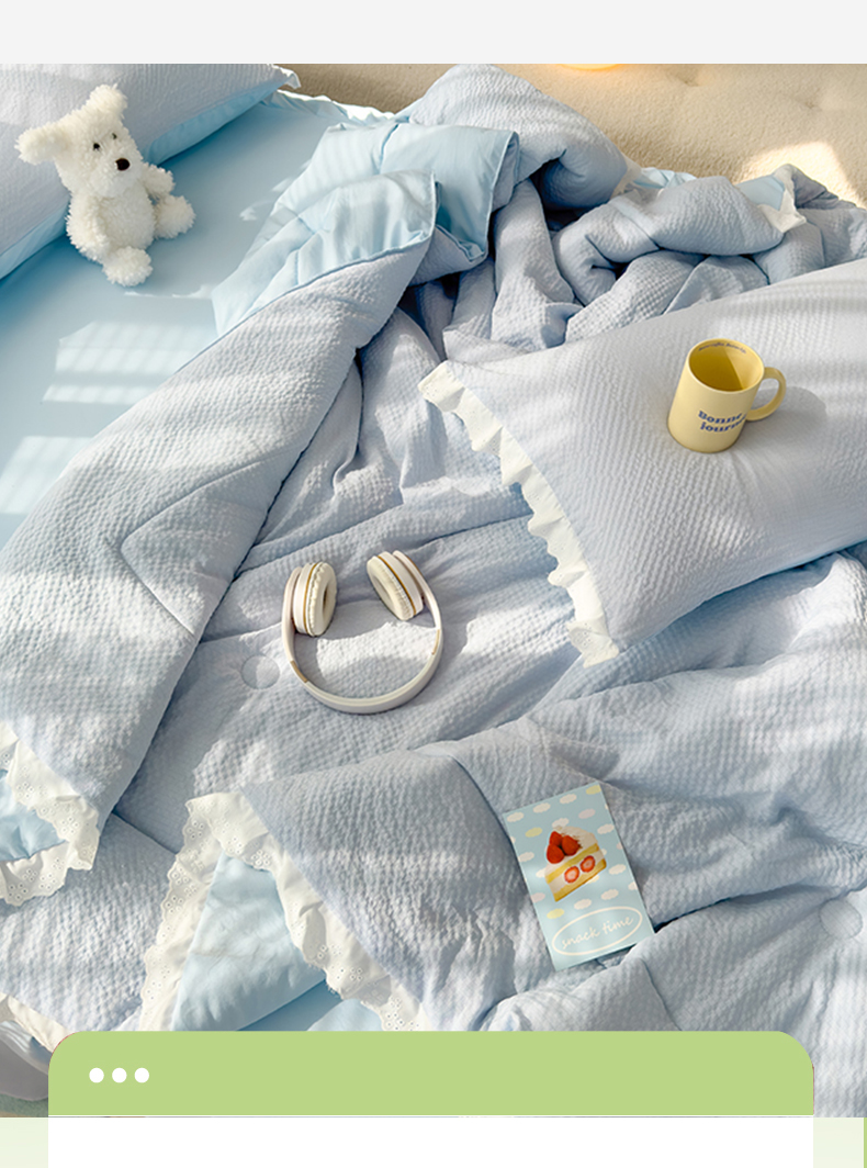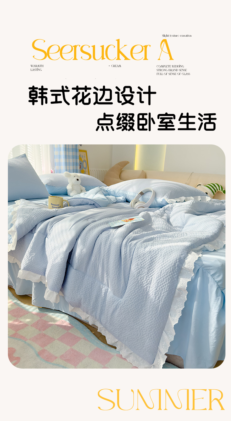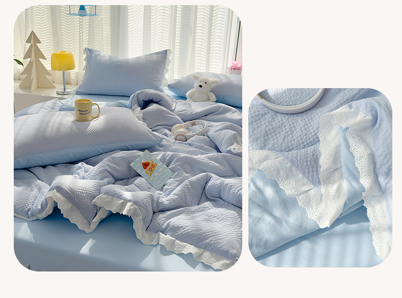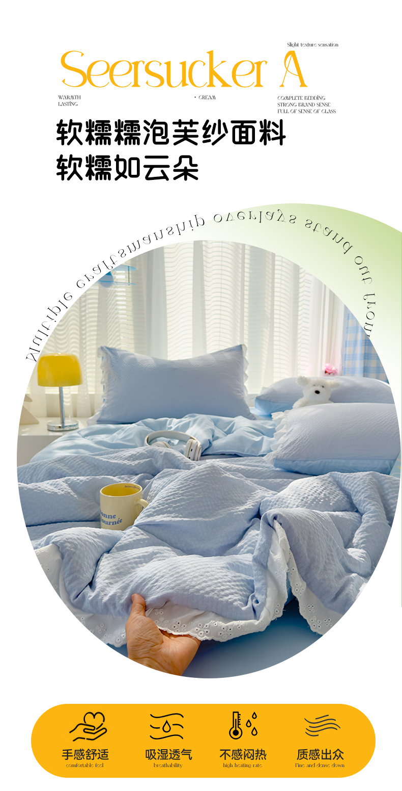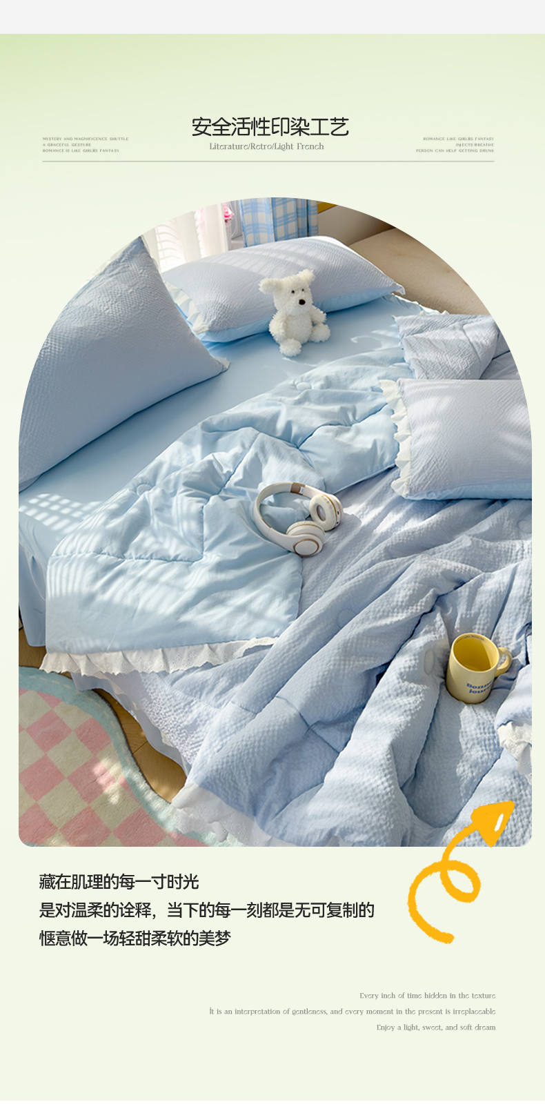 当前位置: 91家纺网 > 商品网购 > 床品套件 > 四件套 > 夏被四件套 > 颜选 2024新款泡芙棉夏被单品夏被四件套 泡芙纱天蓝