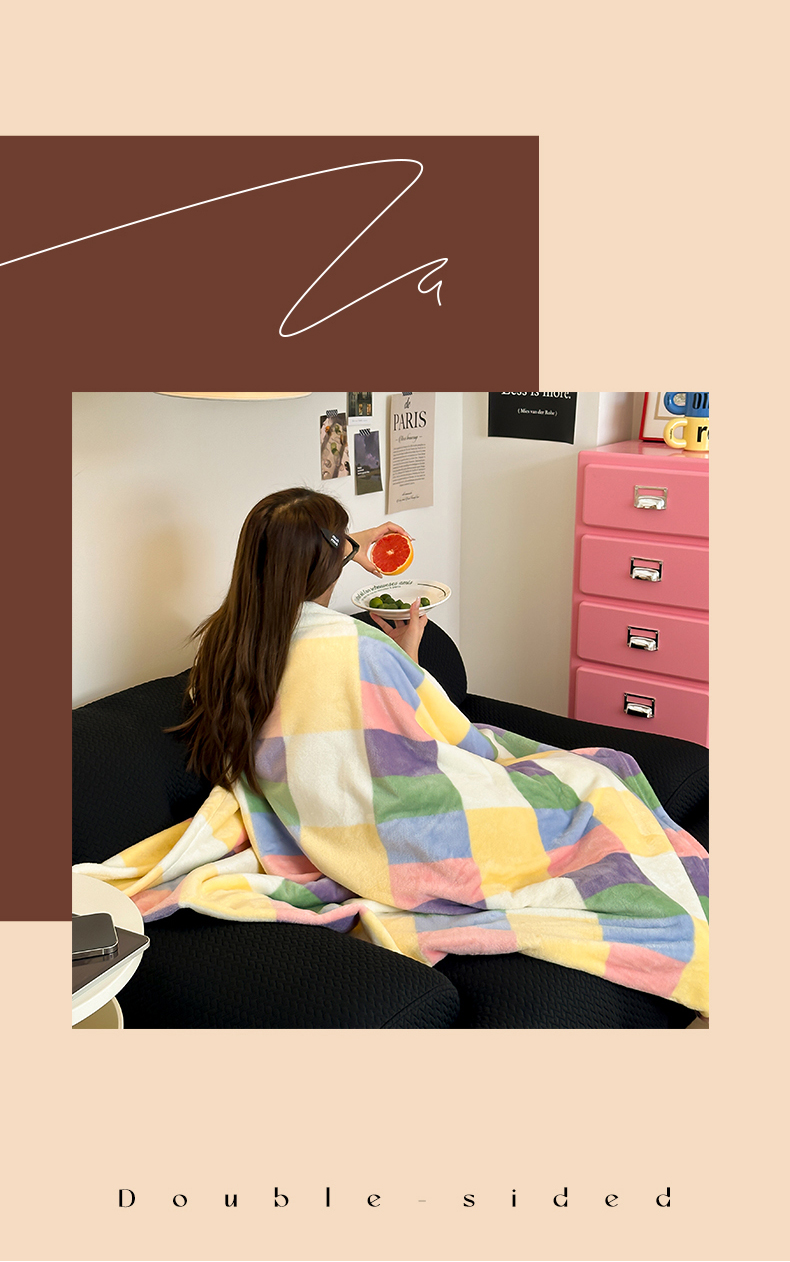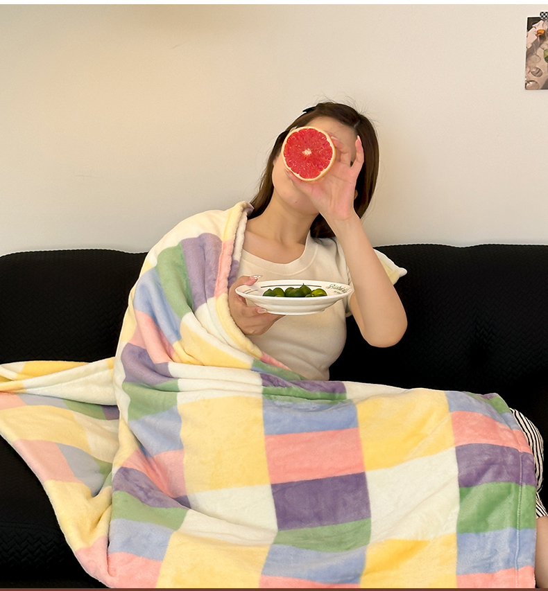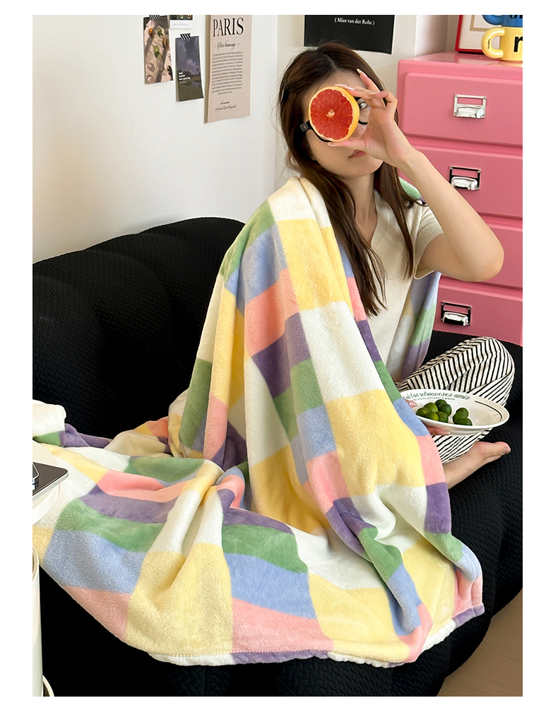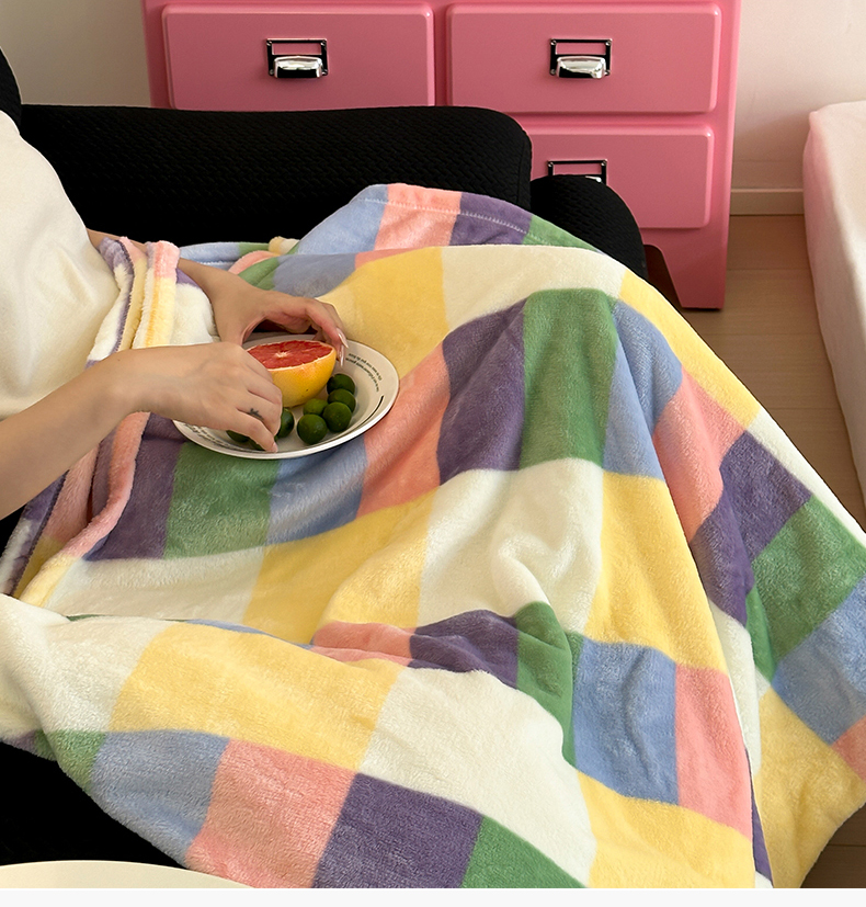 (总)桃喜 2024新款牛奶绒羊羔绒条纹系列盖绒毛毯午休毯多功能毛毯-场景二,多巴胺彩条,蓝咖条纹,栗子粉条纹,美式复古红蓝条,美式复古黄蓝条