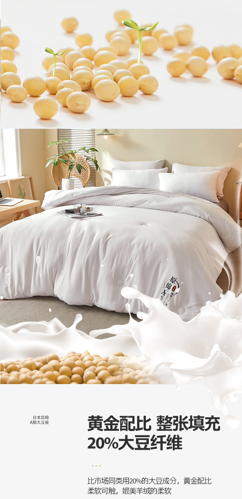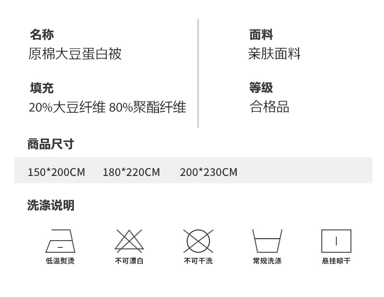 • 填充纤维种类: 大豆蛋白改性聚酯纤维