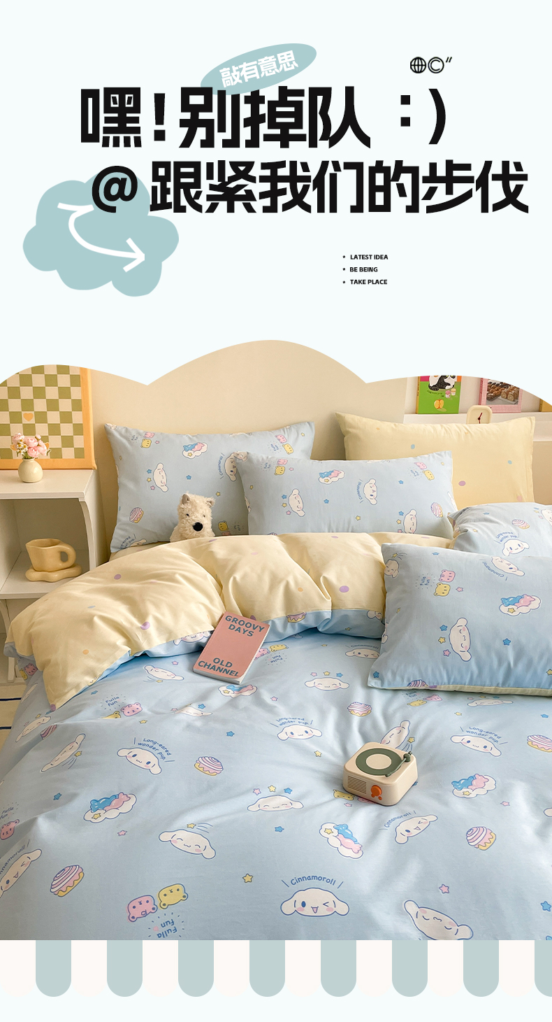 雅居纺家纺 2024新款全棉印花13070三丽鸥正版授权四件套 糖果玉桂狗