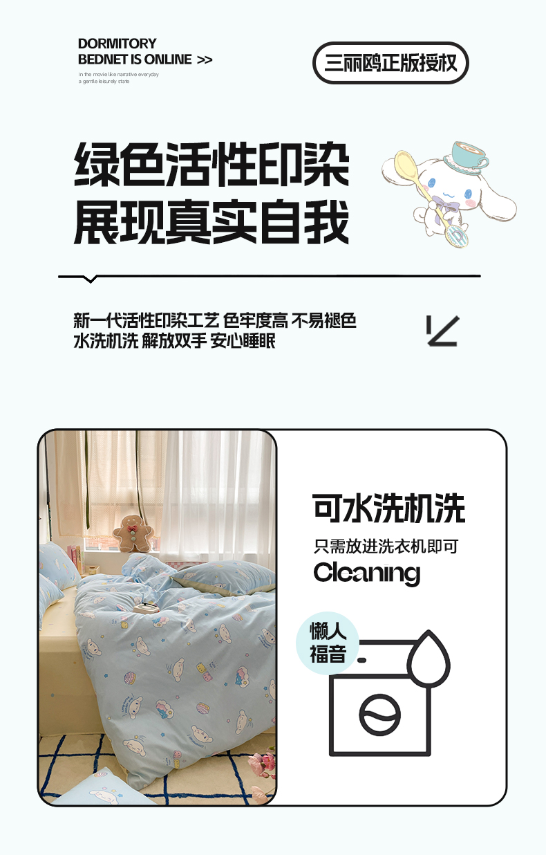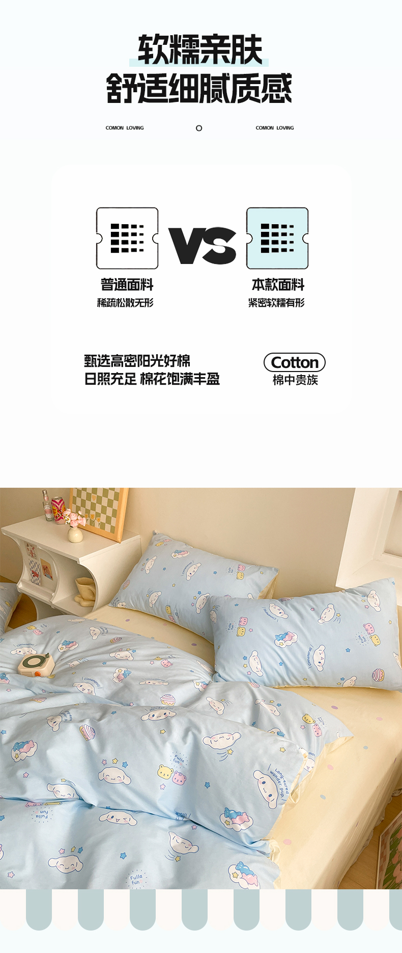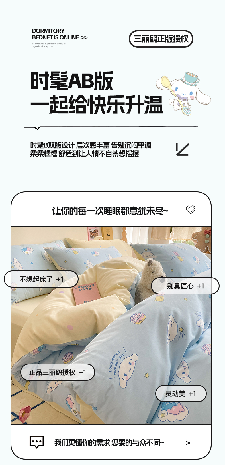 商品名称:雅居纺家纺 2024新款全棉印花13070三丽鸥正版授权四件套 糖果玉桂狗