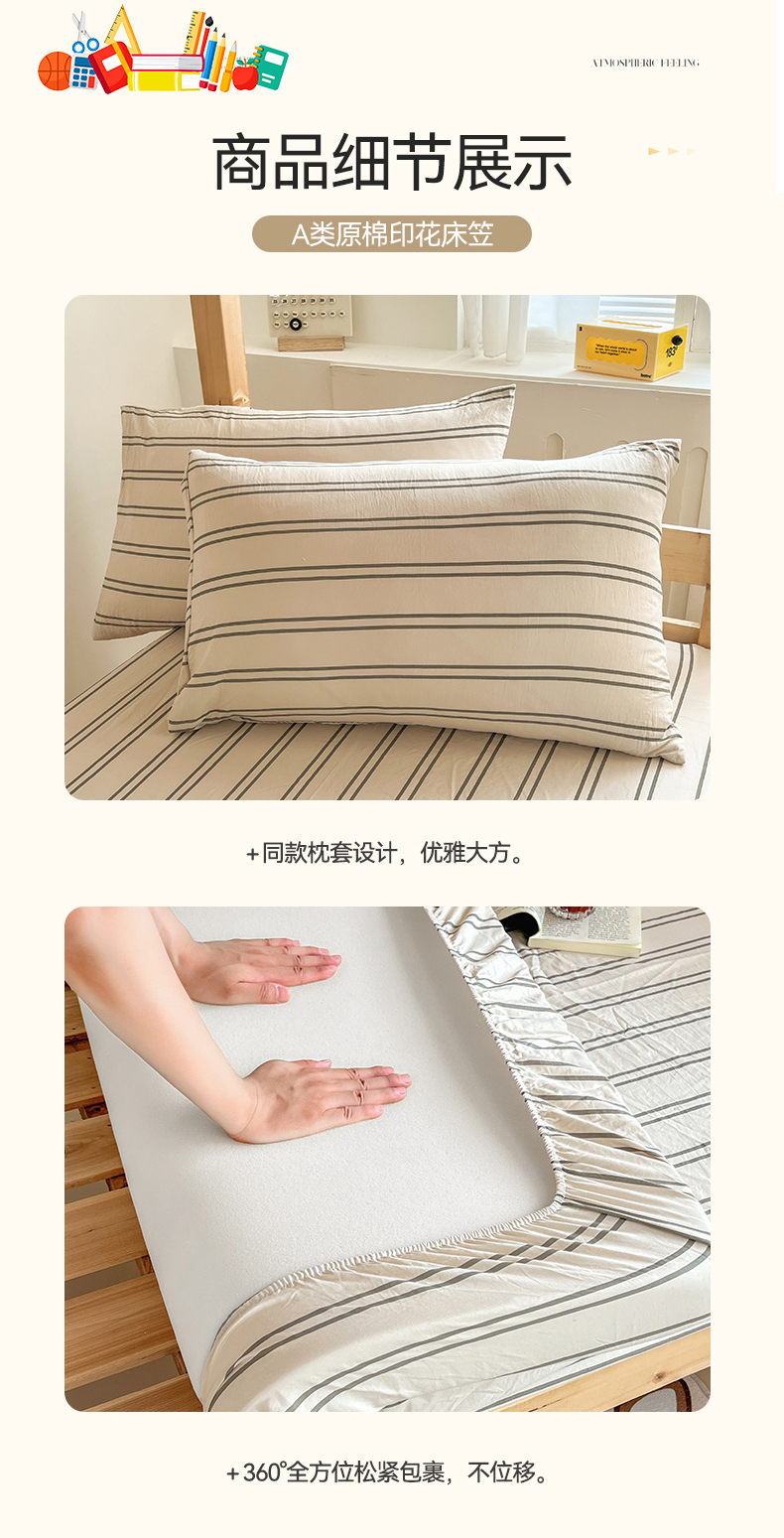 多品家纺 2024新款水洗棉学生宿舍单床笠【无印风,宜家风】 幻影
