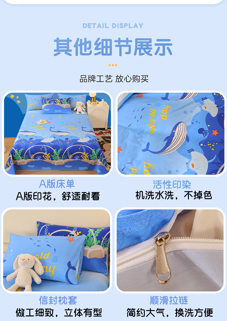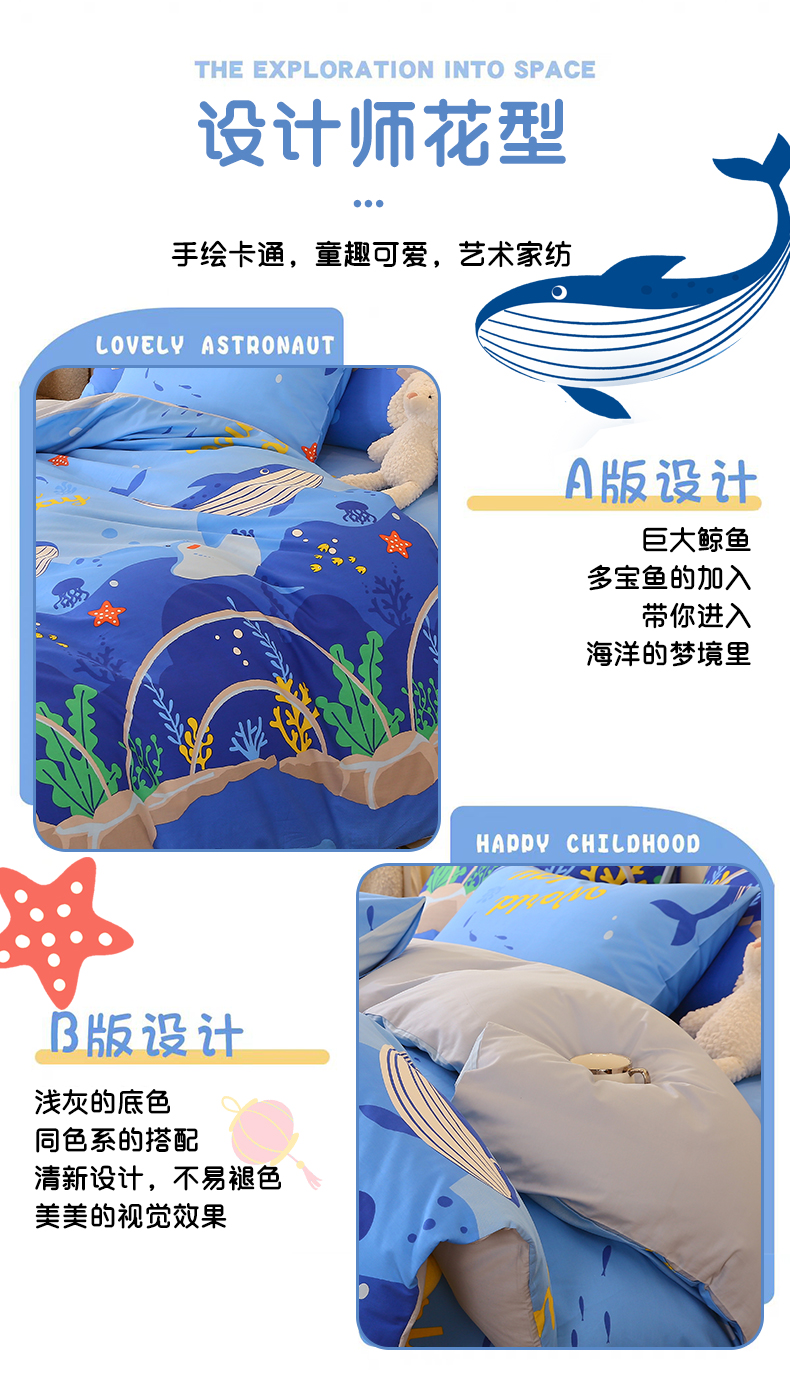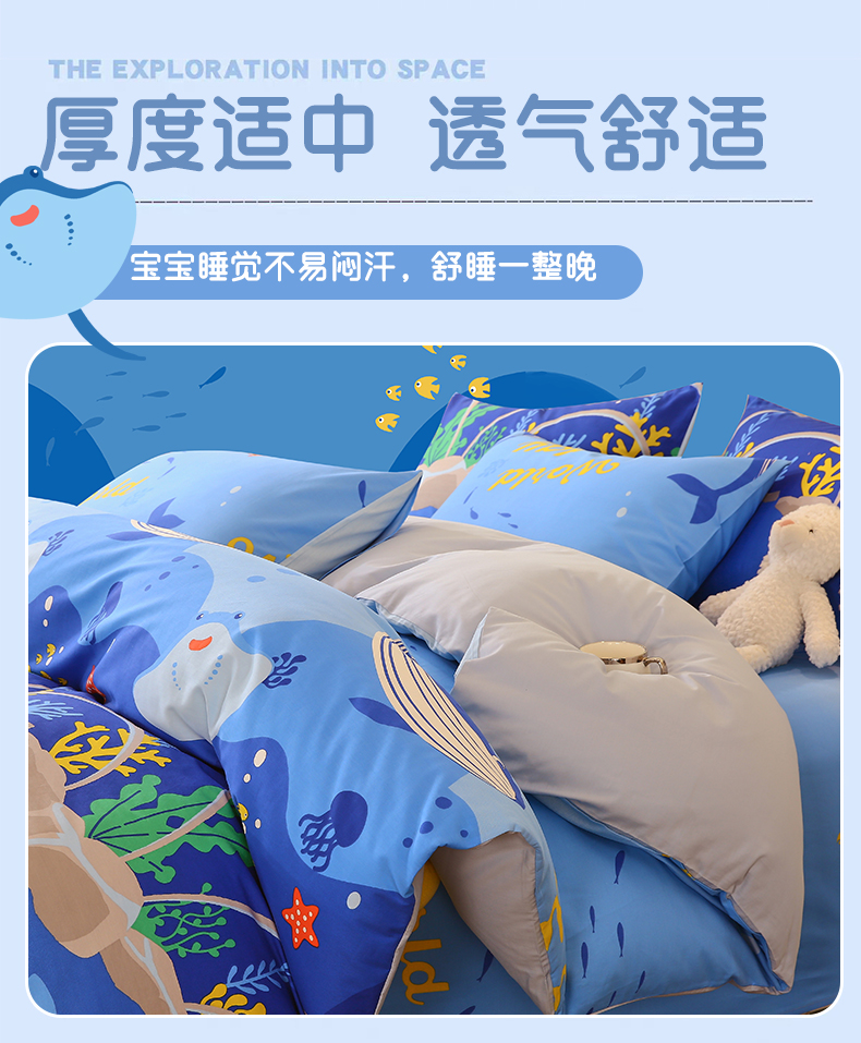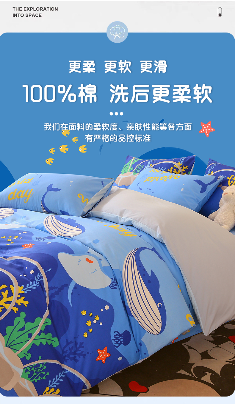 当前位置: 91家纺网 > 商品网购 > 床品套件 > 三件套 > 金鑫汇家纺 2024新款全棉印花四件套 海族馆
