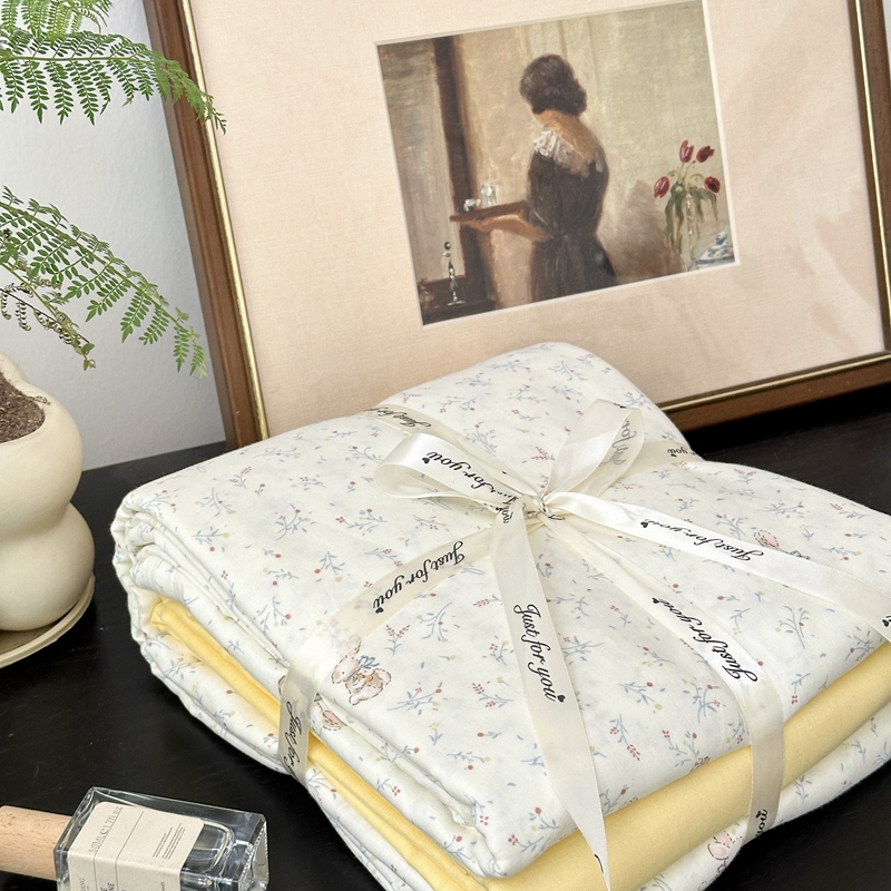 吉象家纺 2024新款双层纱四件套叠拍 花枝兔