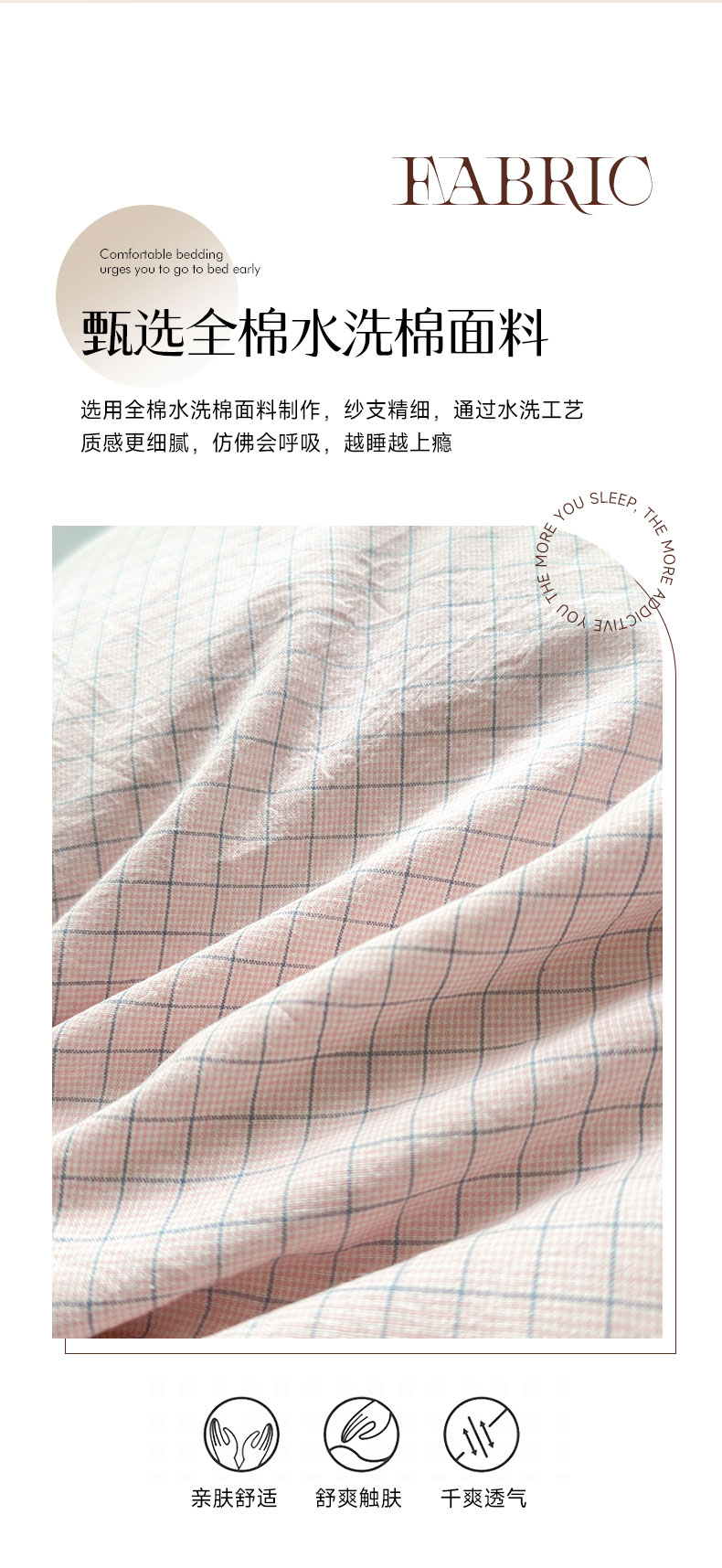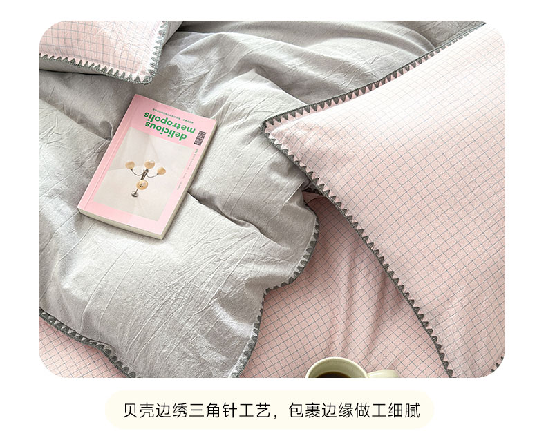 当前位置: 91家纺网 > 商品网购 > 床品套件 > 四件套 > 全棉普通四件套 > 宜家坊 2024新款A类全棉色织水洗棉贝壳边绣三角针工艺四件套可定制 星语-浅粉灰