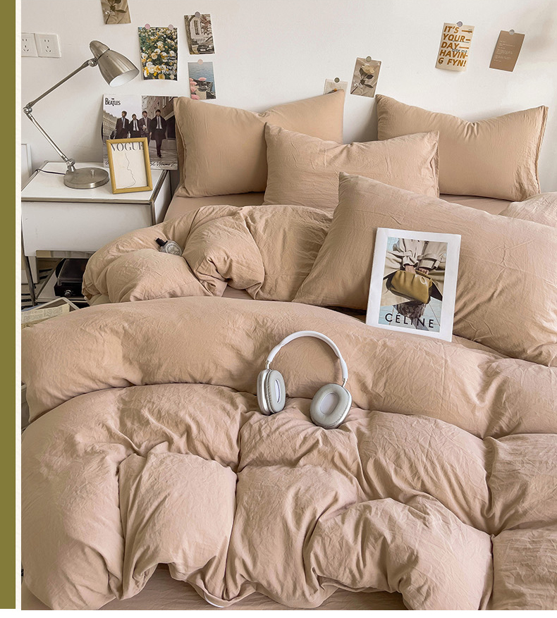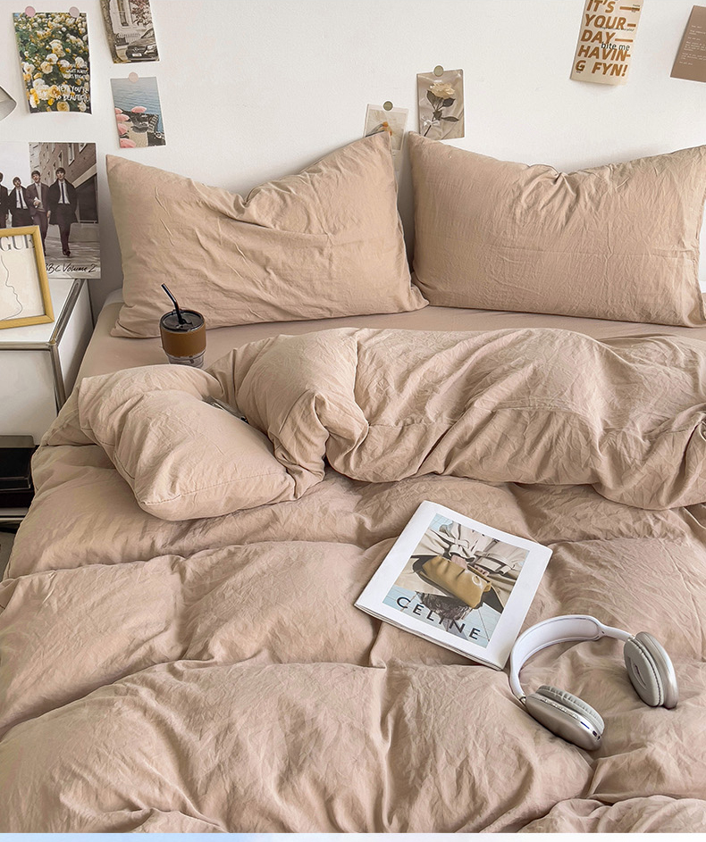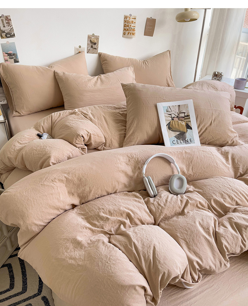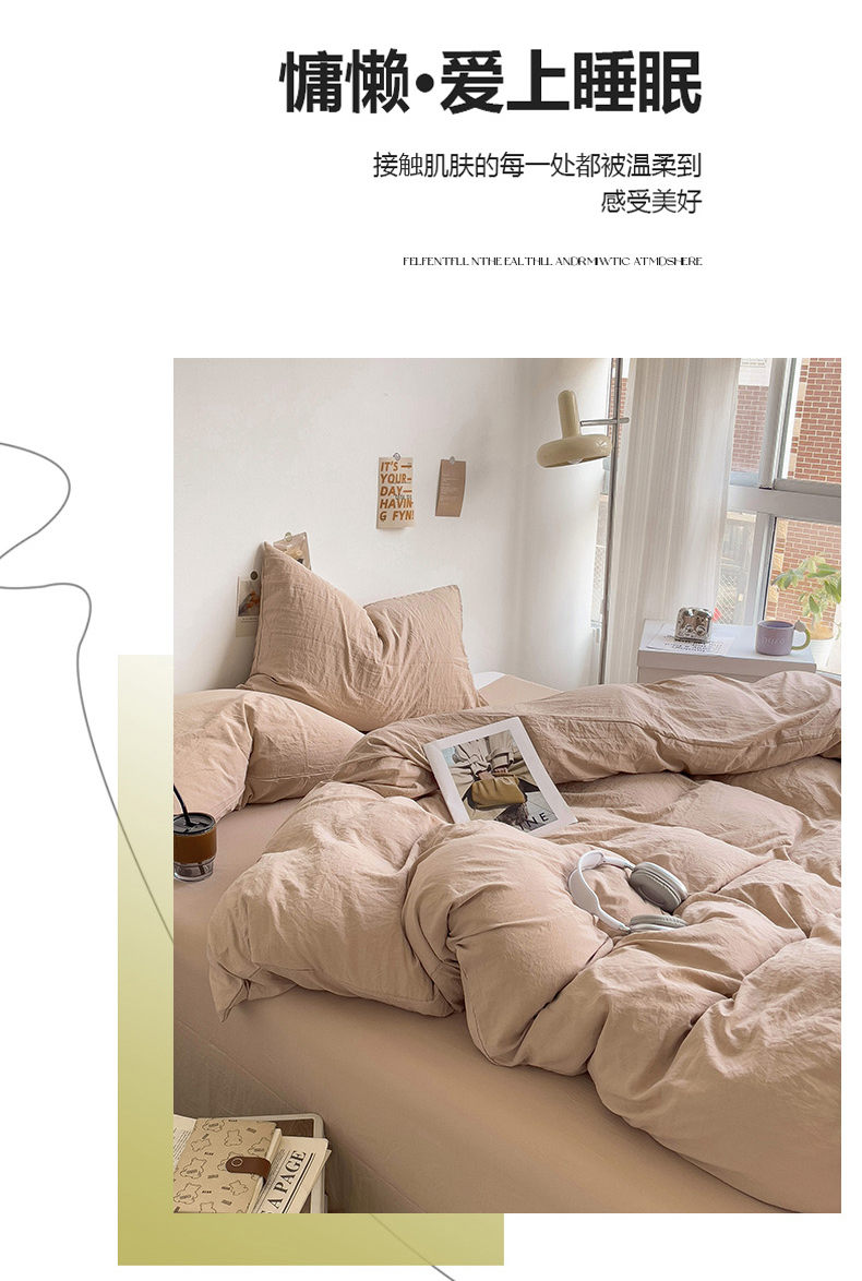 韩巢家纺 2024新款日式ins风超柔褶皱亲肤水洗棉被套单件-纯色系列(提供卖家秀) 水洗棉奶咖