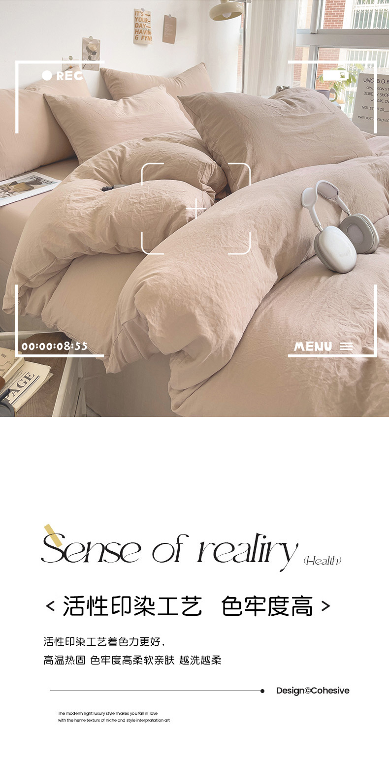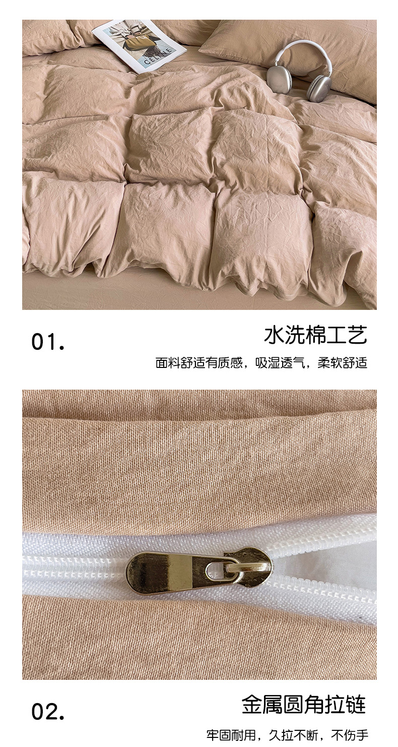 商品名称:韩巢家纺 2024新款日式ins风超柔褶皱亲肤水洗棉被套单件-纯色系列(提供卖家秀) 水洗棉奶咖