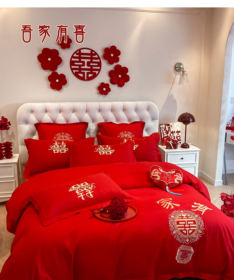 当前位置: 91家纺网 > 商品网购 > 床品套件 > 四件套 > 婚庆四件套 > 玉雅家纺 2025新款玉雅时尚磨毛刺绣床单款系列婚庆套件 床单绣花款-喜相随