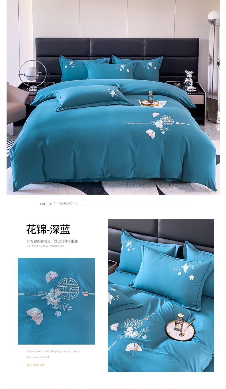 商品名称:金米诺 2024新款磨毛四件套刺绣系列 深蓝