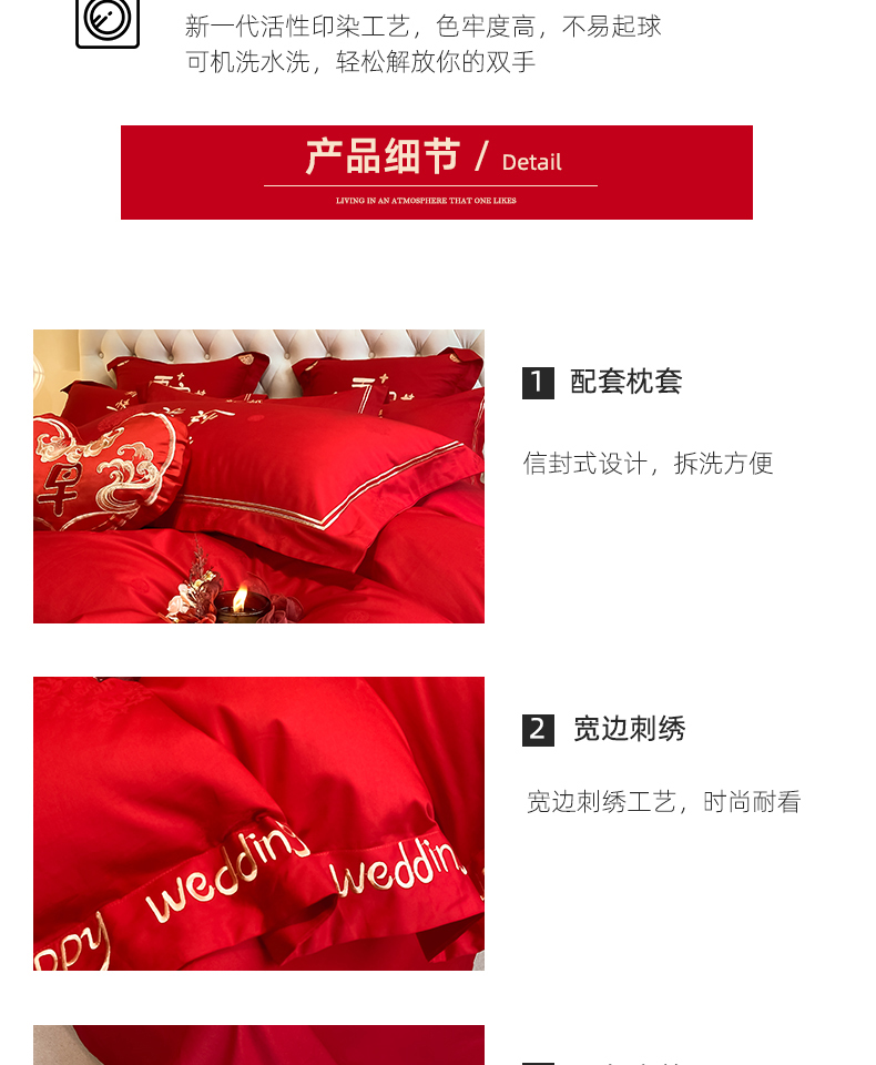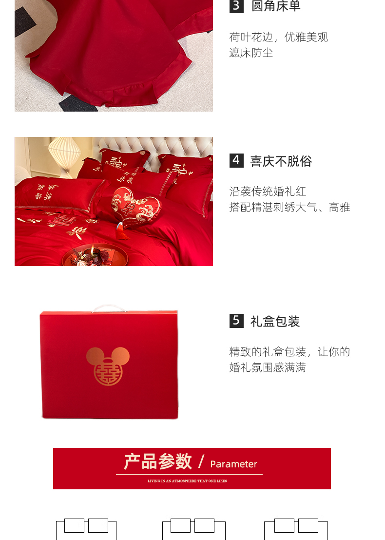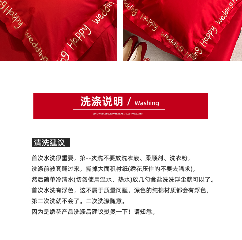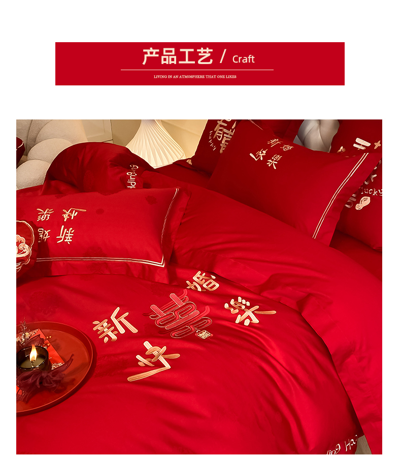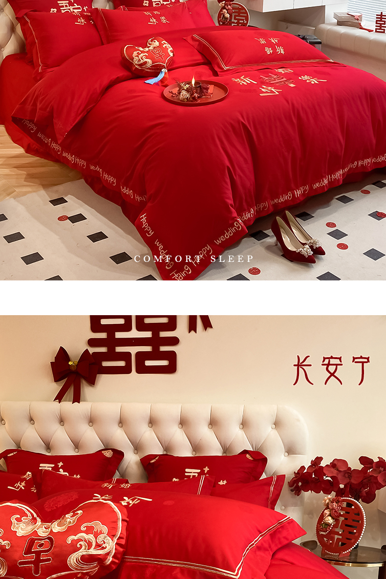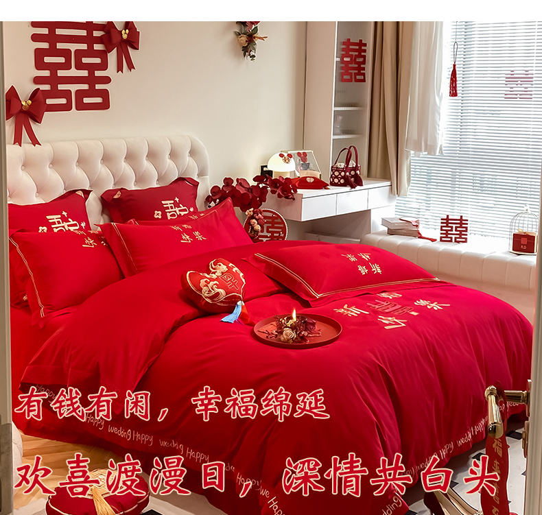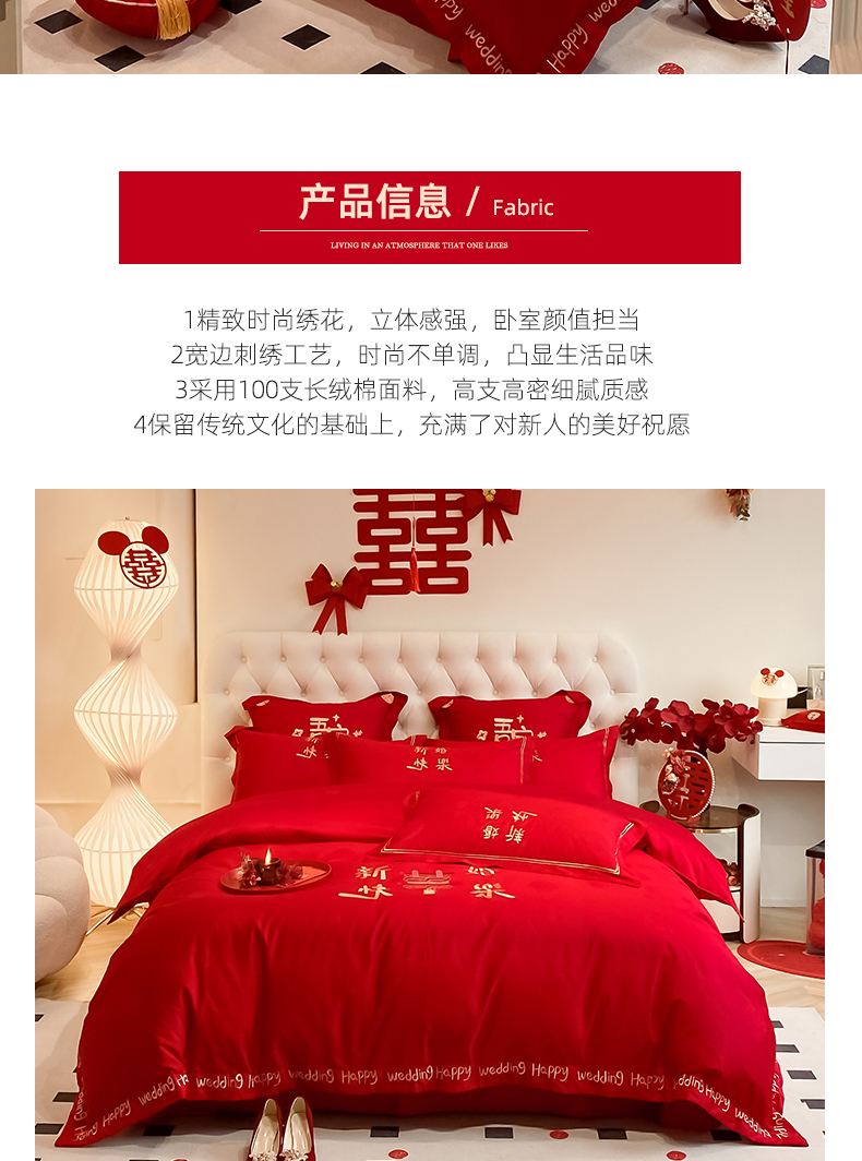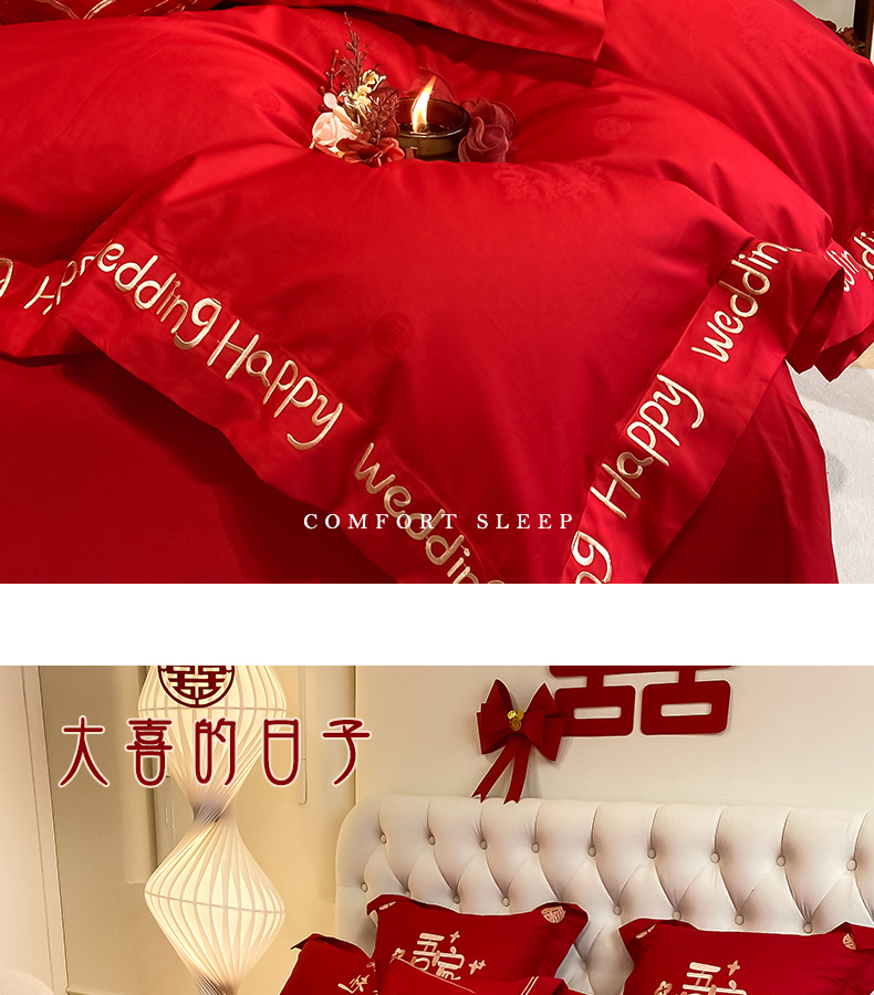 当前位置: 91家纺网 > 商品网购 > 床品套件 > 四件套 > 婚庆四件套 > 玉雅家纺 2025新款100支长绒棉高档提花刺绣婚庆四件套 新婚快乐
