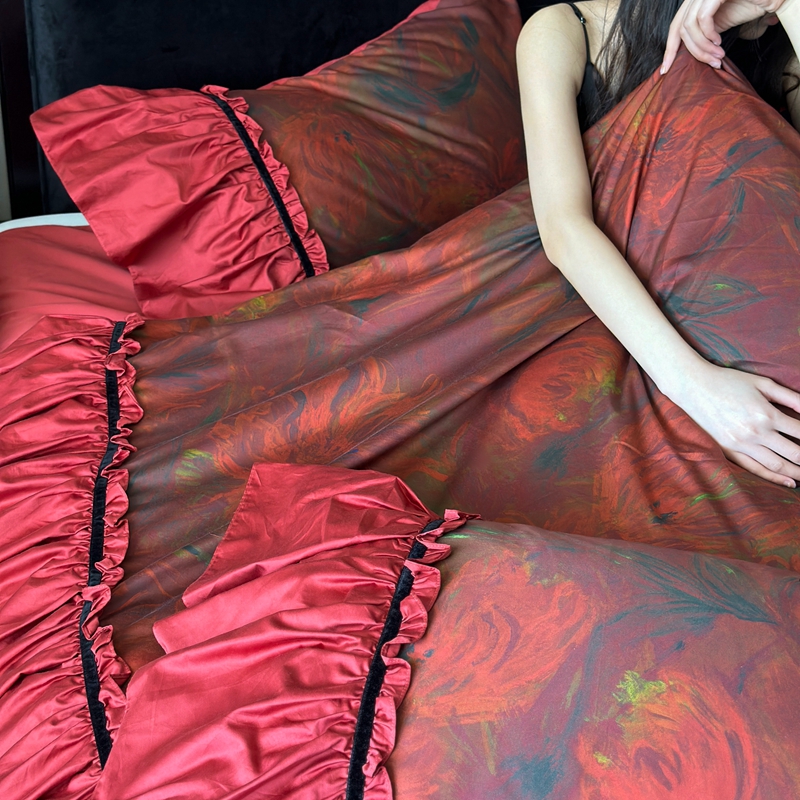 鹿班家居 2024新款100支长绒棉数码印花系列四件套-西西里岛(标准会员-20 ) 西西里岛-红