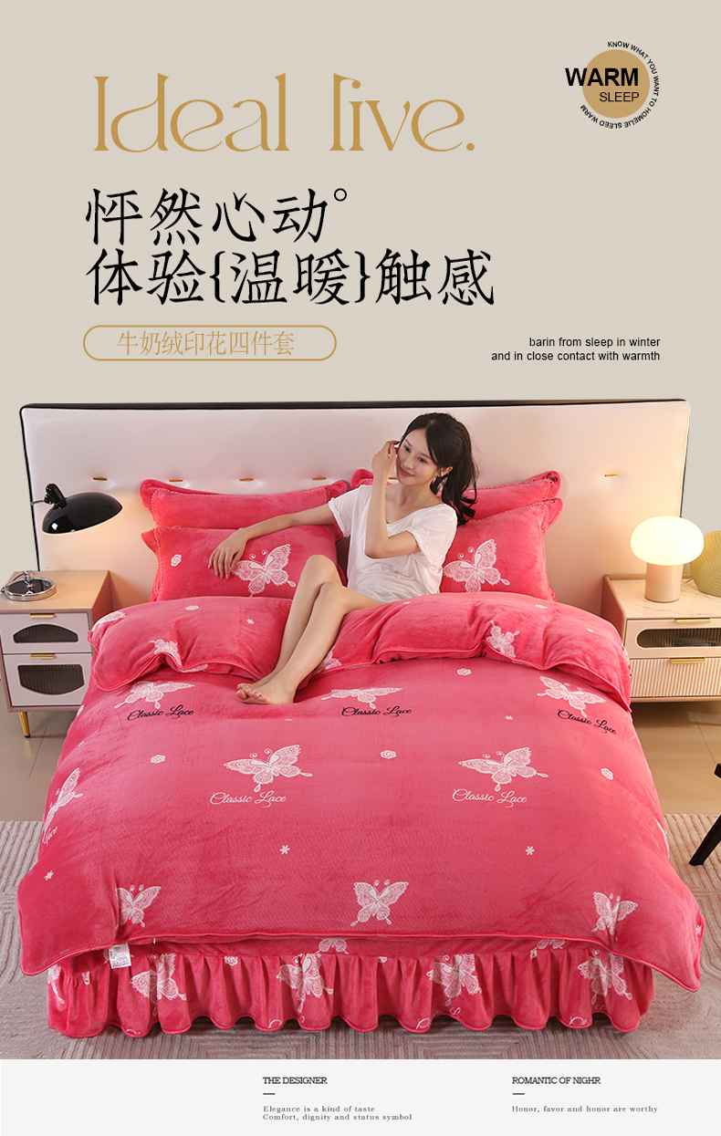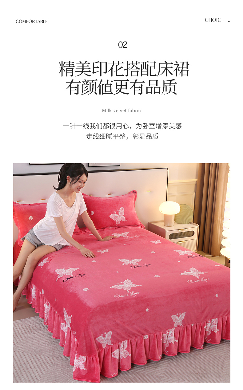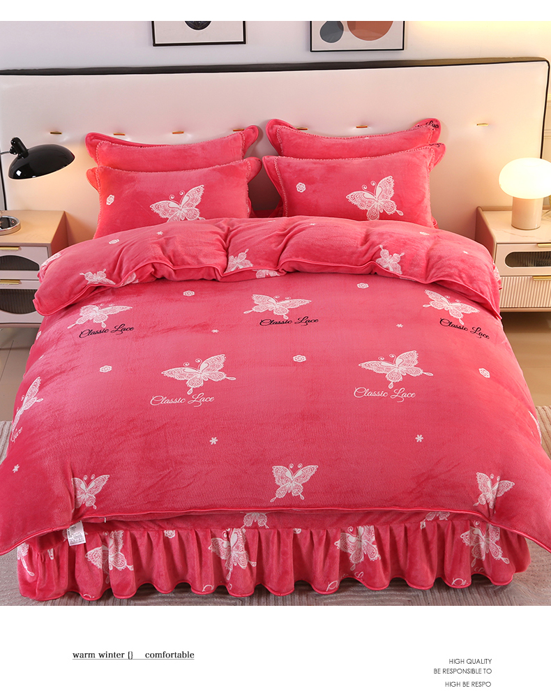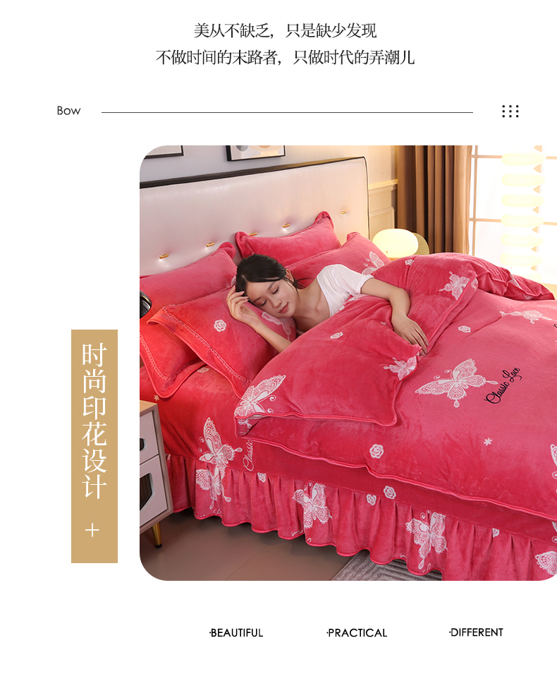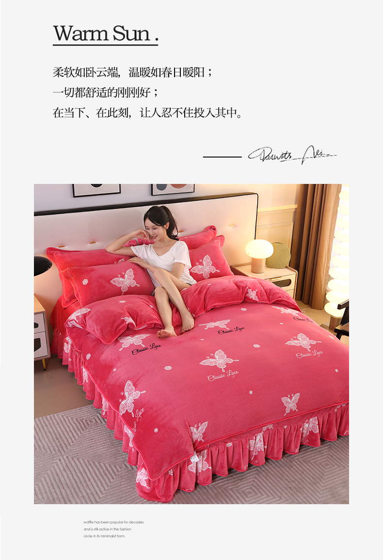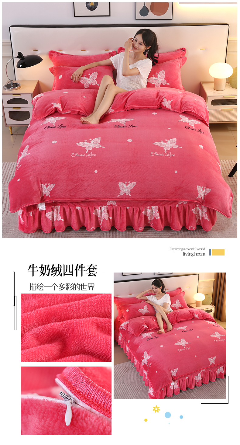 代芙家纺 7斤重牛奶绒金貂四件套抗静电法莱绒珊瑚绒床裙 迷恋