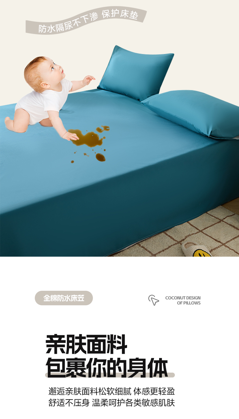 商品名称:火星时代网供 2024新款跨境外贸TPU防水床单单件儿童老人防失禁隔尿垫纯白色床罩套可水洗机洗 海洋蓝