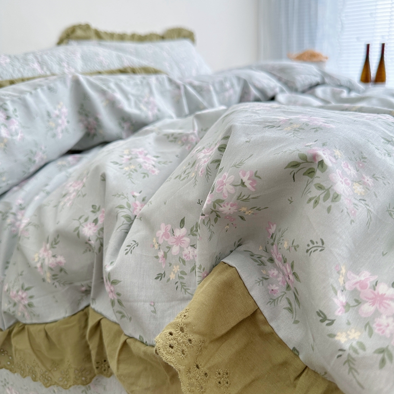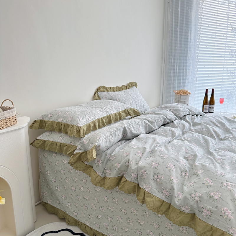 商品名称:佰织鑫家居 2024新款全棉法式床盖款四件套 莫奈绿