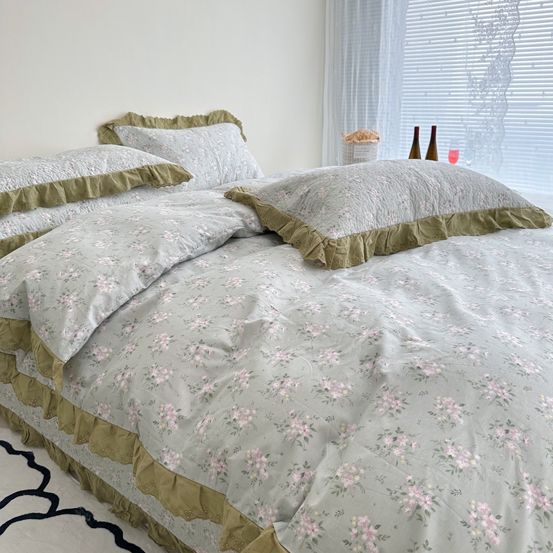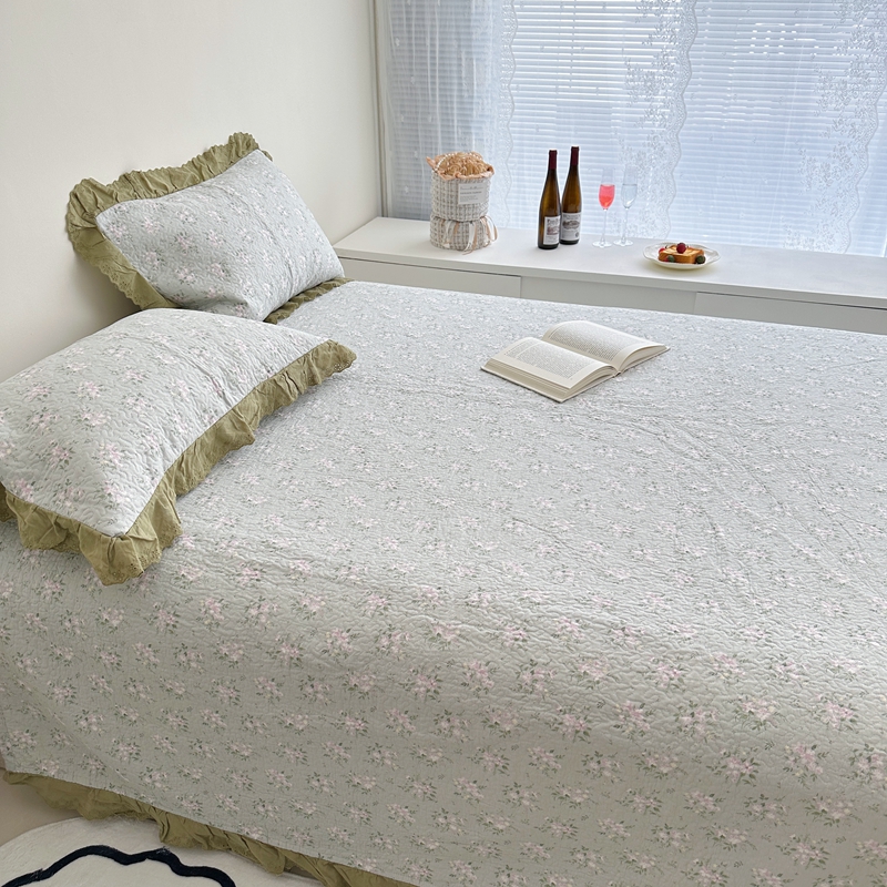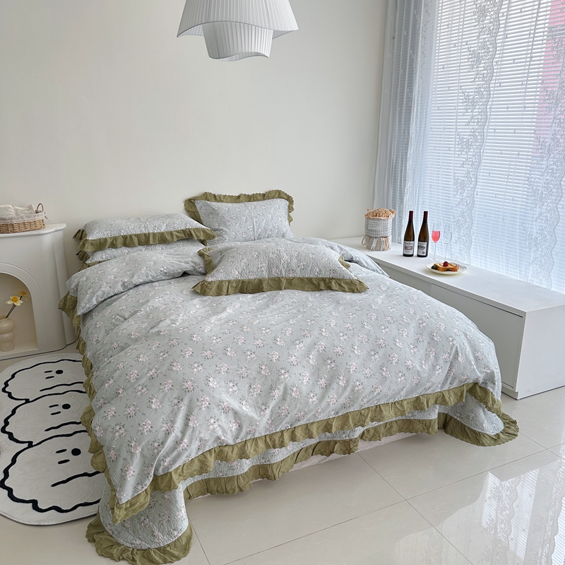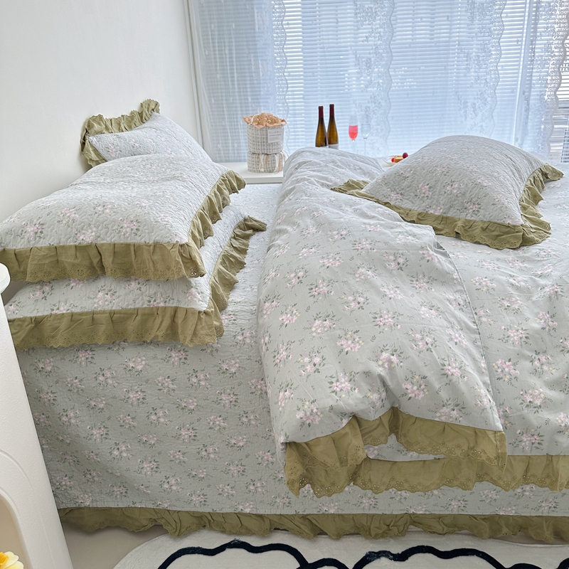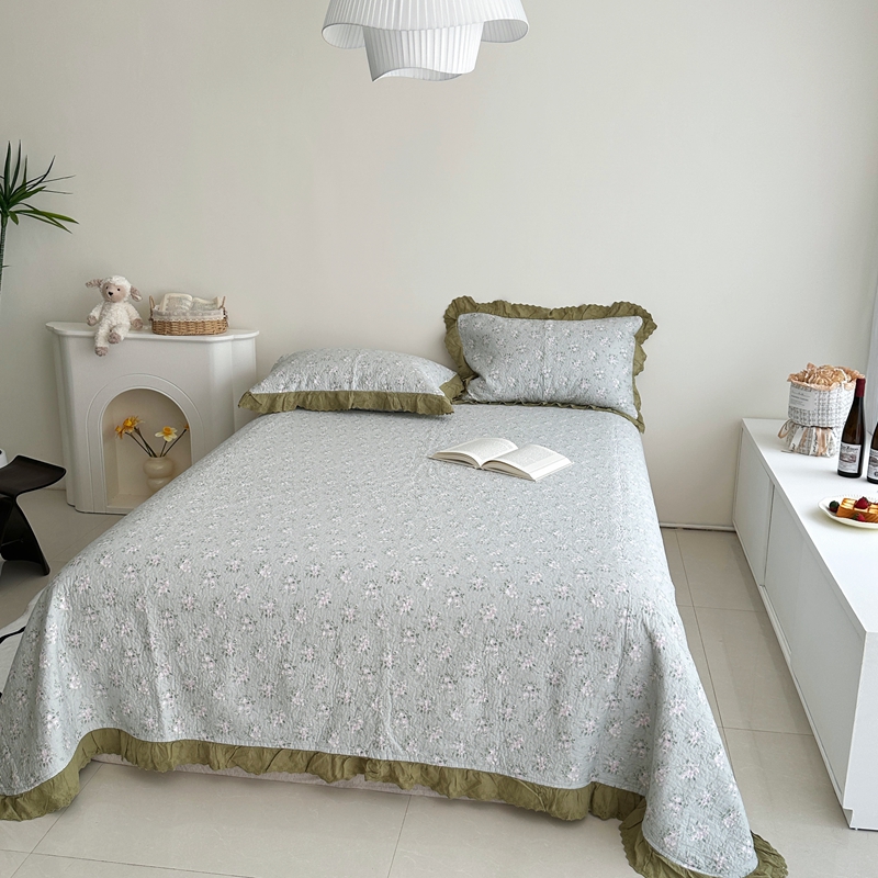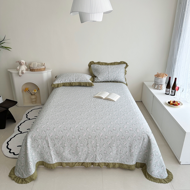 佰织鑫家居 2024新款全棉法式床盖款四件套 莫奈绿