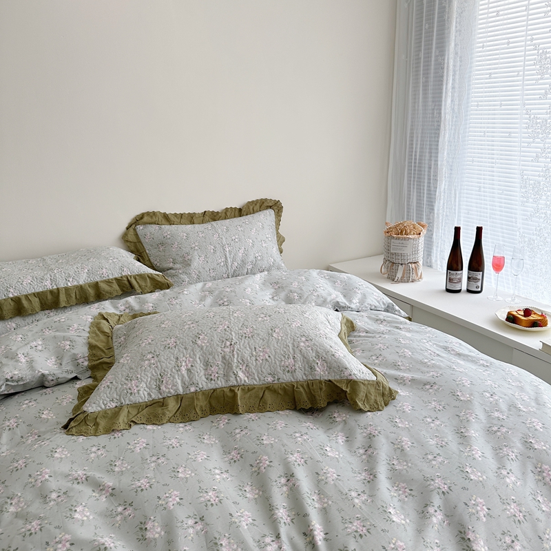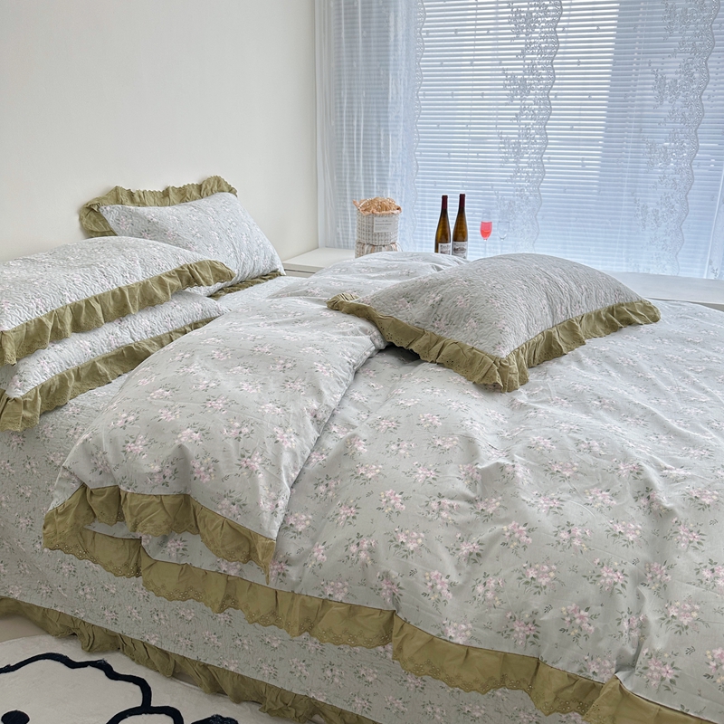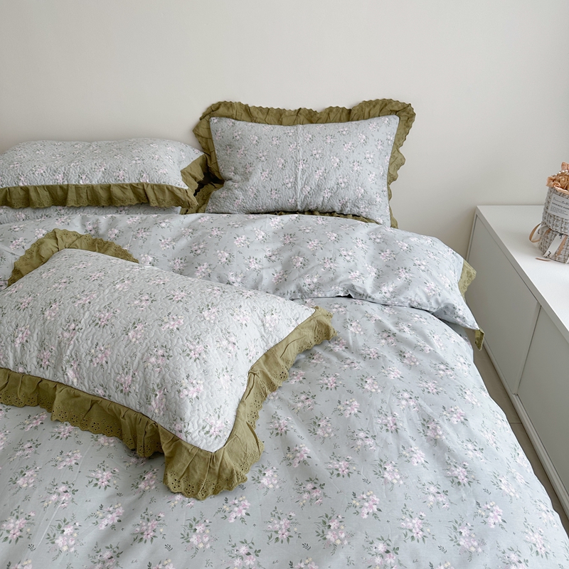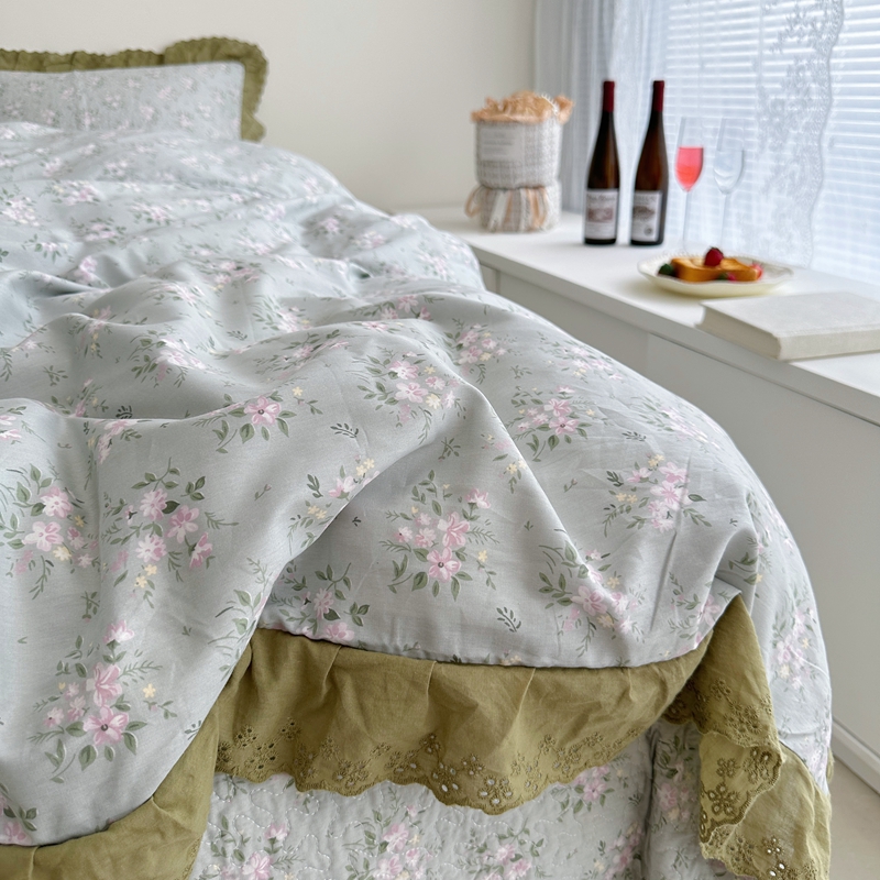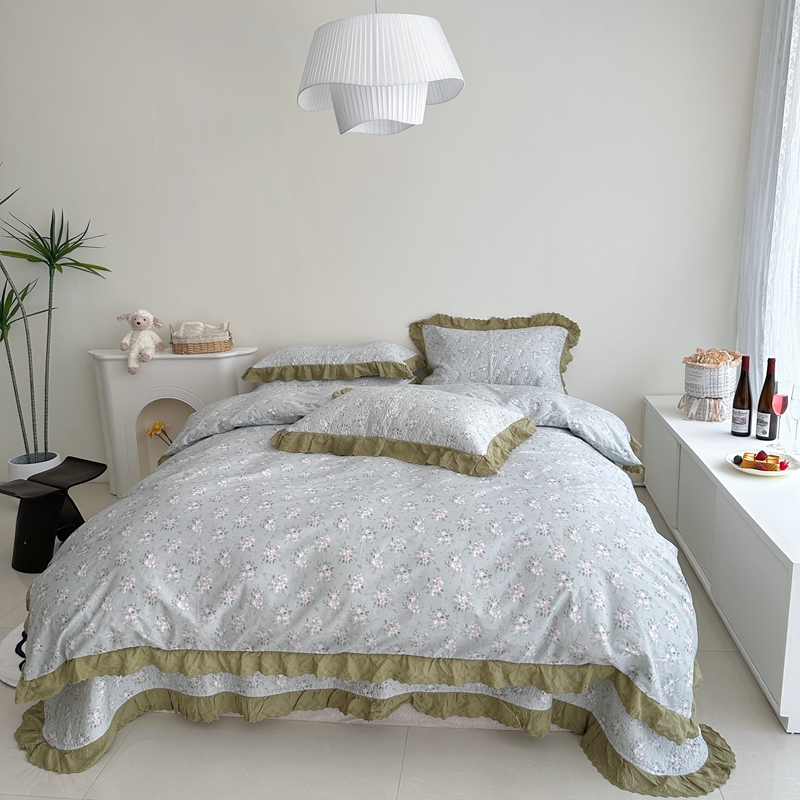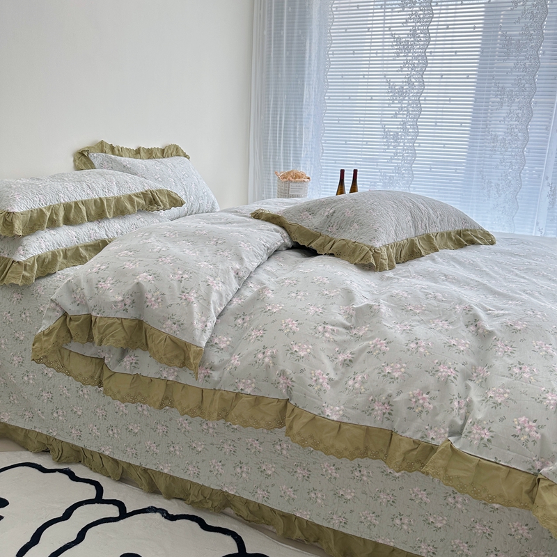佰织鑫家居 2024新款全棉法式床盖款四件套 莫奈绿