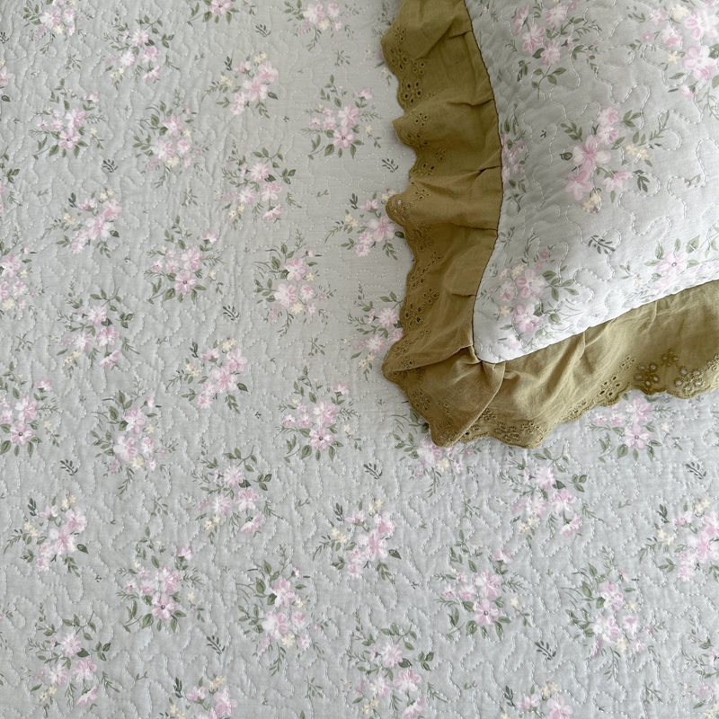 (总)佰织鑫家居 2025新款棉加绒床盖三件套花苞豆豆被四件套,梨花落,落了白