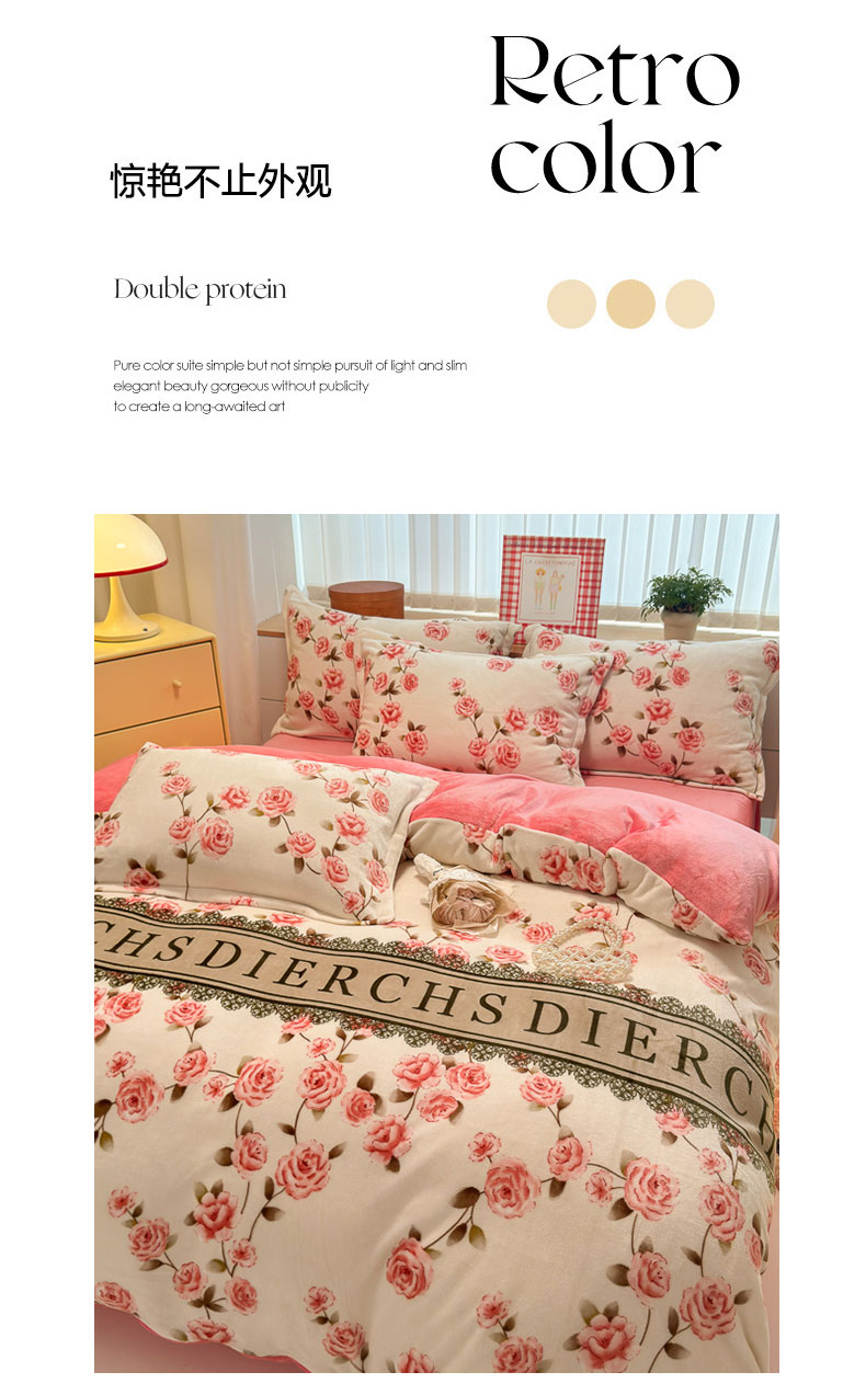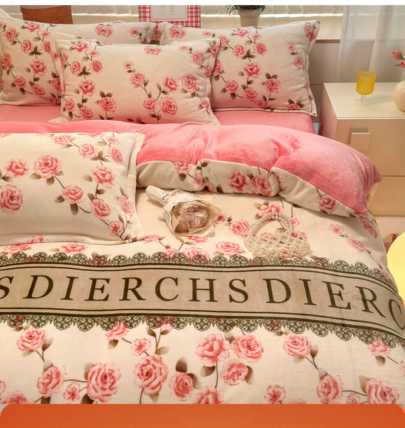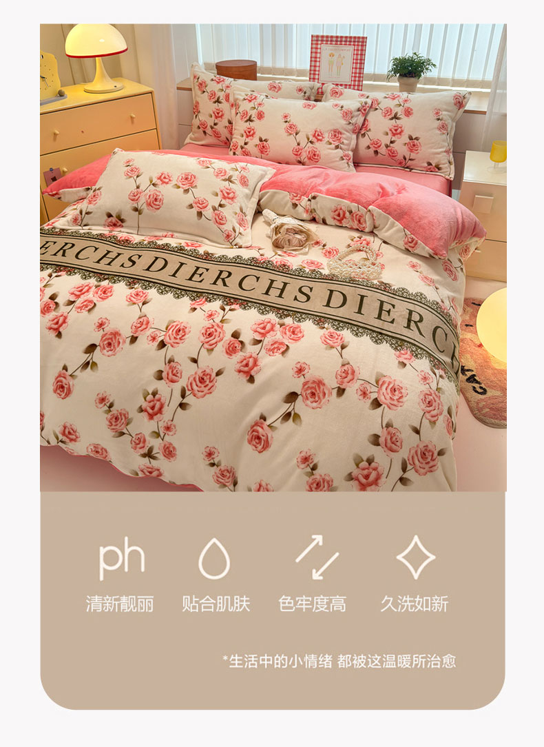 (总)德比尔斯 2025新款韩版白边黑边赫本风牛奶绒床盖四件套,爱心小熊,安妮粉,蝶恋花粉,法风小香,赫本-蝴蝶结粉,赫本-蝴蝶结咖,盛夏丛林,晕染花曳