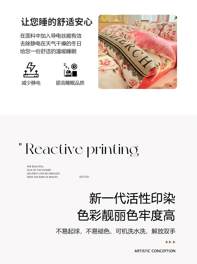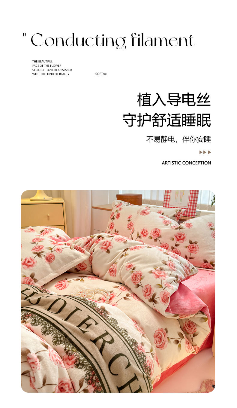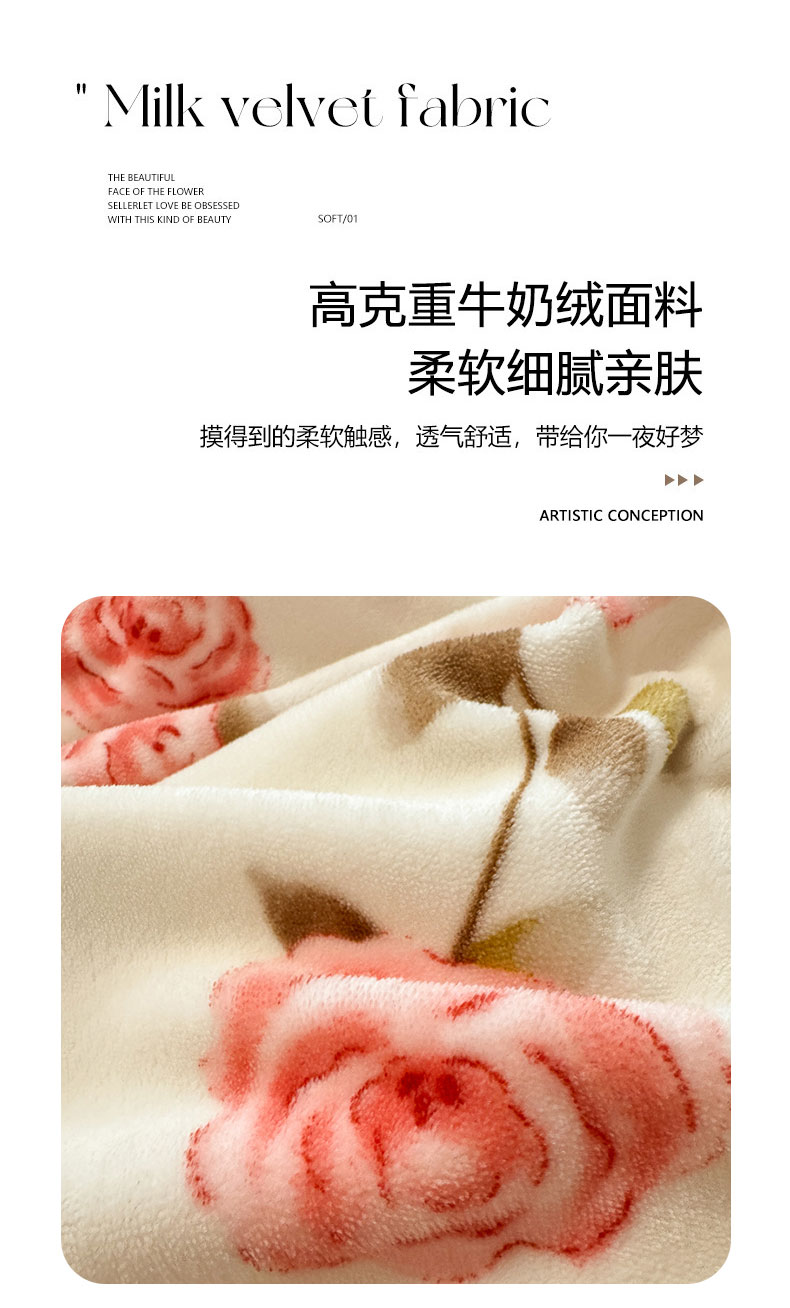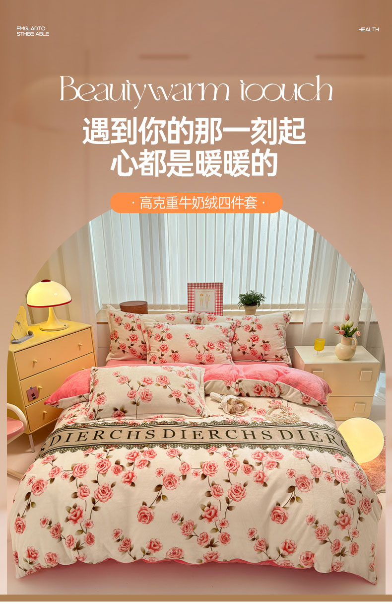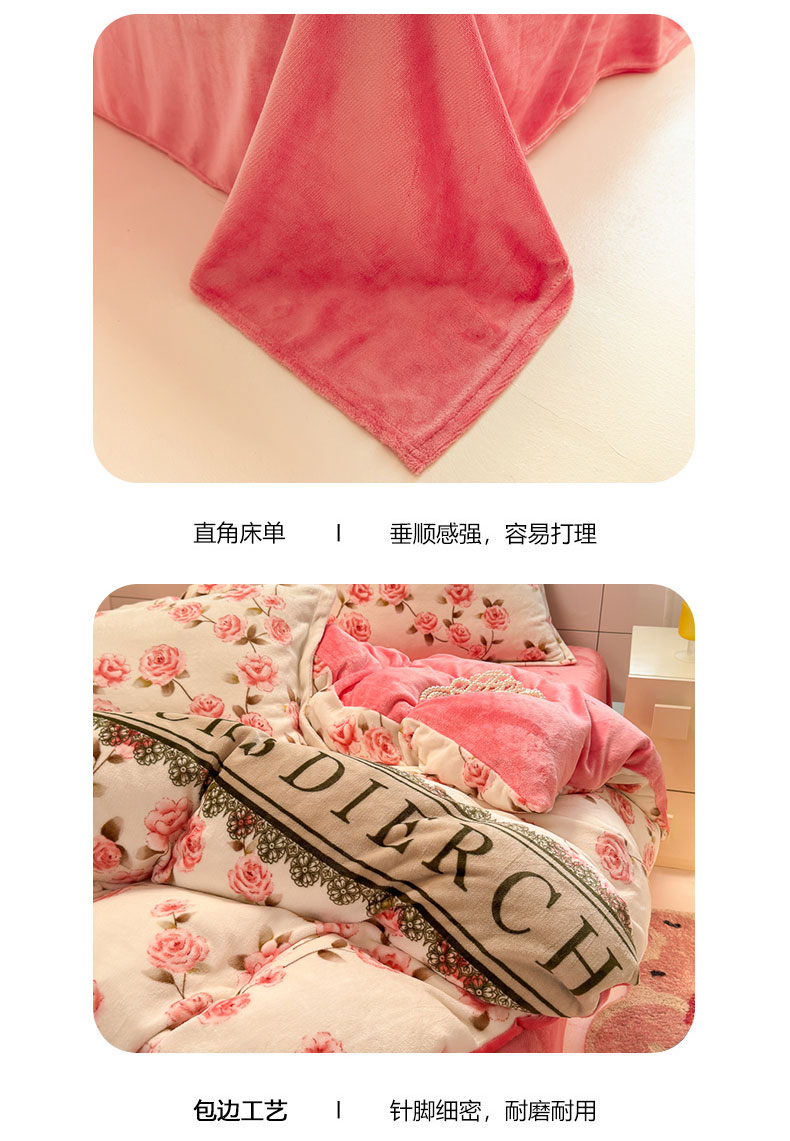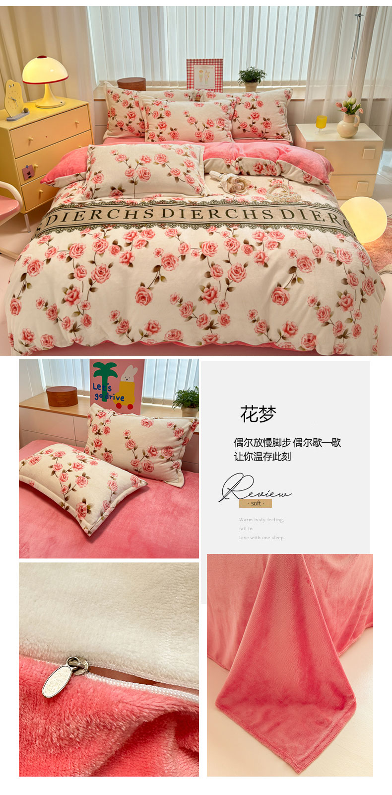 商品名称:德比尔斯 2025新款7斤重印花牛奶绒四件套爆款 花梦