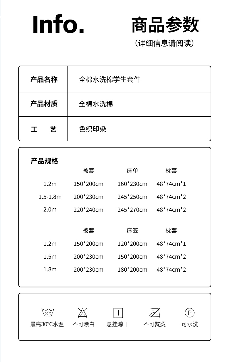 商品名称:(总)吉象家纺 2025新款全棉水洗棉三角针学生三件套四件套