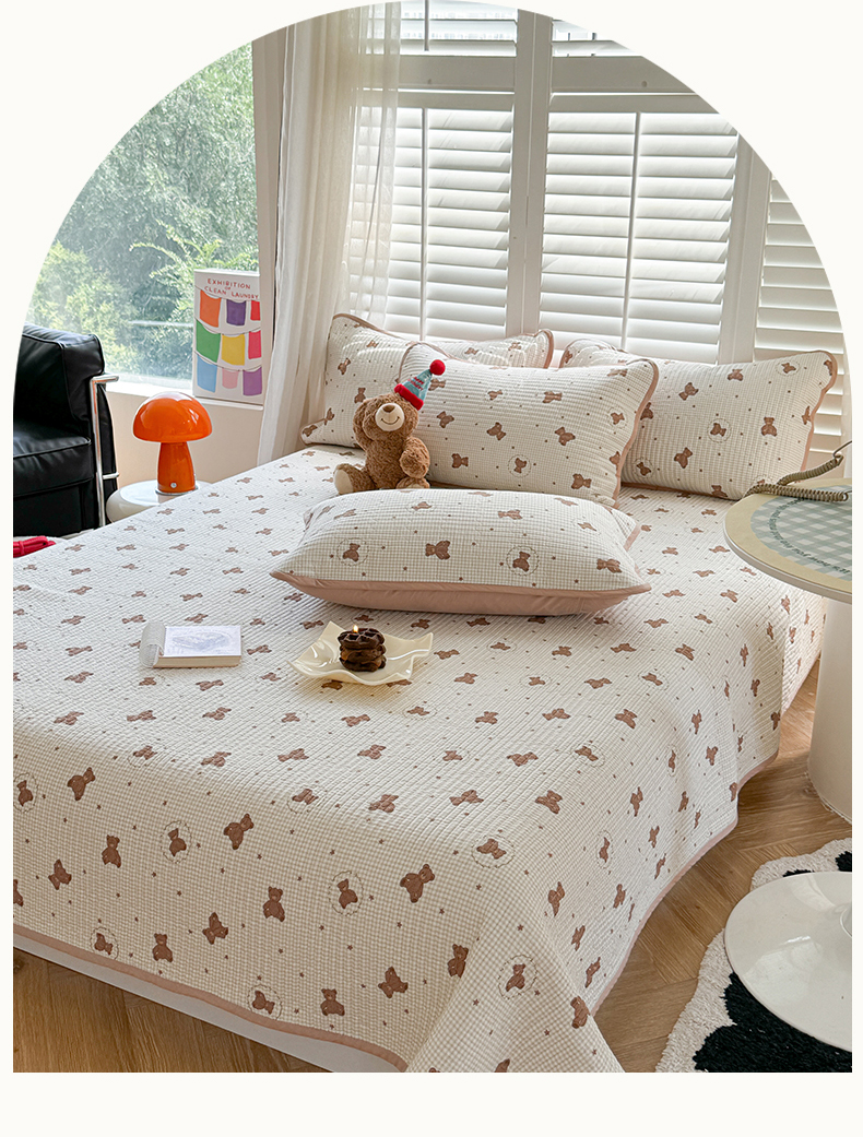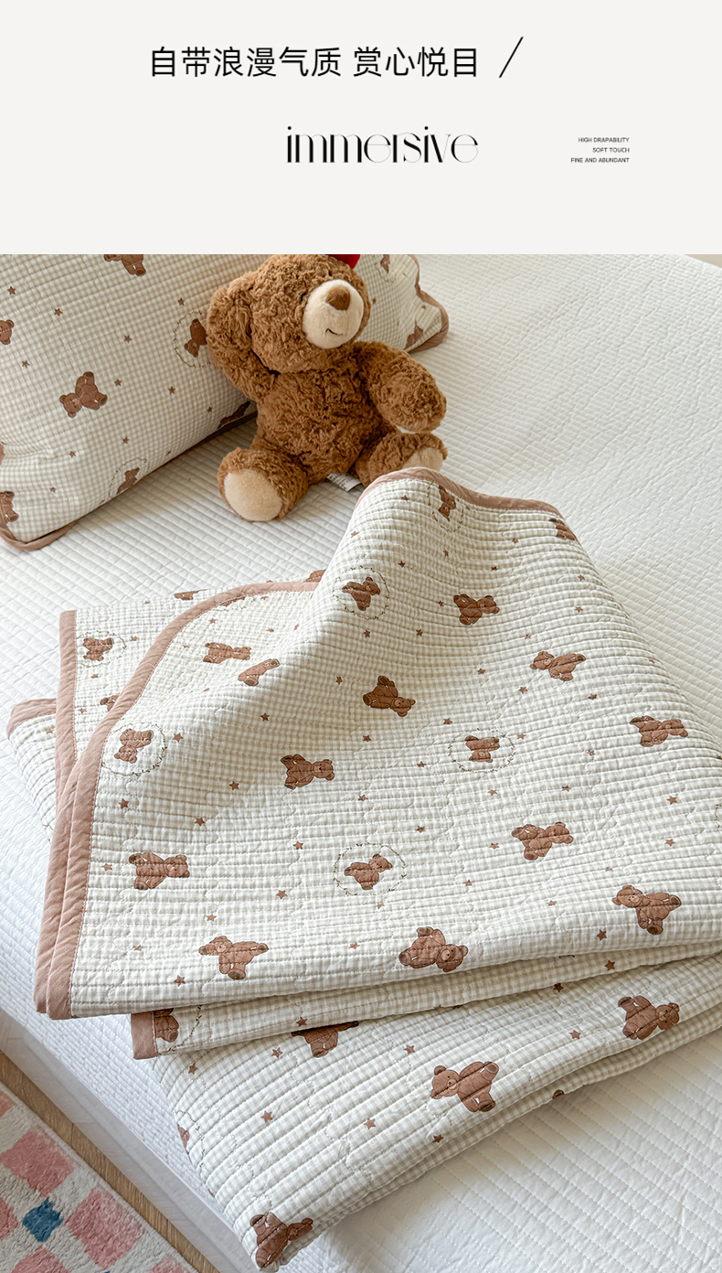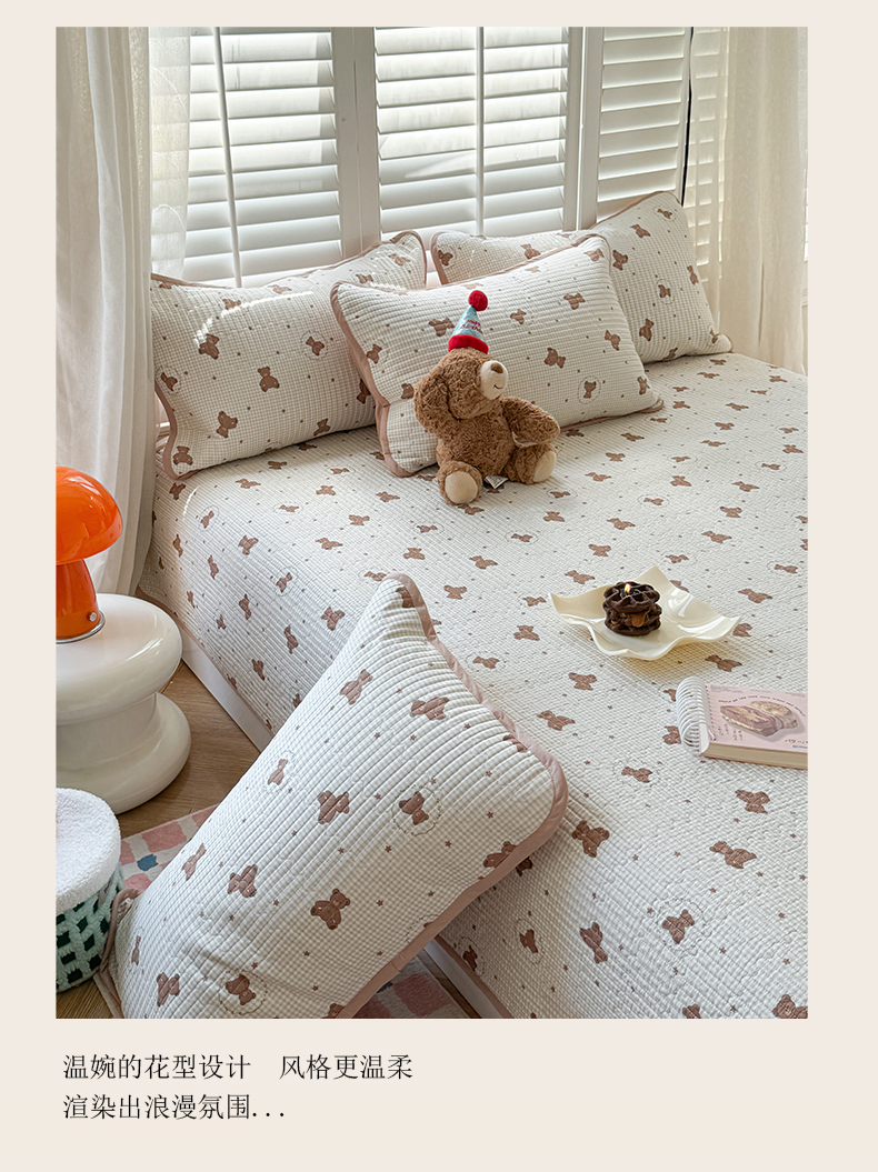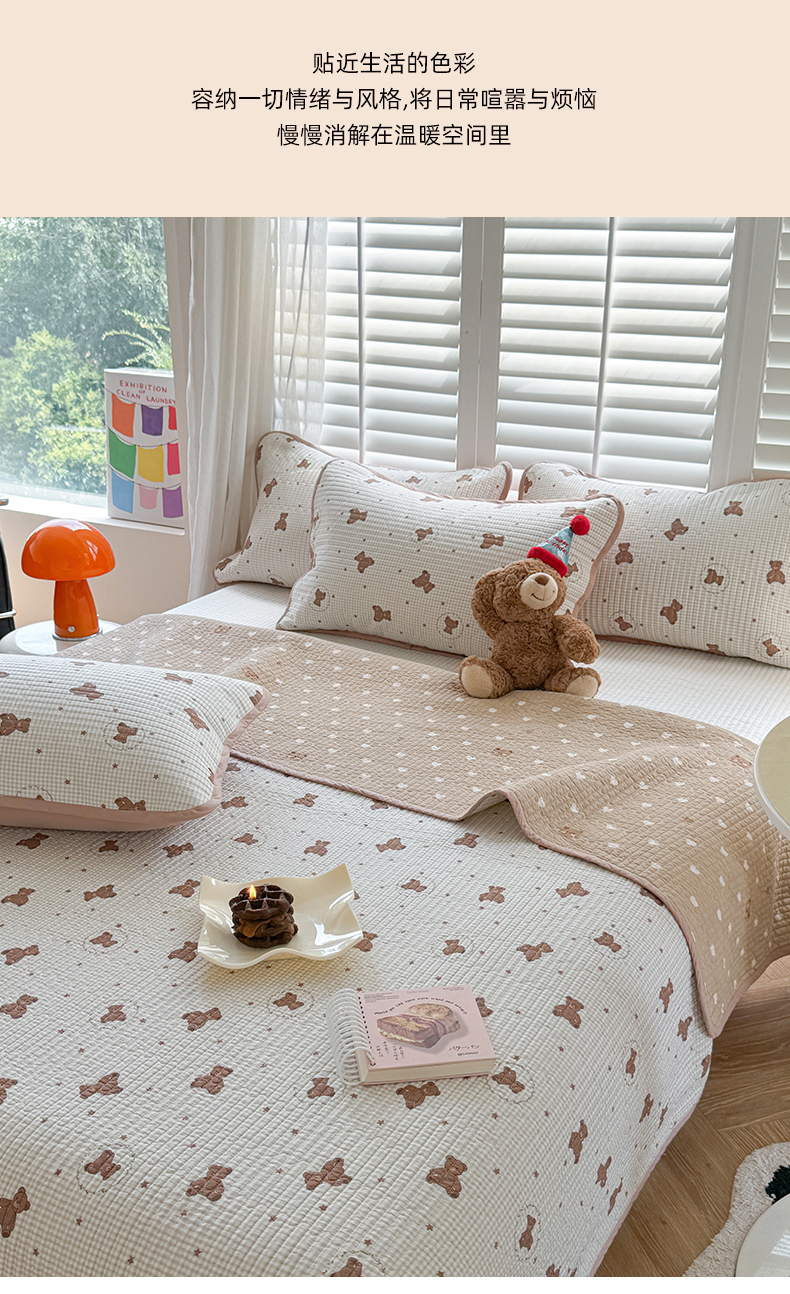 茉夕家纺 2024新款双面全棉夹棉床盖系列 小熊温蒂