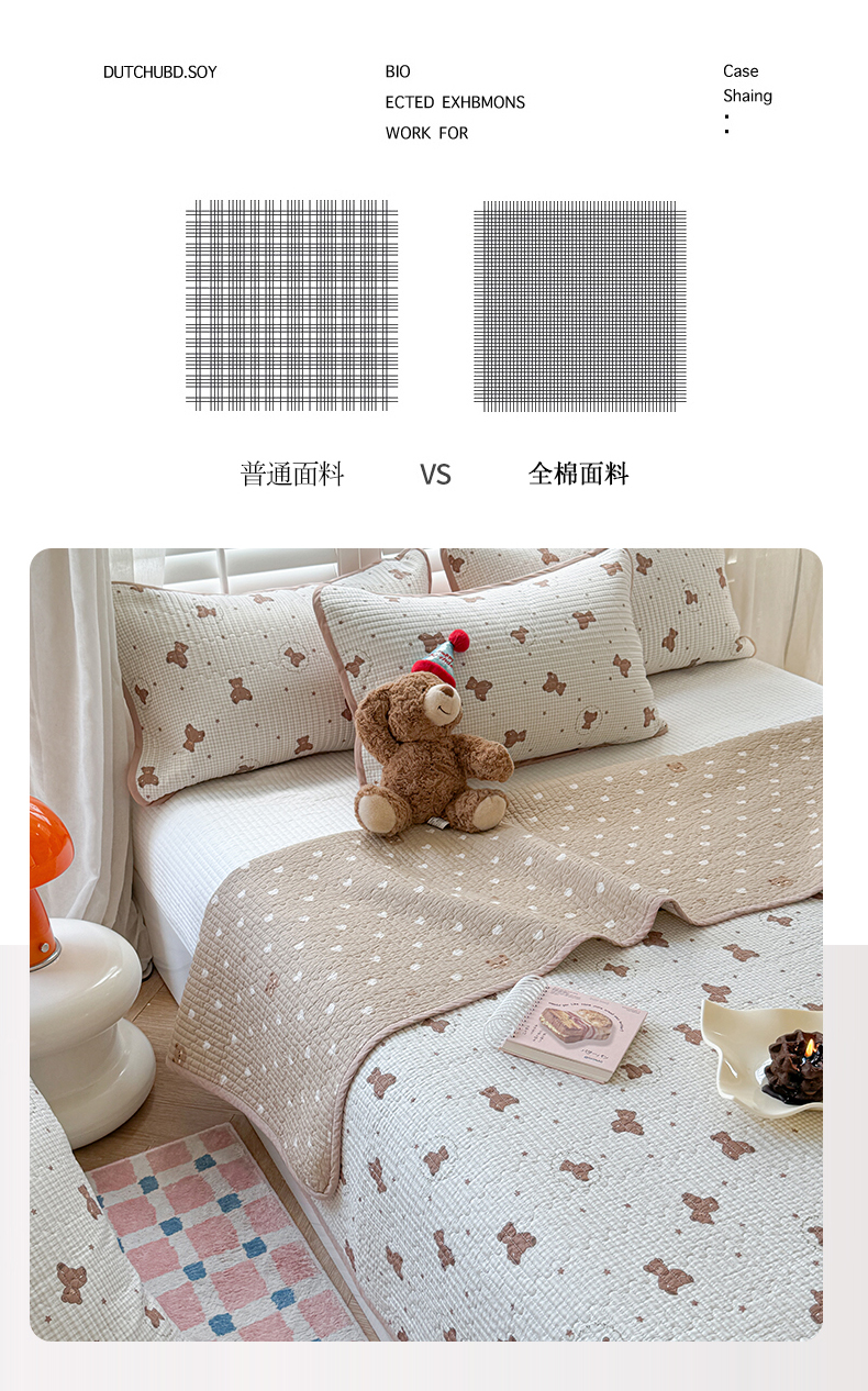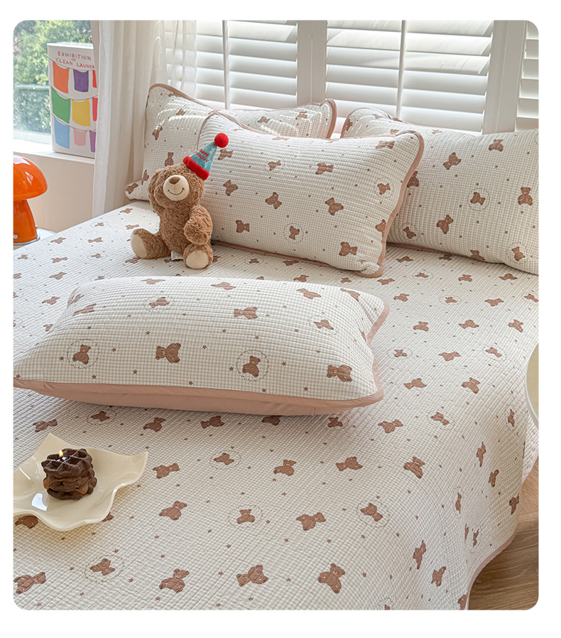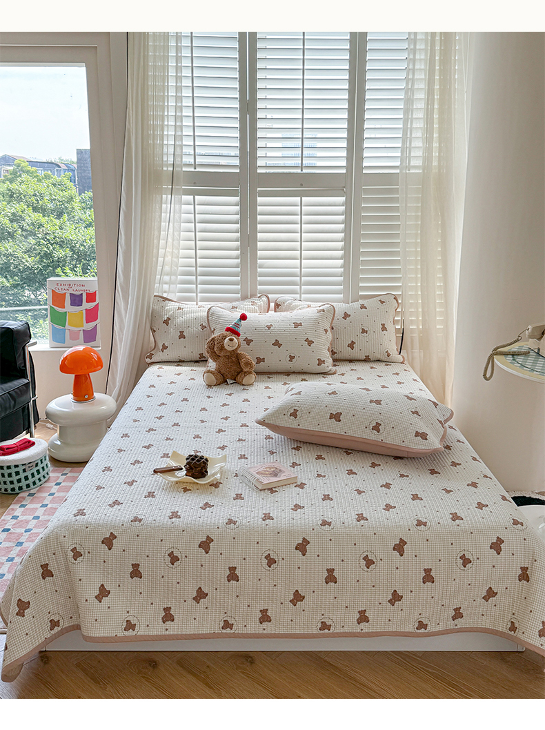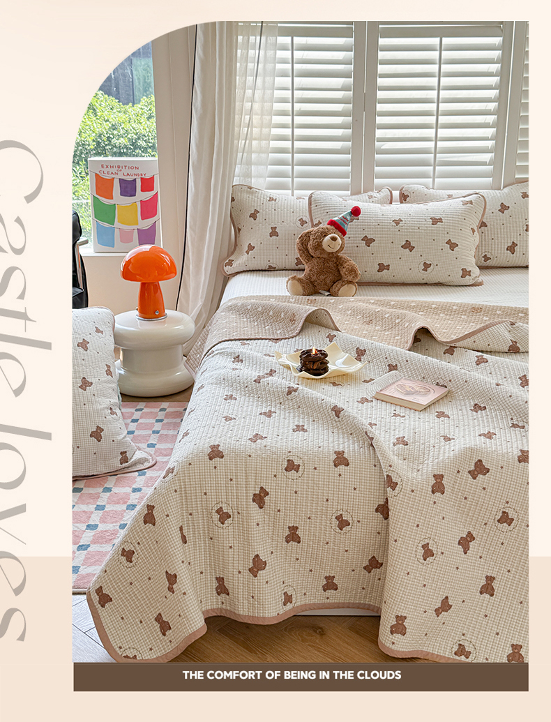 茉夕家纺 2024新款双面全棉夹棉床盖系列 小熊温蒂
