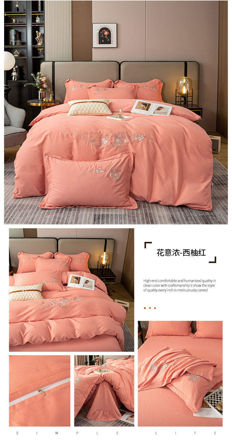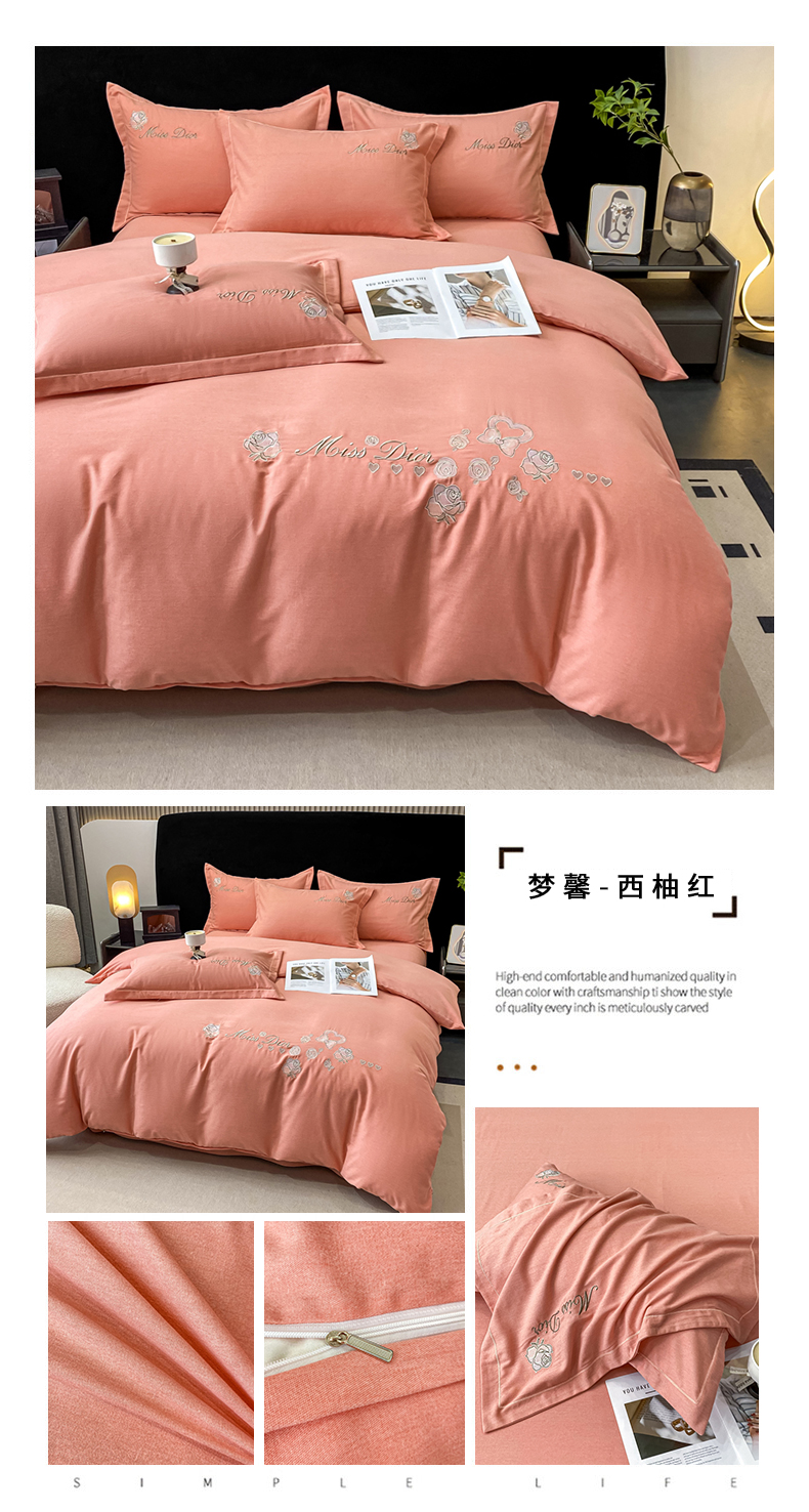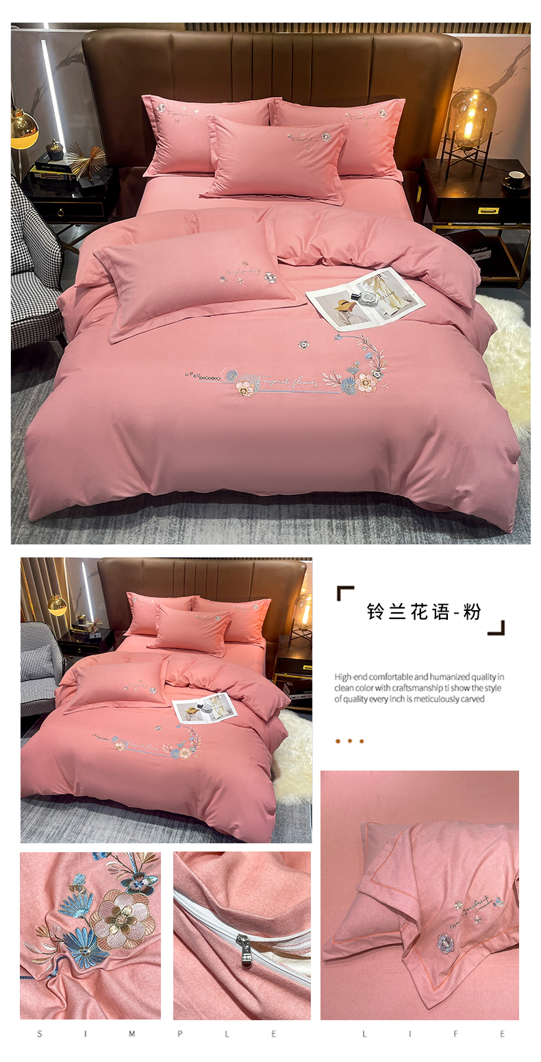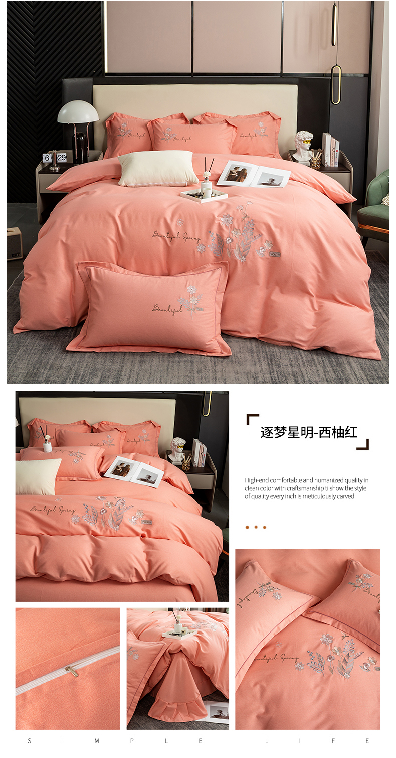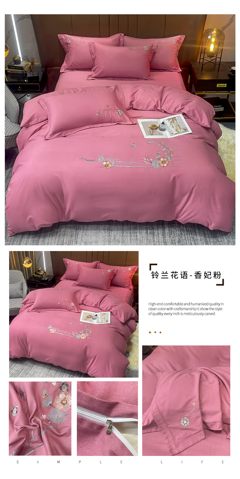 (总)昊翔家纺 2025新款全消光蚕丝绒段角刺绣四件套花之语,花之语-粉色,花之语-桔色,花之语-咖色,花之语-浅蓝,花之语-森林绿,花之语-银灰