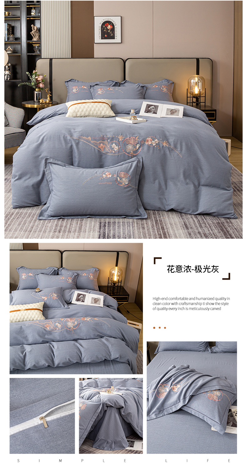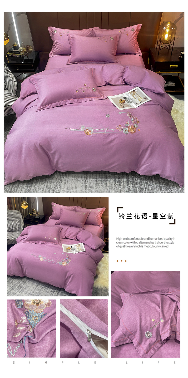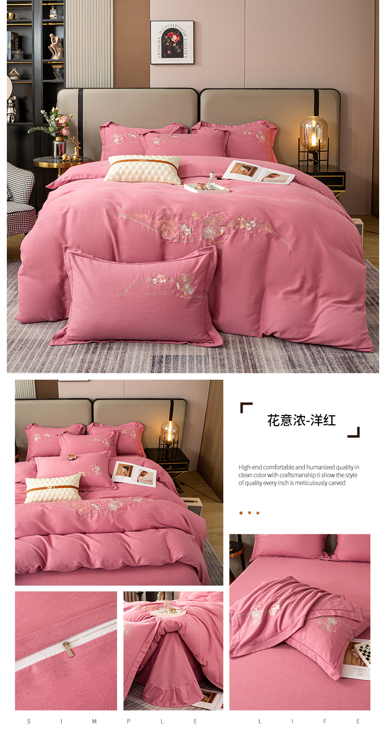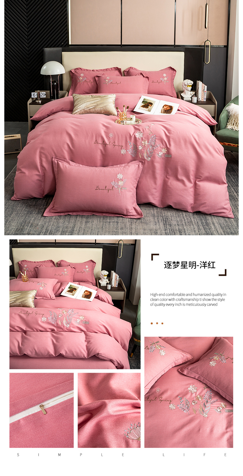 (总)昊翔家纺 2025新款全消光蚕丝绒段角刺绣四件套花之语,花之语-粉色,花之语-桔色,花之语-咖色,花之语-浅蓝,花之语-森林绿,花之语-银灰