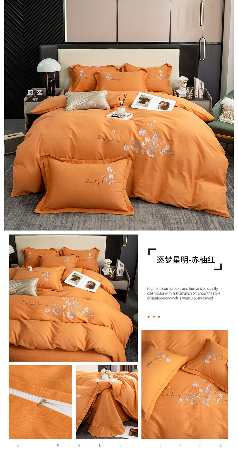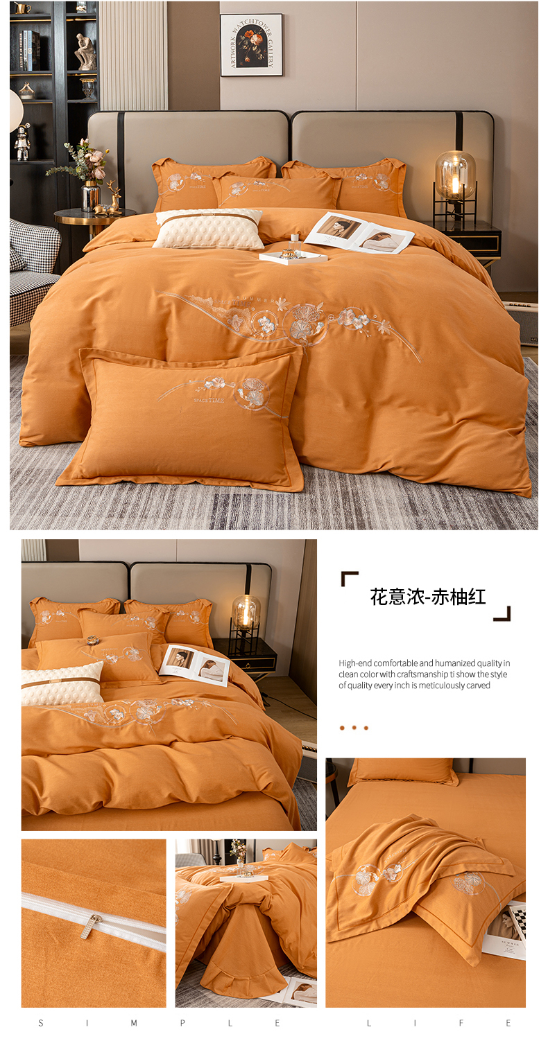(总)昊翔家纺 2025新款牛奶绒宽边刺绣四件套格调,格调-橙色,格调-兰色,格调-浅绿,格调-浅驼,格调-胭脂粉,格调-银灰