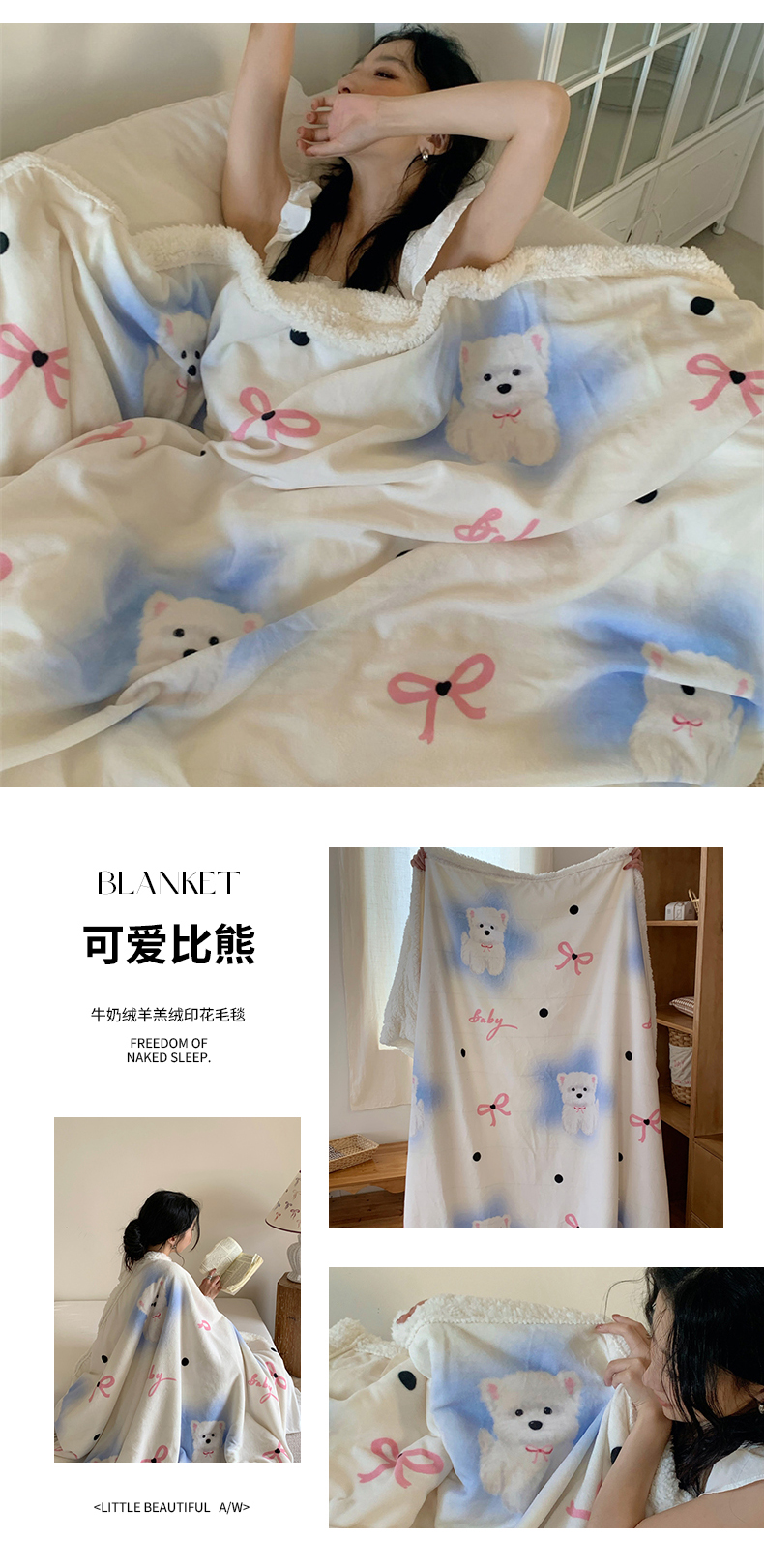 商品名称:桃喜 2024新款亲肤舒适牛奶绒羊羔绒毛毯 可爱比熊