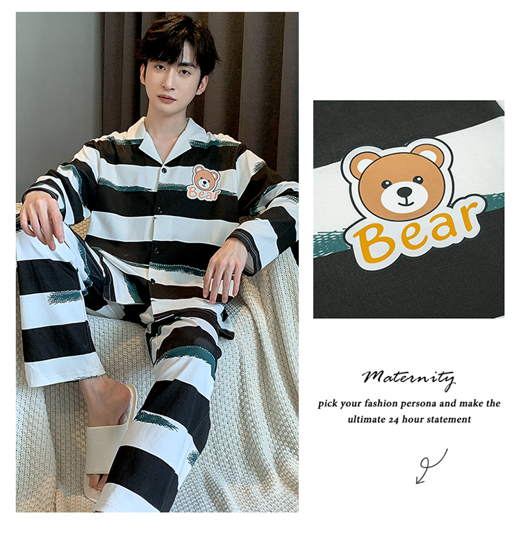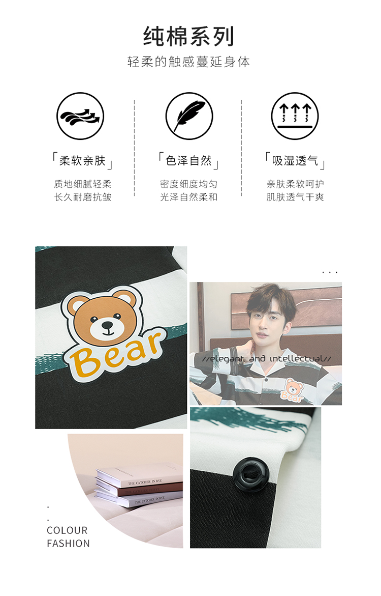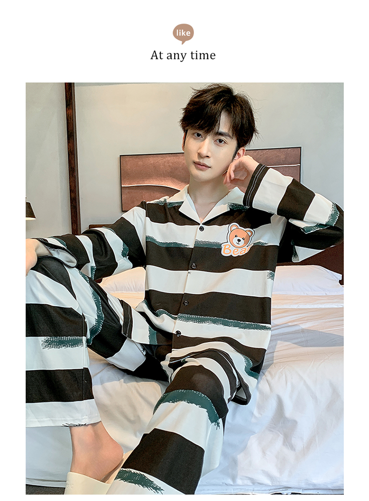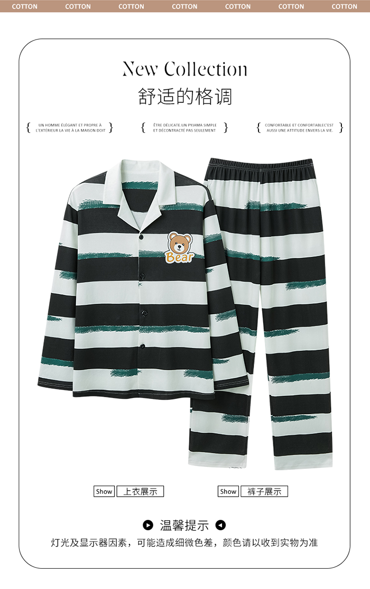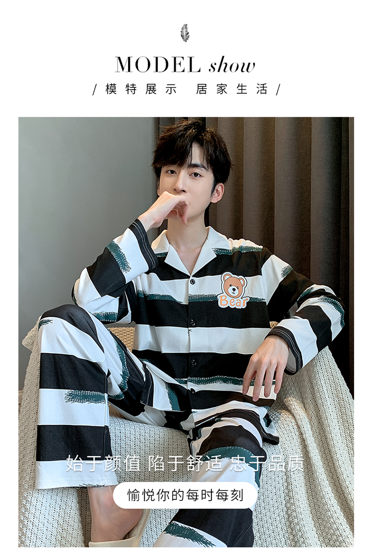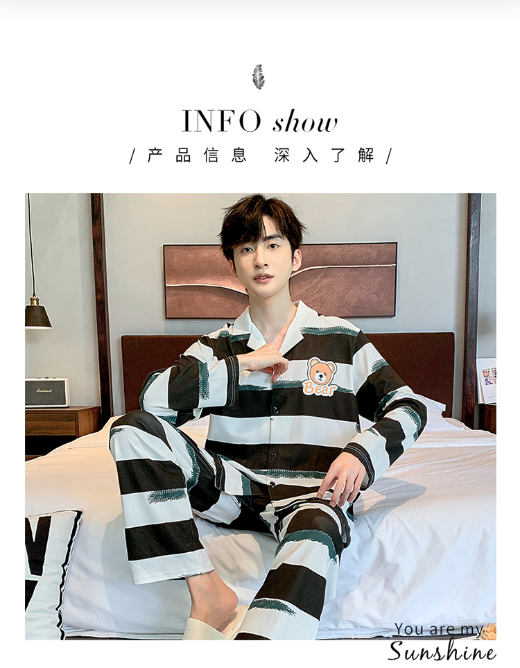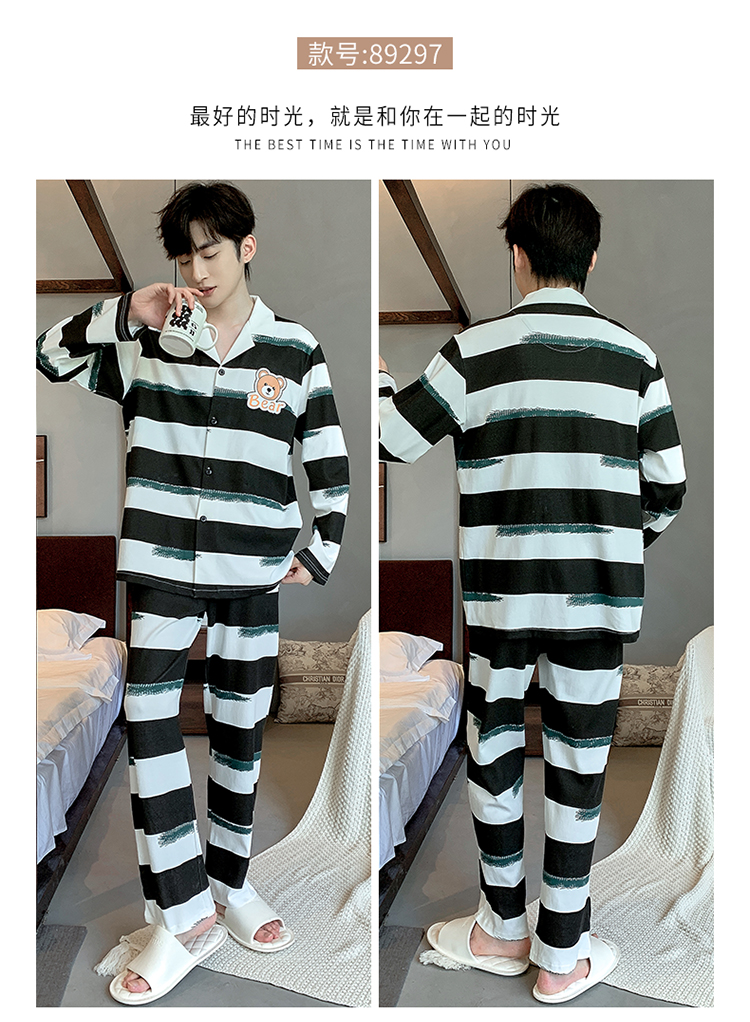 商品名称:春秋季新款纯棉休闲简约睡衣高级质量家居服夏季男士宽松舒适睡衣翻领 89297
