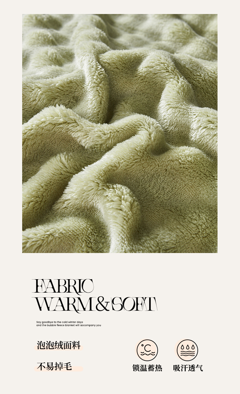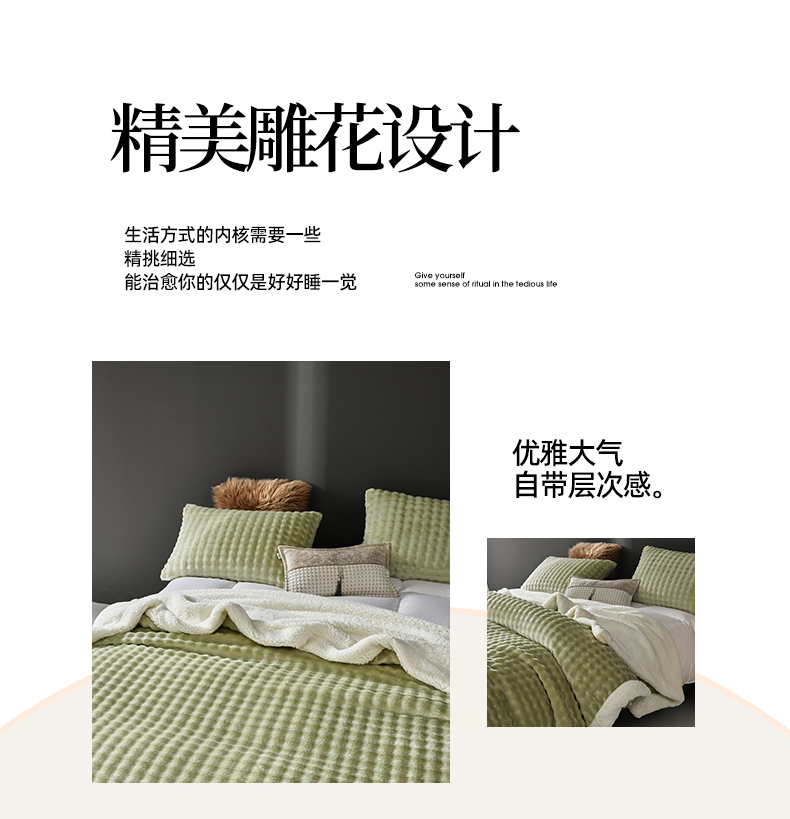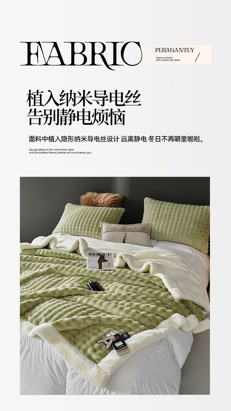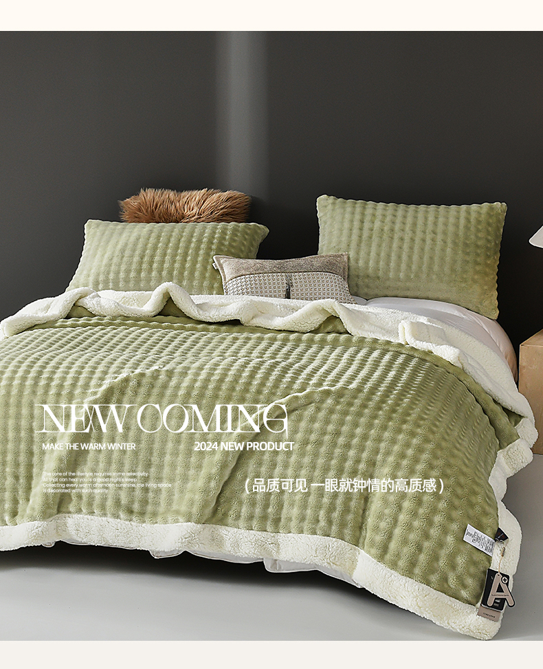 商品名称:网客家纺 2024新款雕花绒泡泡绒羊羔绒毛毯 苹果绿