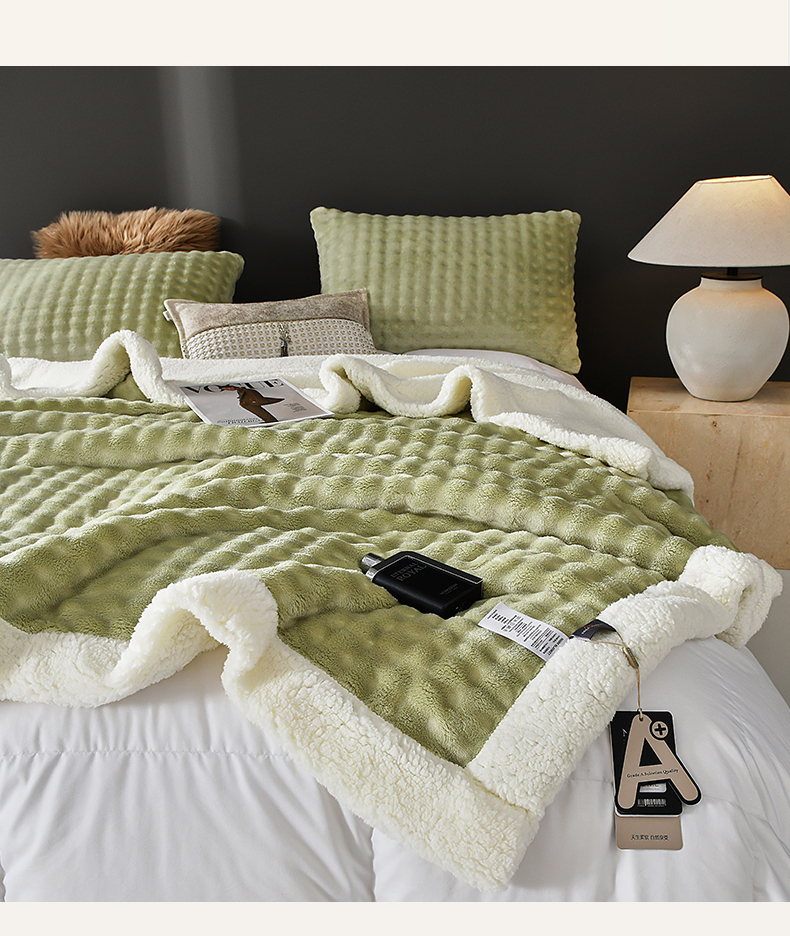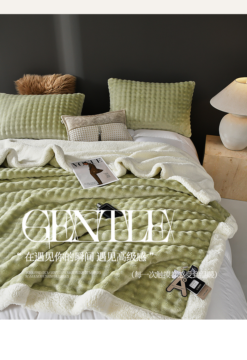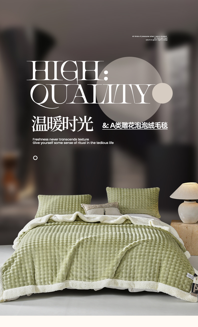 商品名称:网客家纺 2024新款雕花绒泡泡绒羊羔绒毛毯 苹果绿