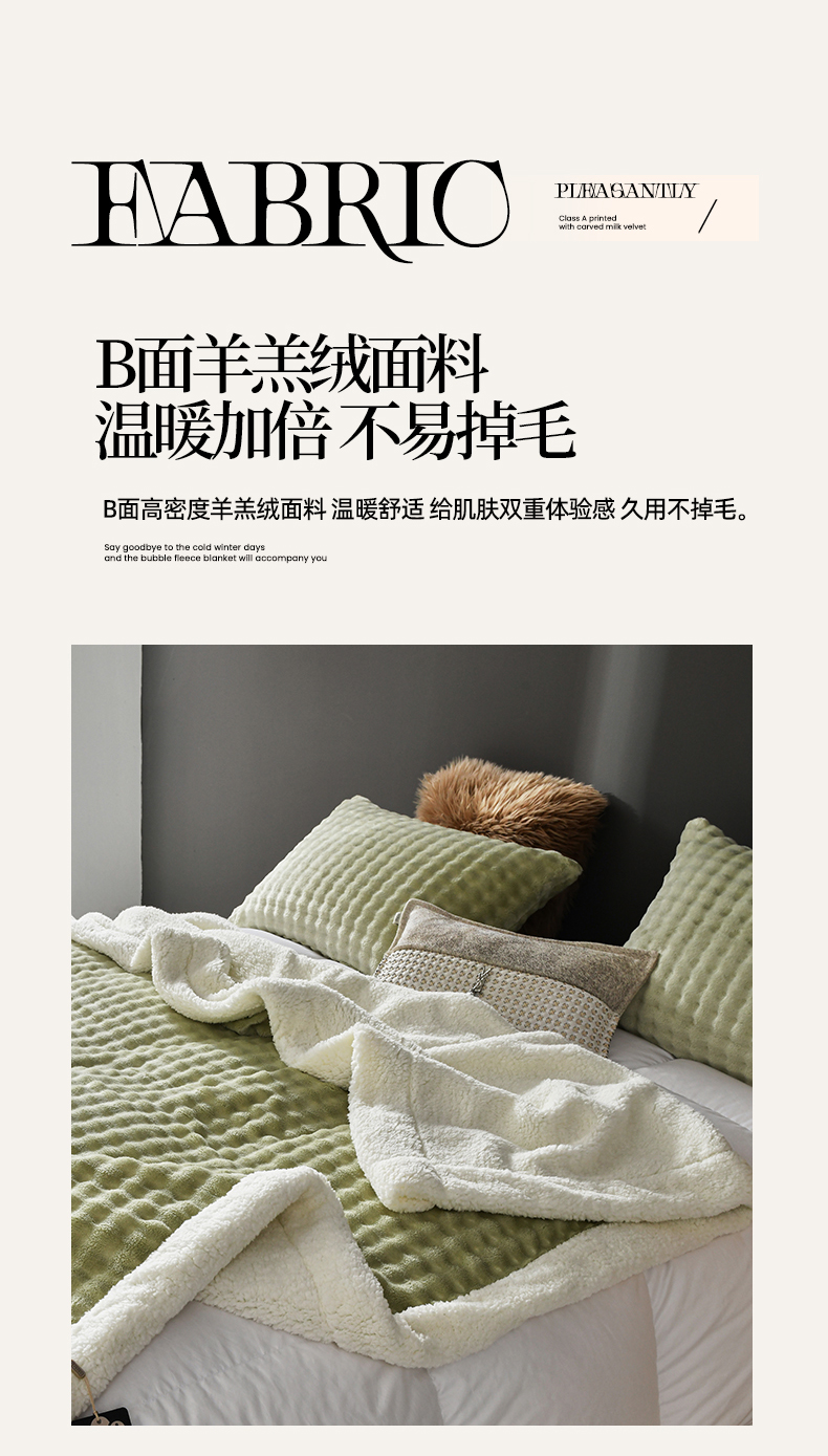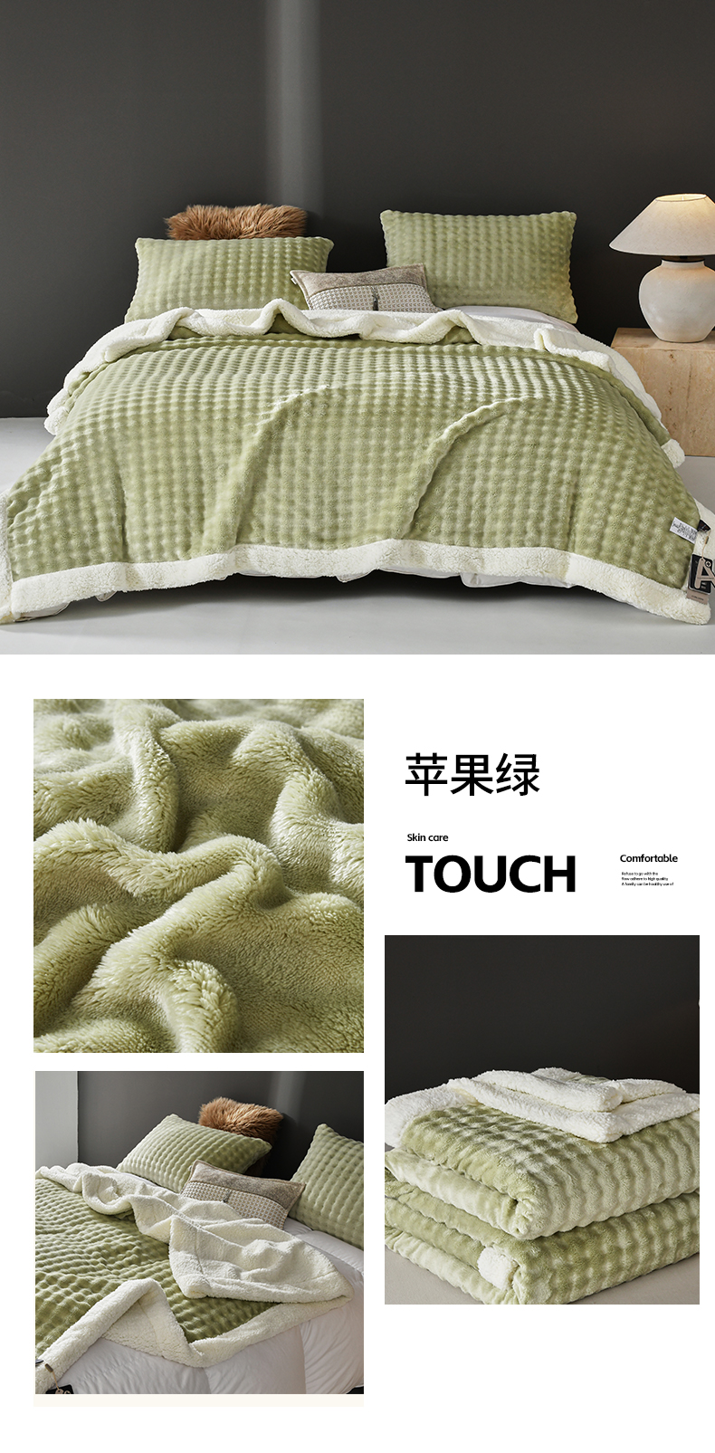 网客家纺 2024新款雕花绒泡泡绒羊羔绒毛毯 苹果绿