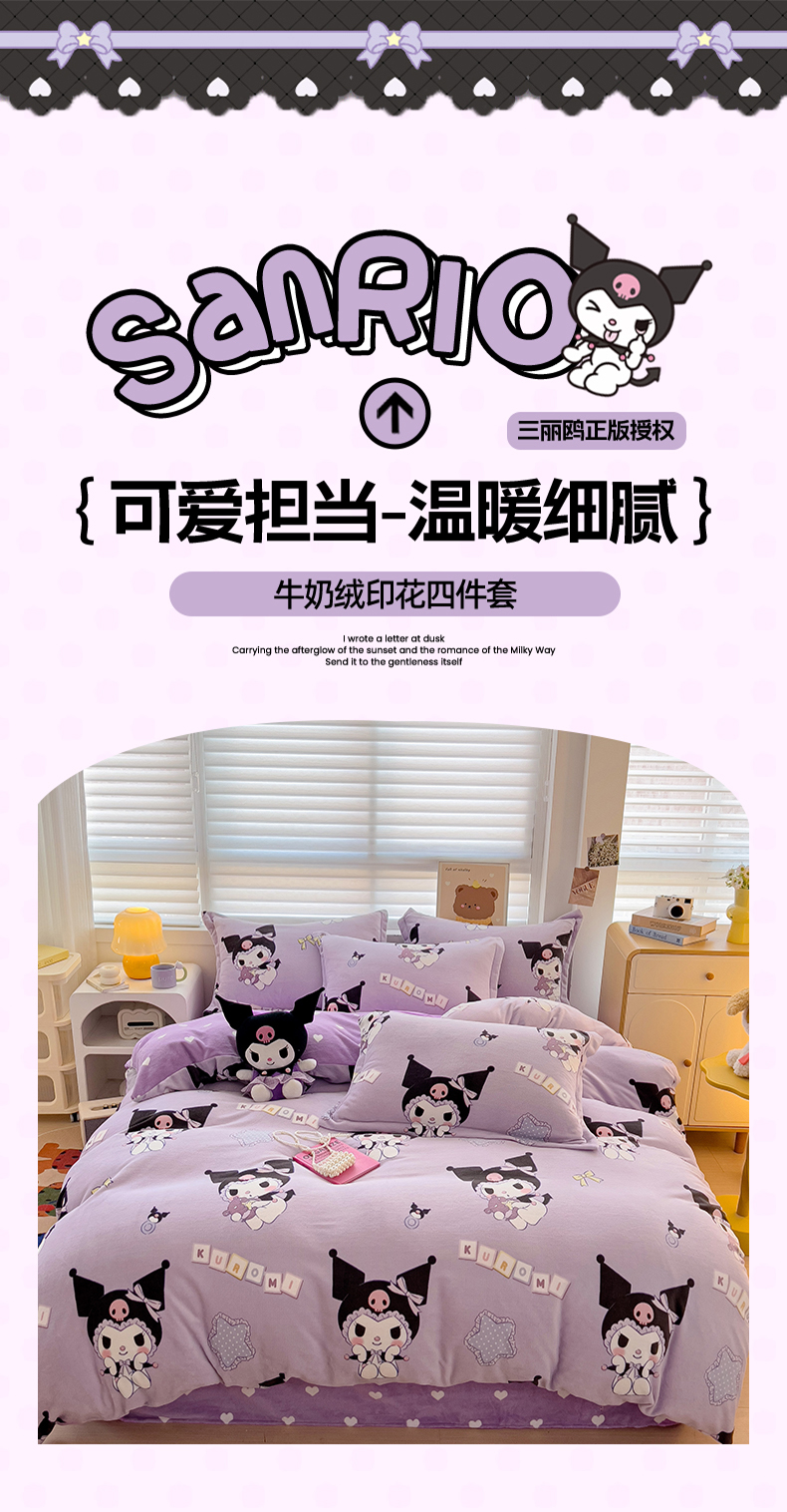 当前位置: 91家纺网 > 商品网购 > 床品套件 > 四件套 > 牛奶绒四件套 > KT猫直营店 2024新款三丽鸥库洛米牛奶绒四件套 星星库洛米